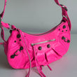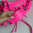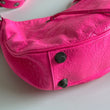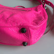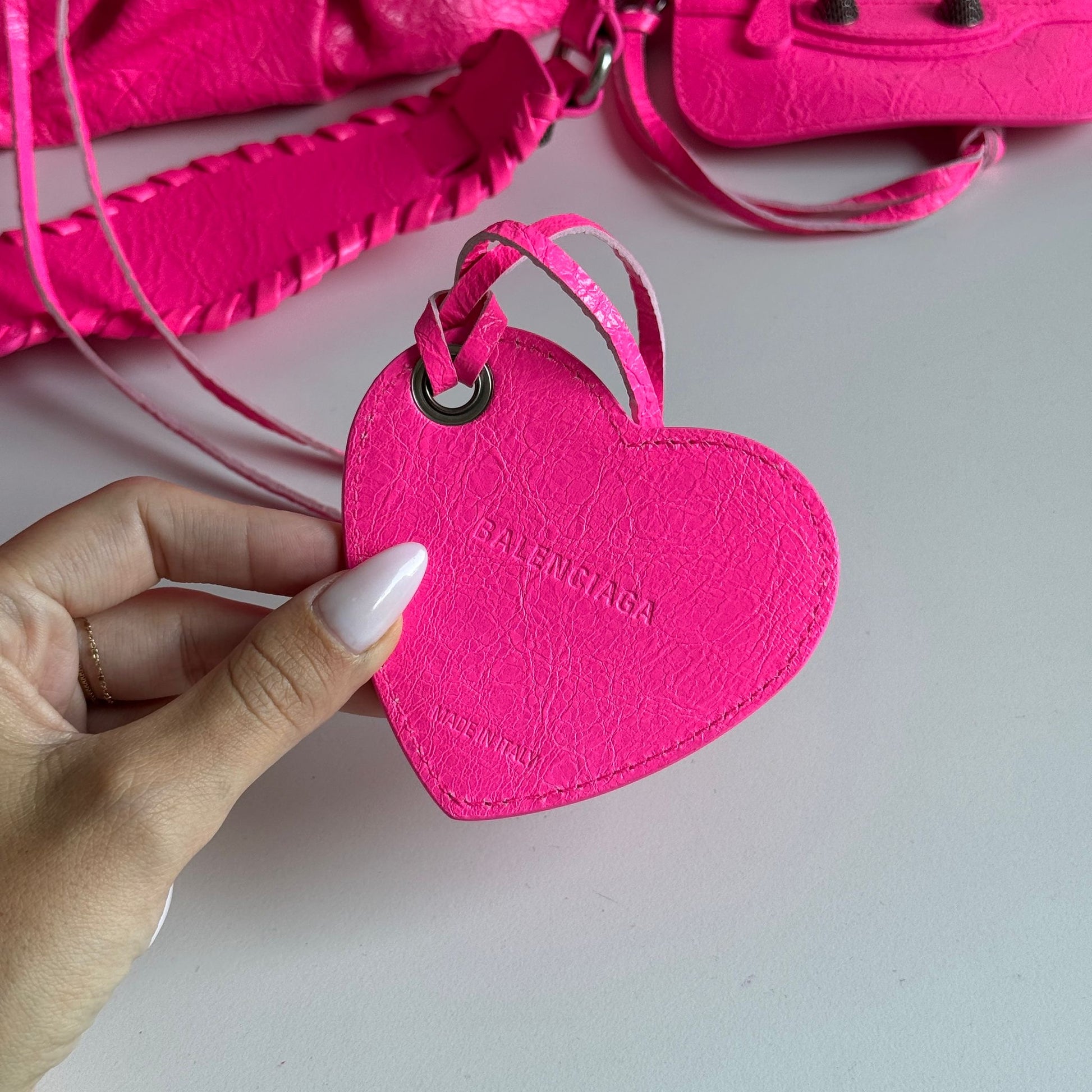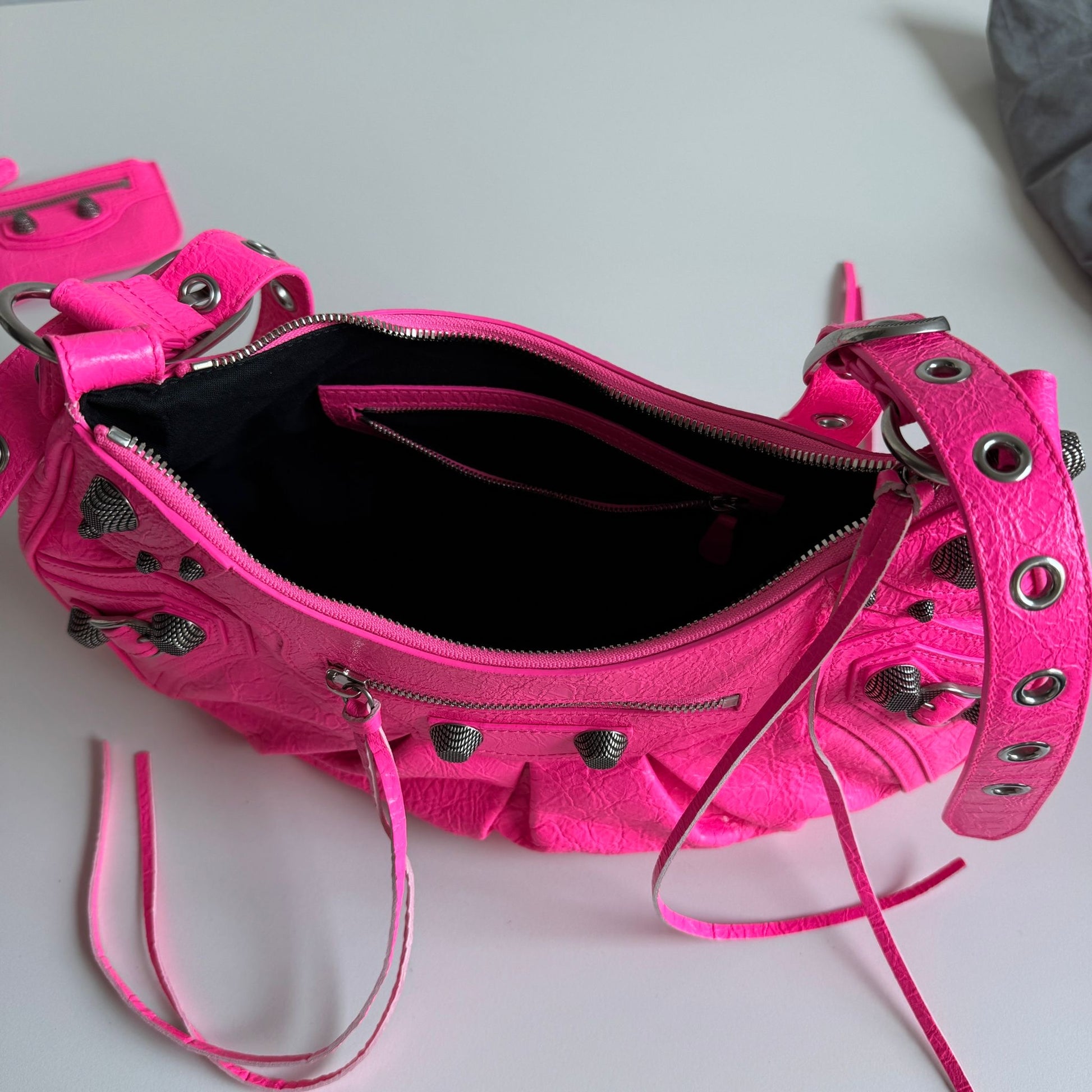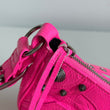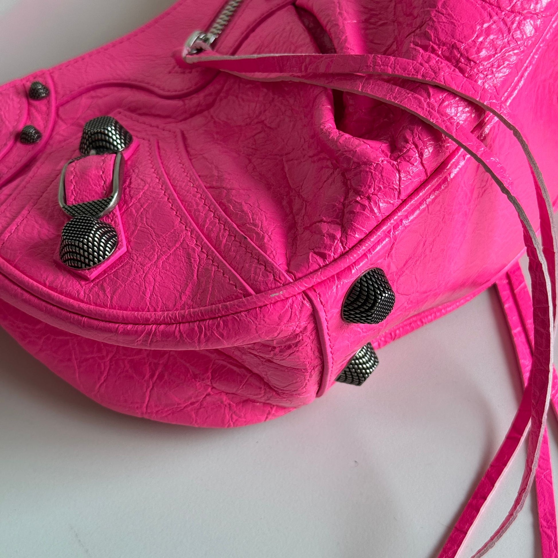 Iconica borsa Balenciaga modello Le Cagole S in pelle fucsia fluo con hardware argento. Si indossa a spalla e a tracolla grazie allo spallaccio regolabile.
