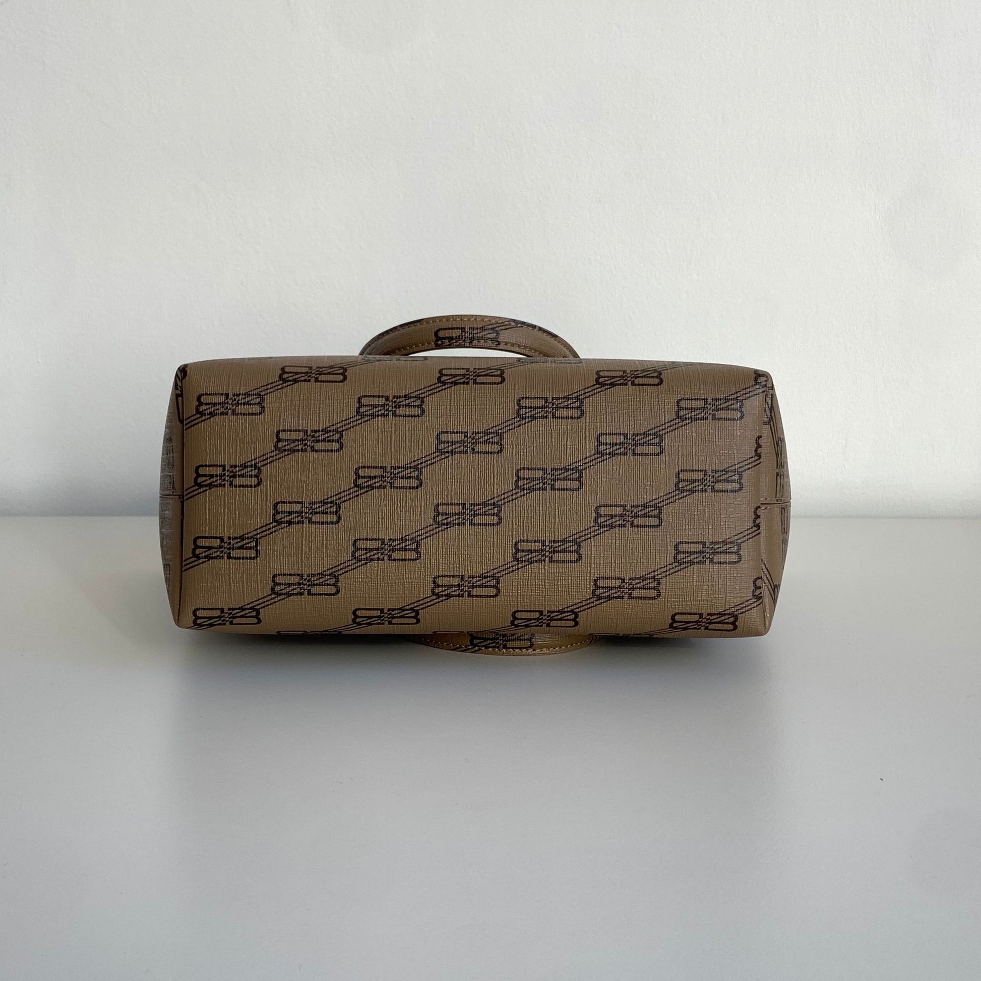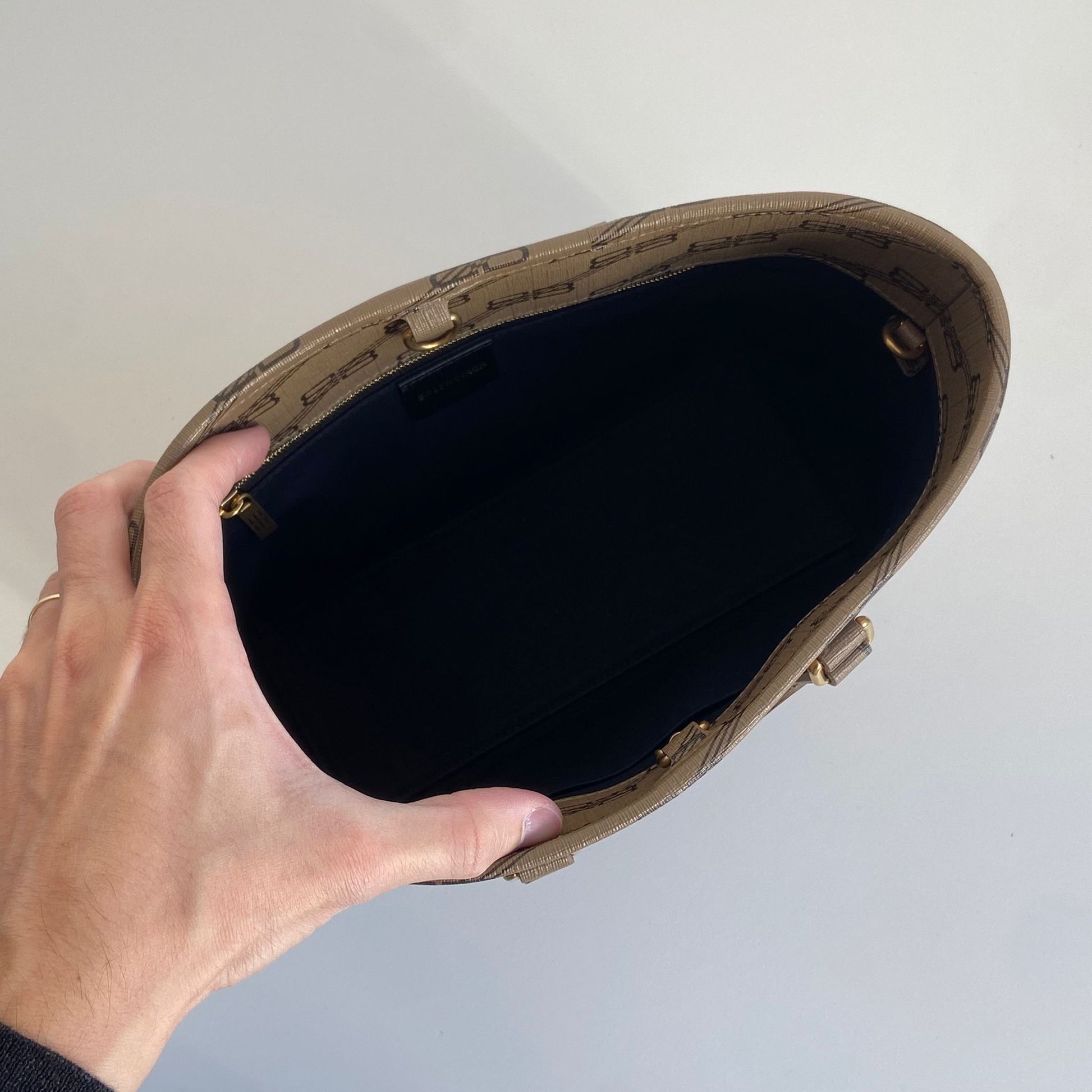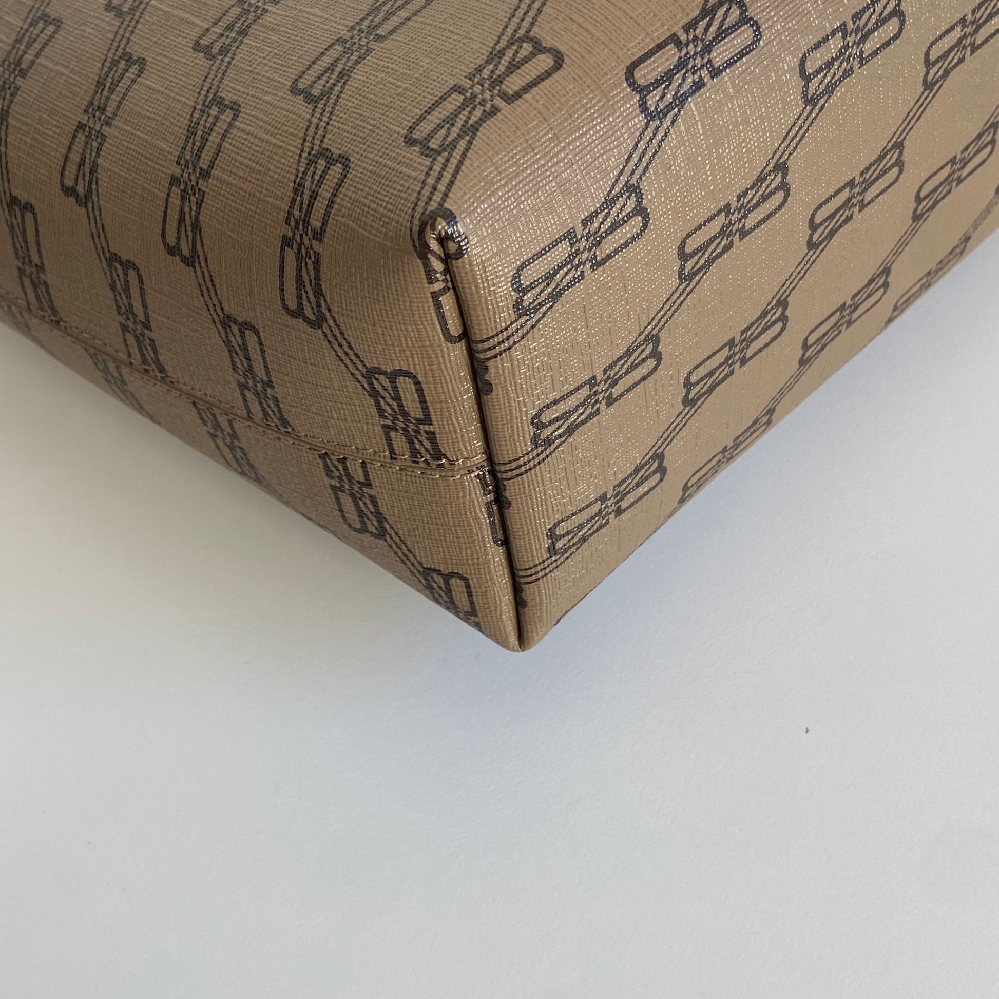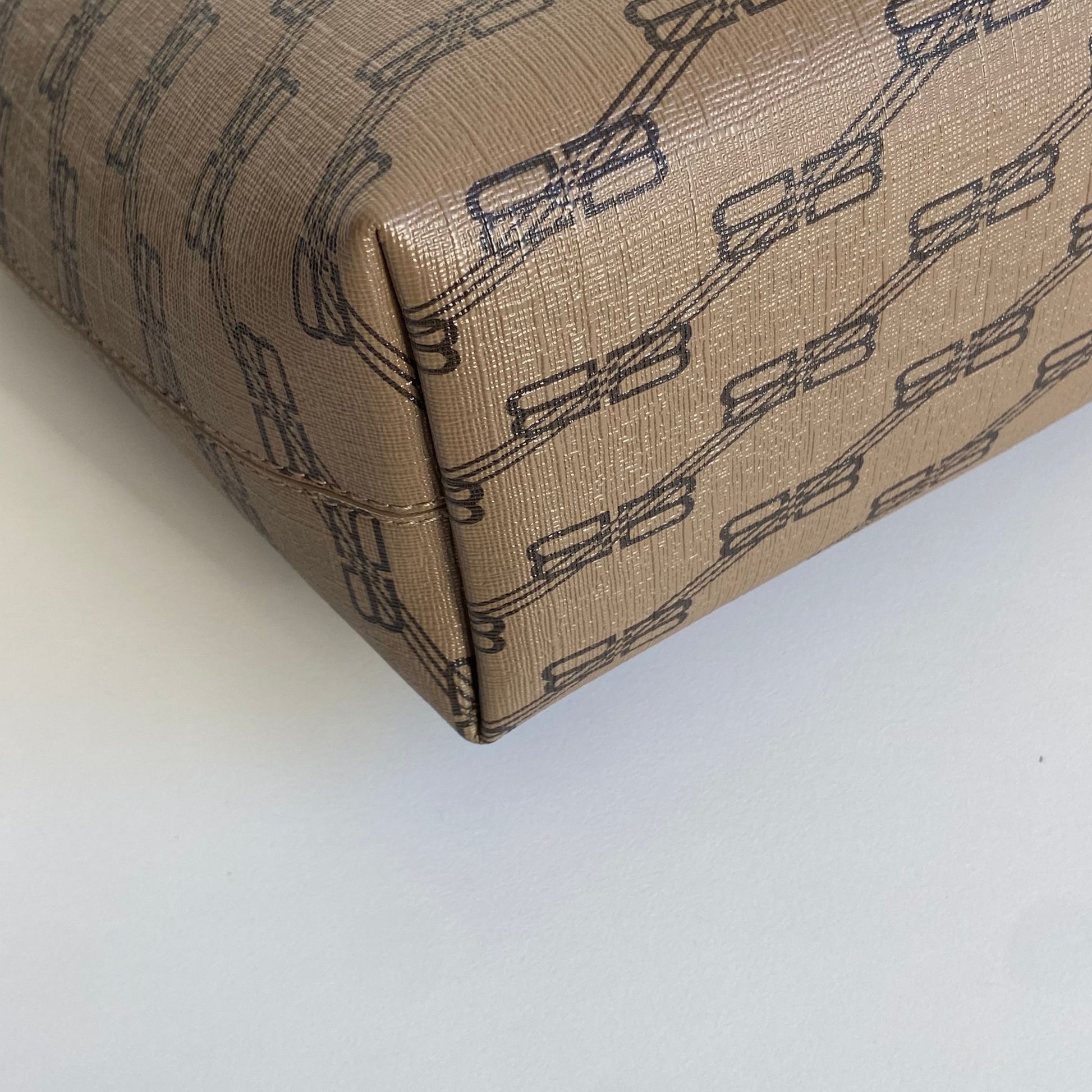 Meravigliosa borsa Balenciaga modello Signature Shopper S in pelle beige e loghi BB neri con hardware oro. Si indossa a mano o a tracolla, la tracolla è regolabile e rimovibile.