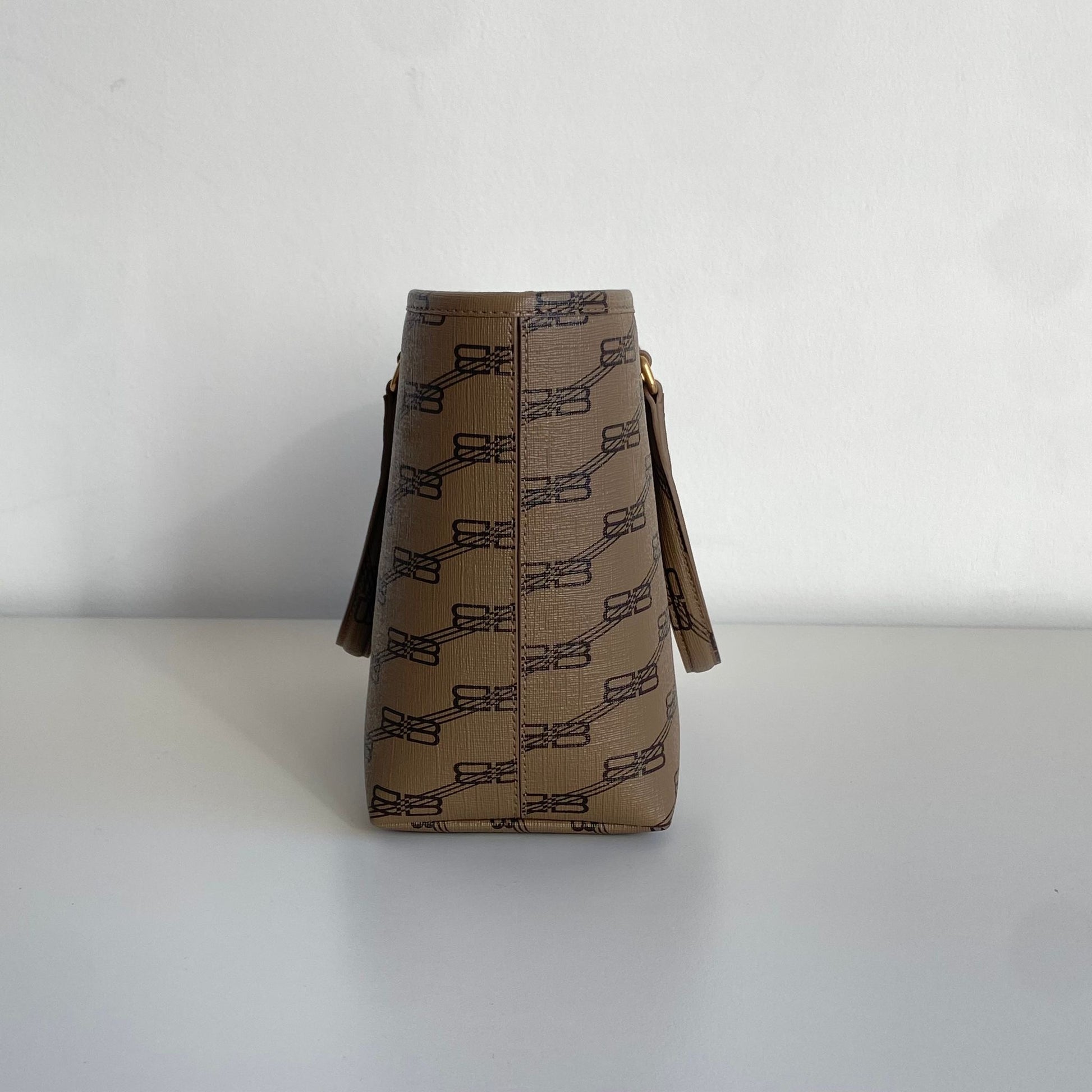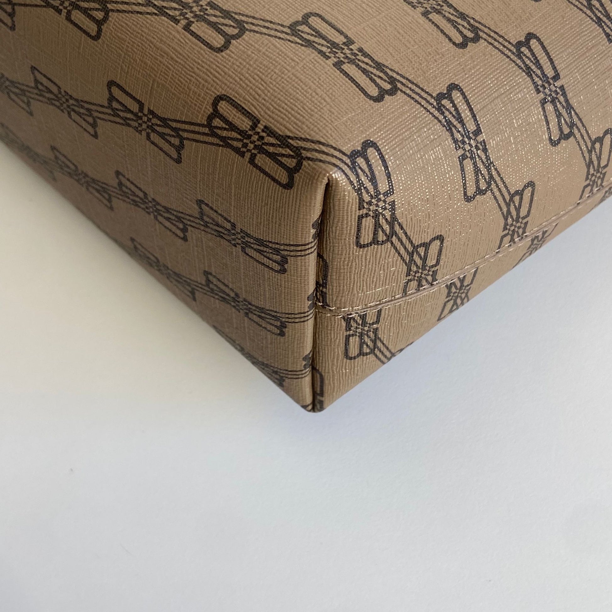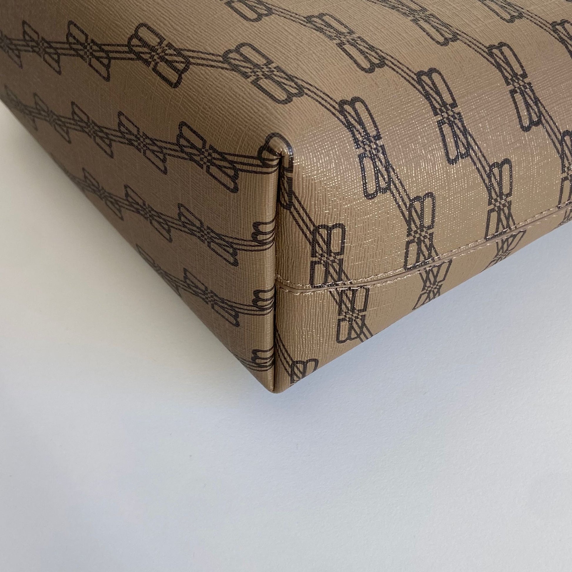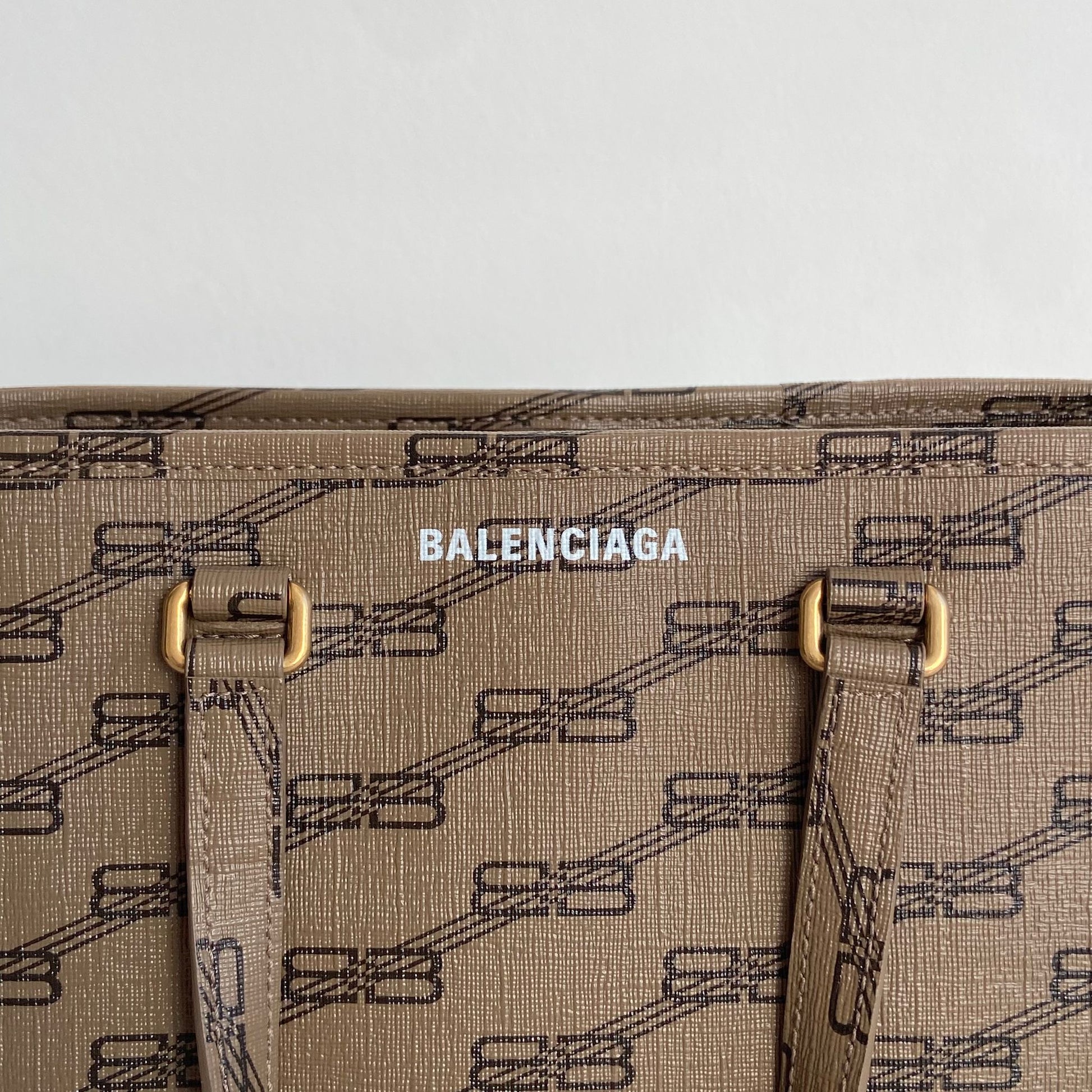 Meravigliosa borsa Balenciaga modello Signature Shopper S in pelle beige e loghi BB neri con hardware oro. Si indossa a mano o a tracolla, la tracolla è regolabile e rimovibile.