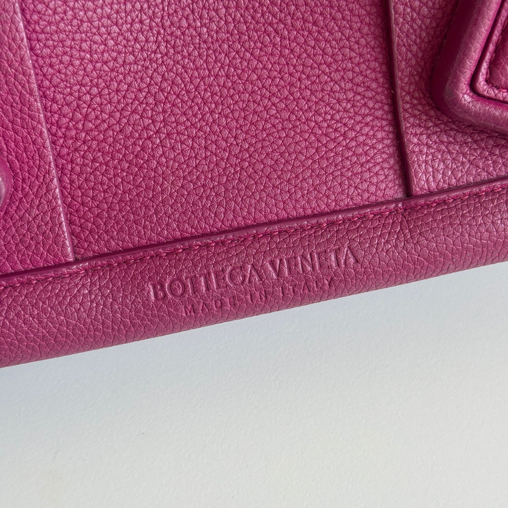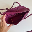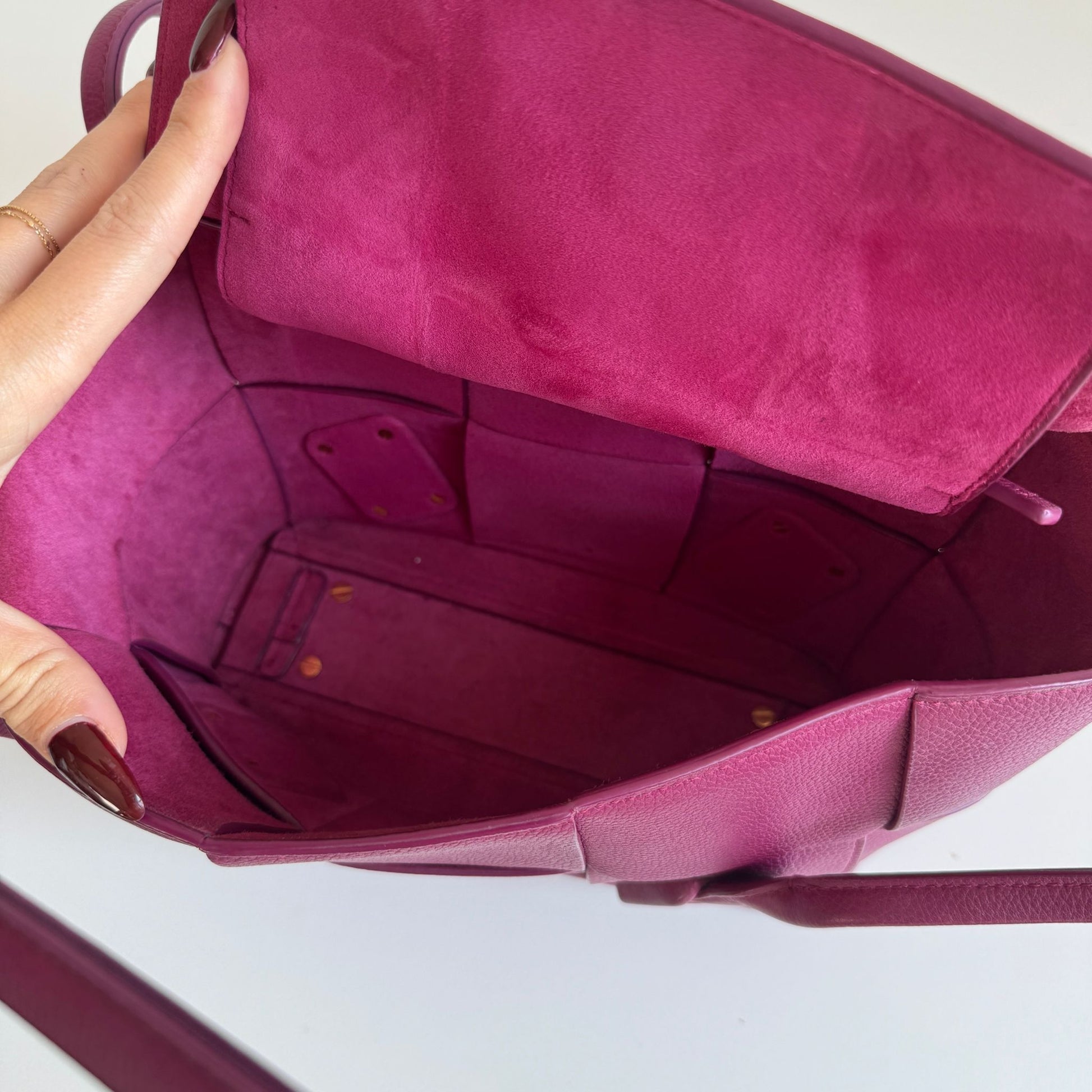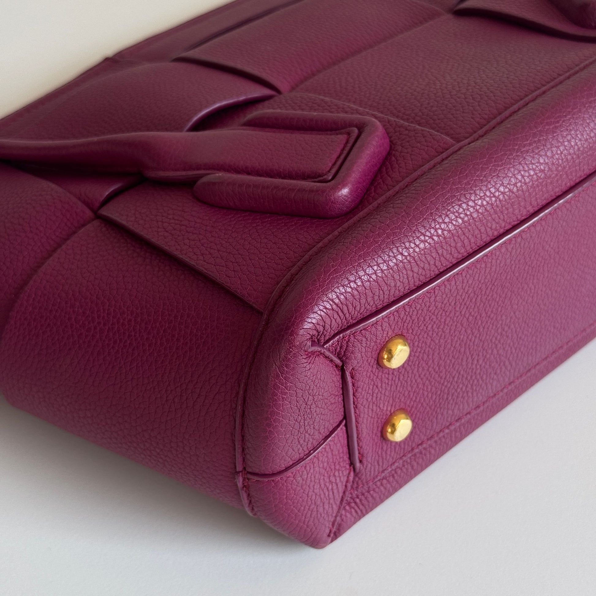 Bellissima borsa Bottega Veneta modello Arco in pelle intrecciata color porpora. Si indossa a spalla.