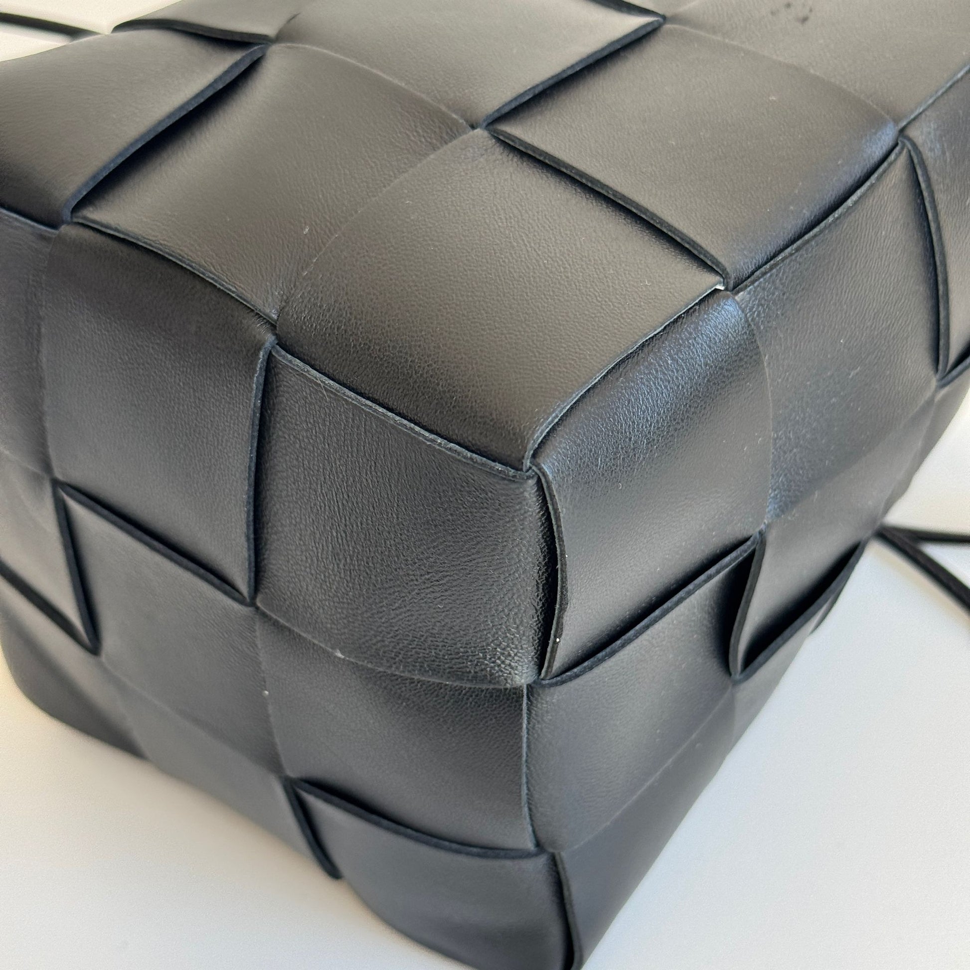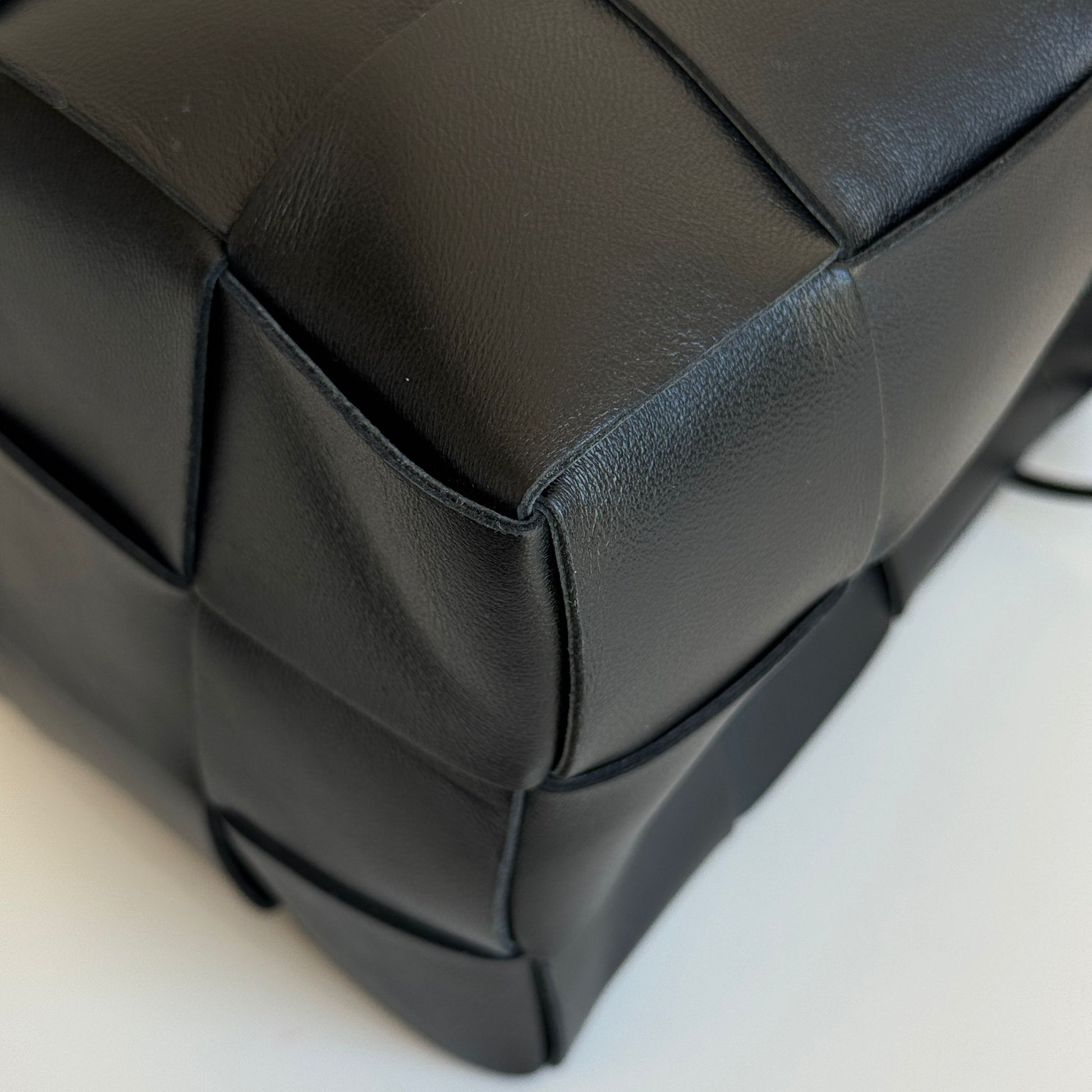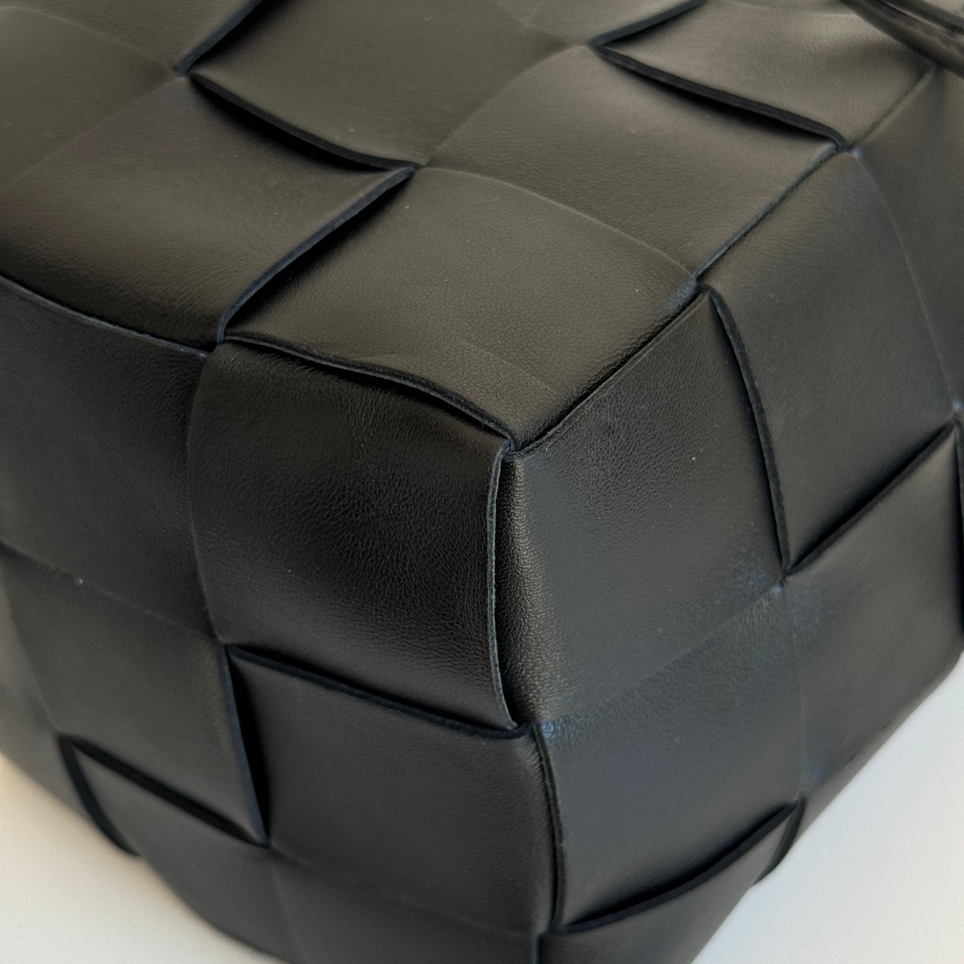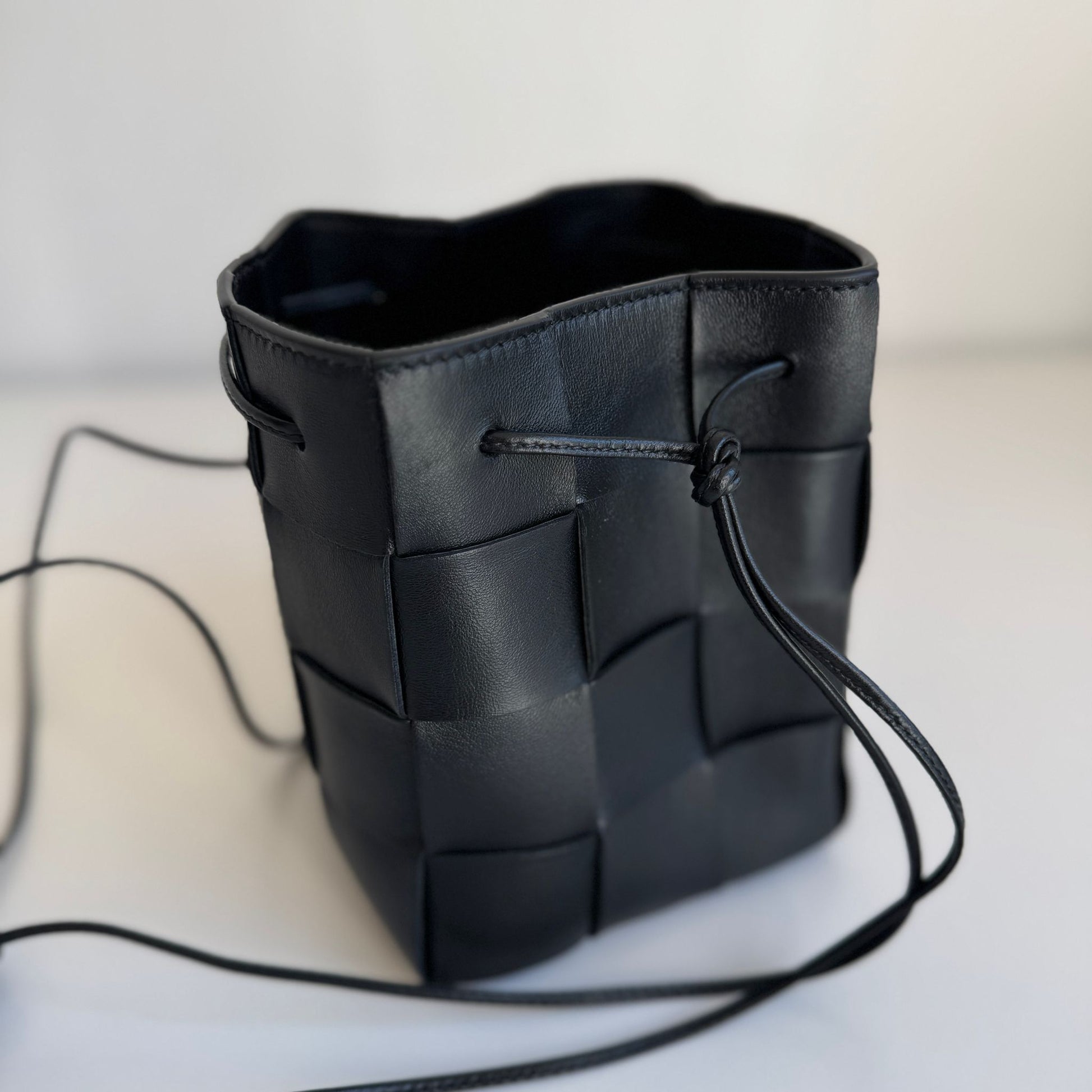 Bellissima borsa di Bottega Veneta modello Bucket in morbida pelle nera intrecciata. Si indossa a spalla e a tracolla. La tracolla non è rimovibile e regolabile.