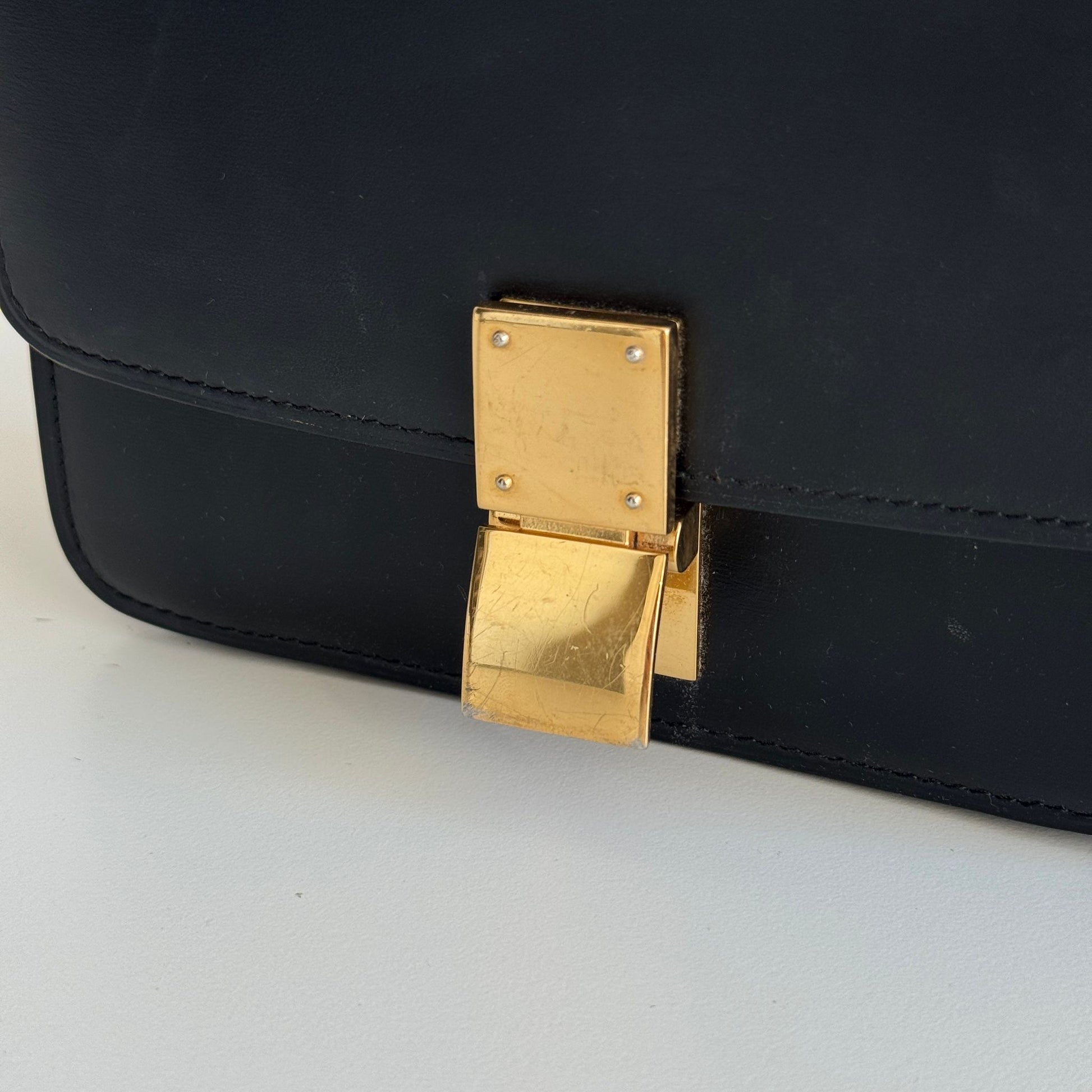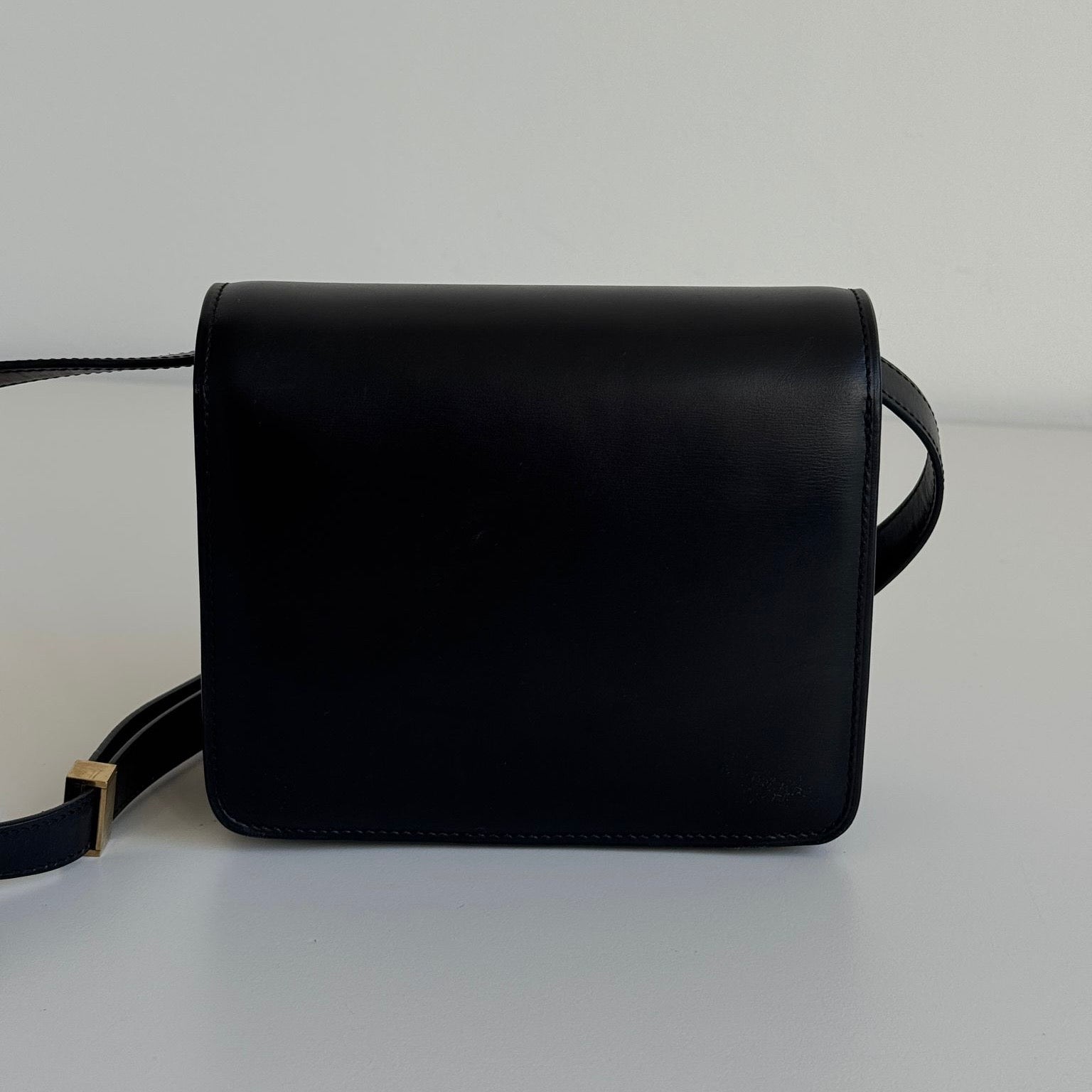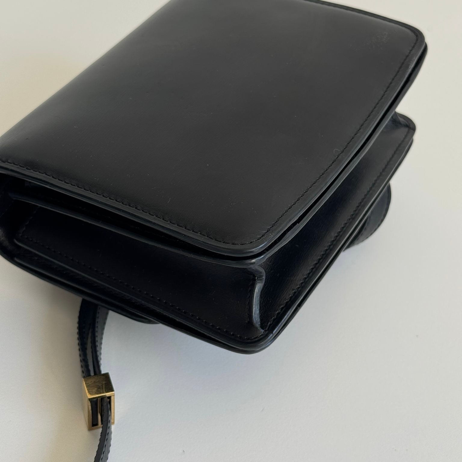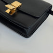 Bellissima borsa Celine modello Classic Box in pelle liscia nera e hardware oro. Si indossa a tracolla, la tracolla è regolabile e rimovibile.