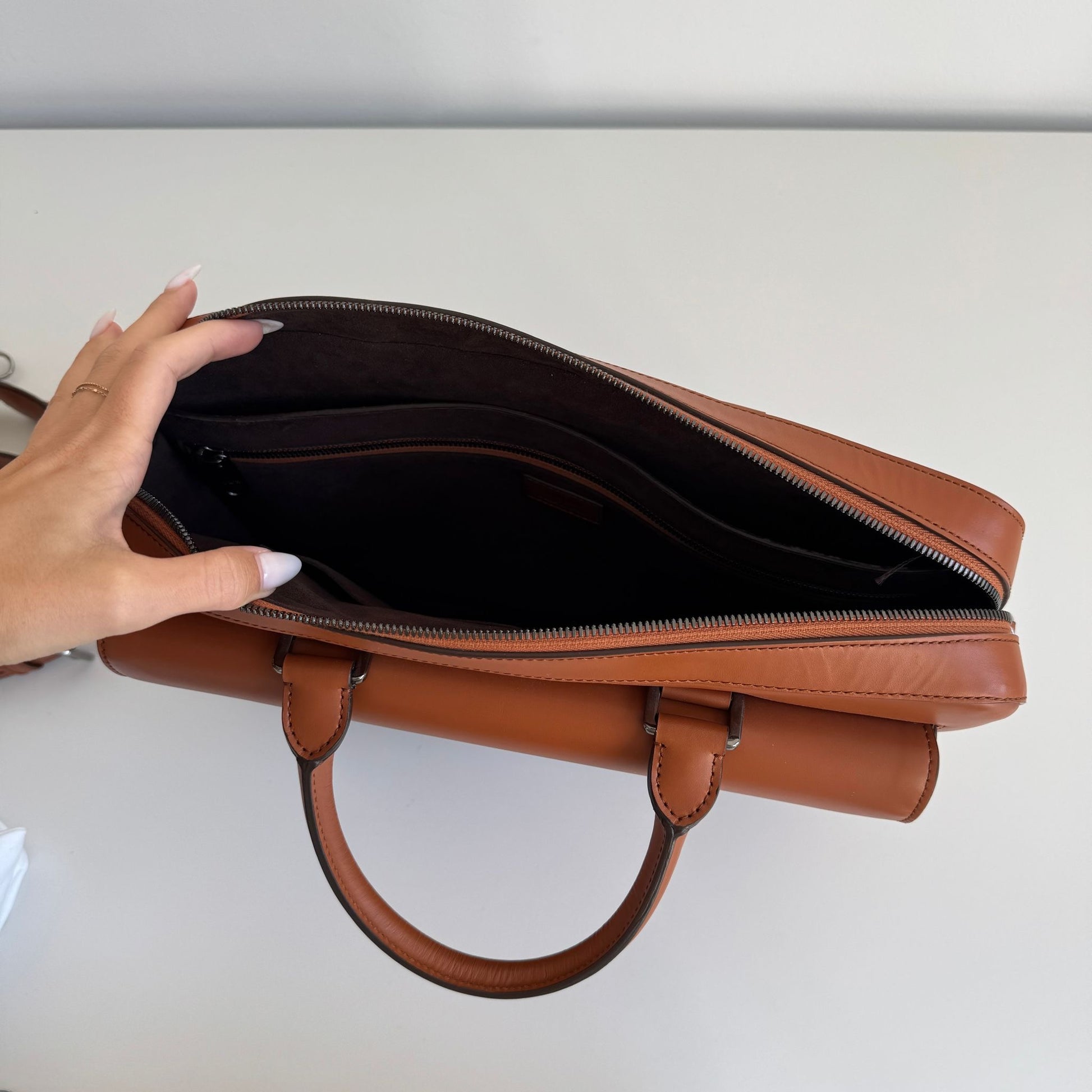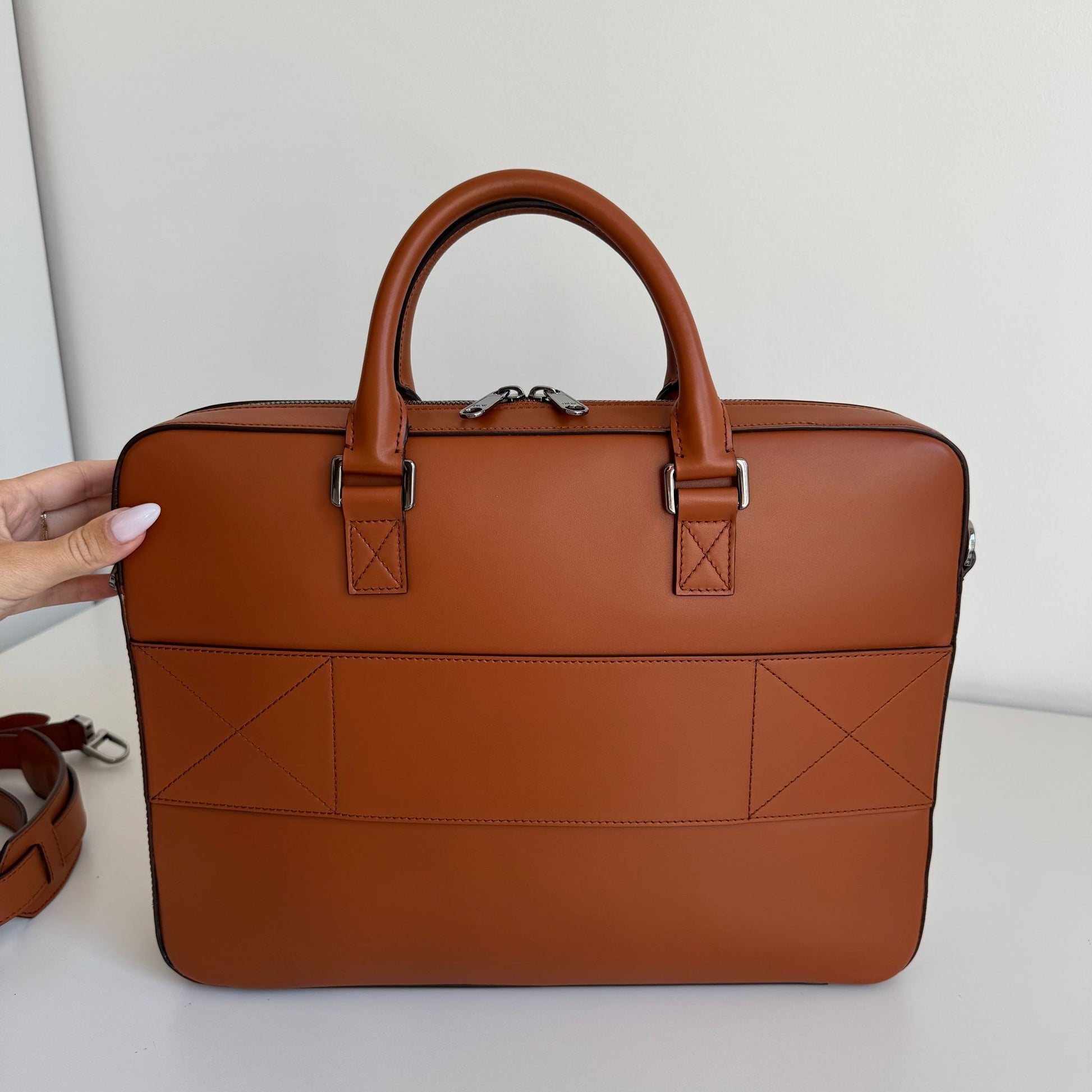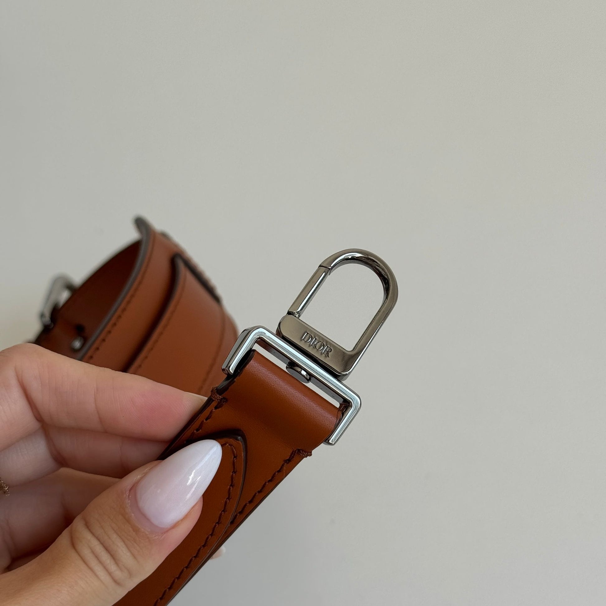 Magnifica borsa maschile Dior in pelle liscia marrone con hardware argento. Si indossa a mano o a tracolla e la tracolla è regolabile e rimovibile.