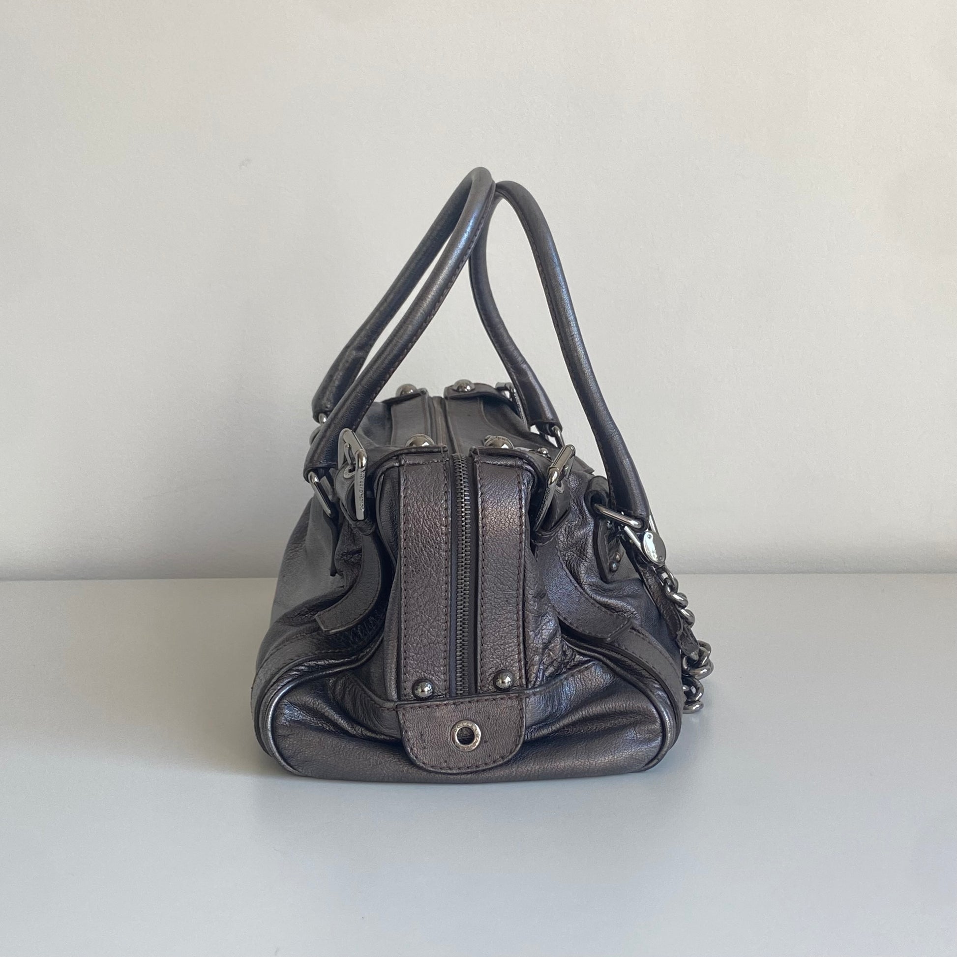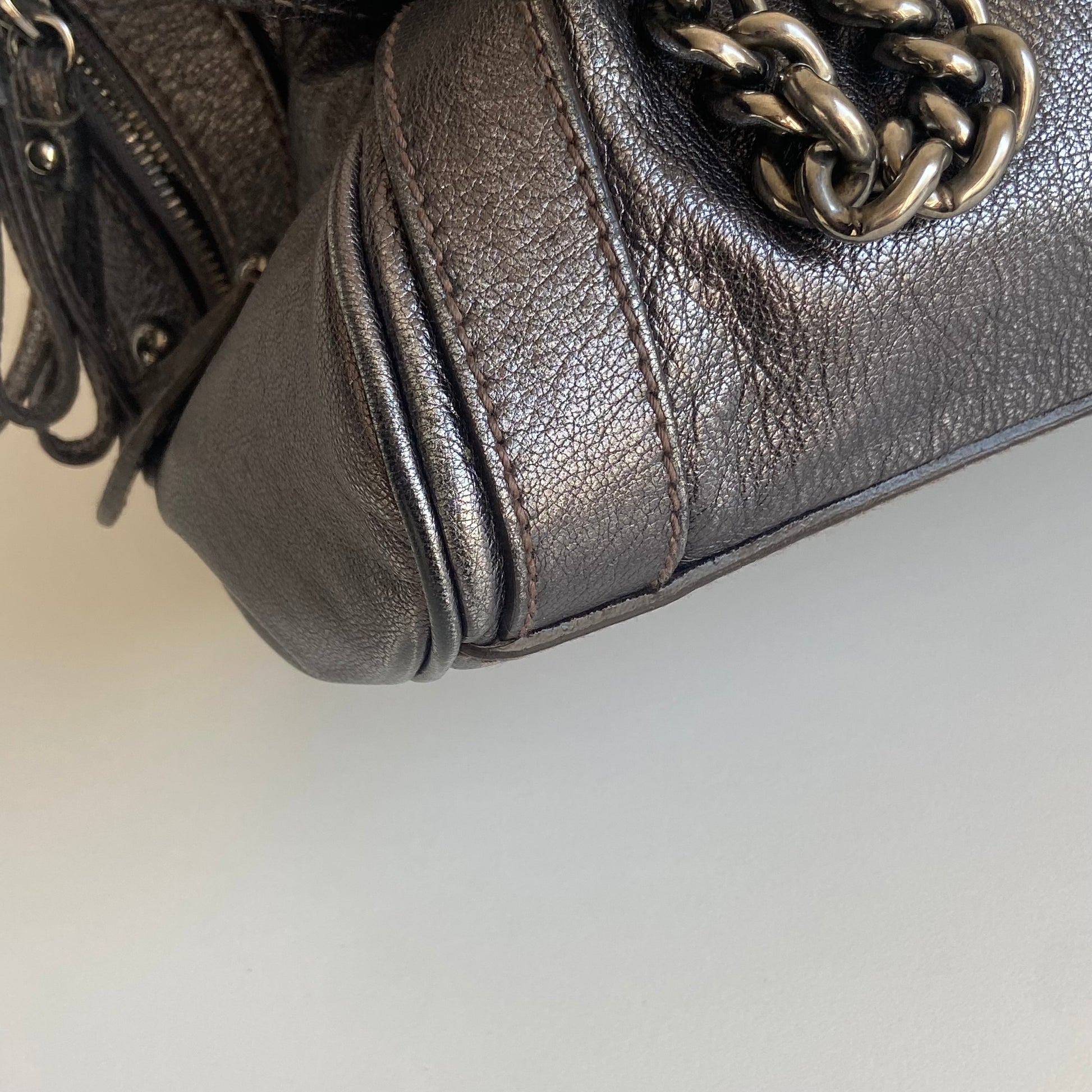 Bellissima borsa Dolce&Gabbana modello Miss Easy Way in pelle argento metallizzata effetto invecchiato e hardware argento. Si indossa a spalla, la catena è rimovibile ma non regolabile.