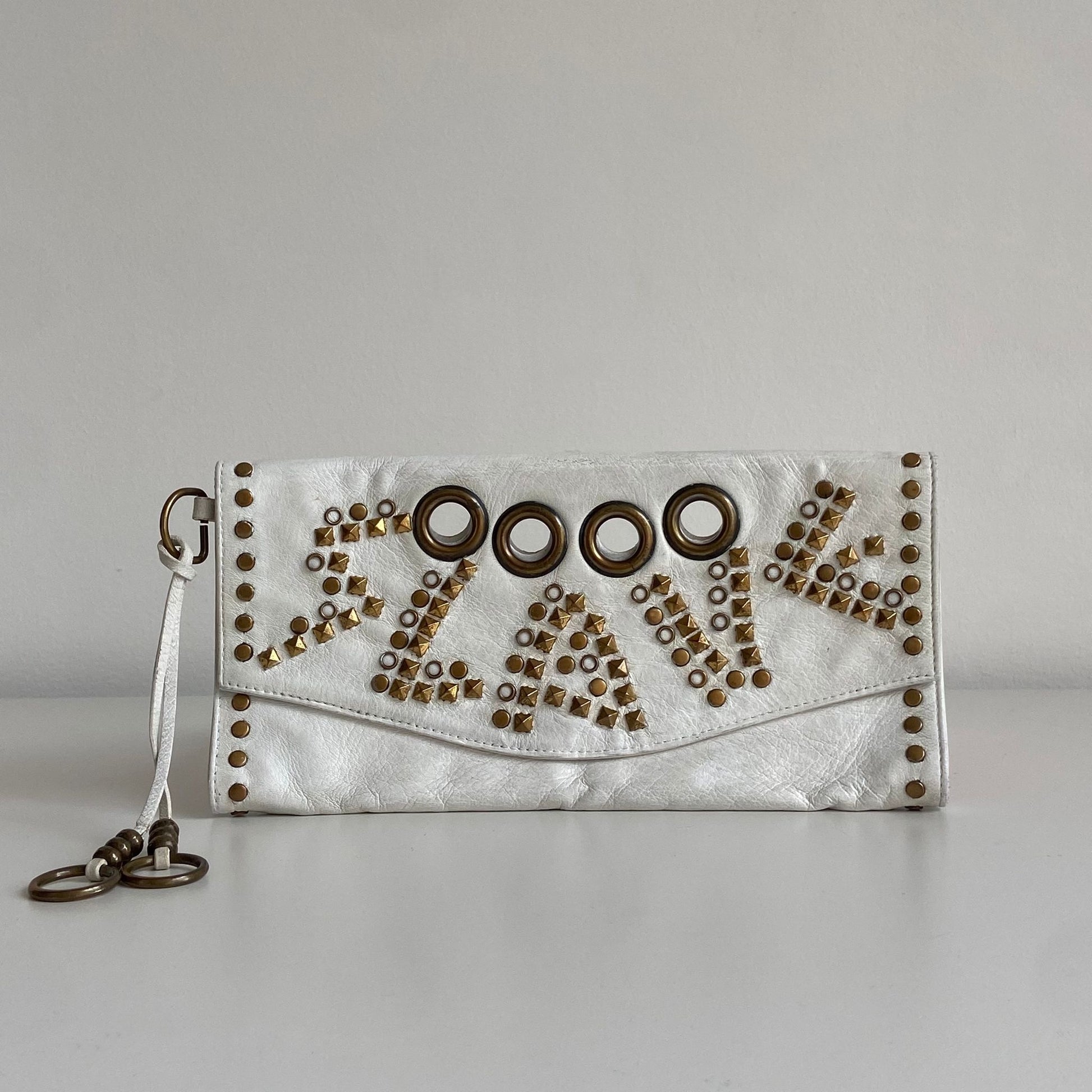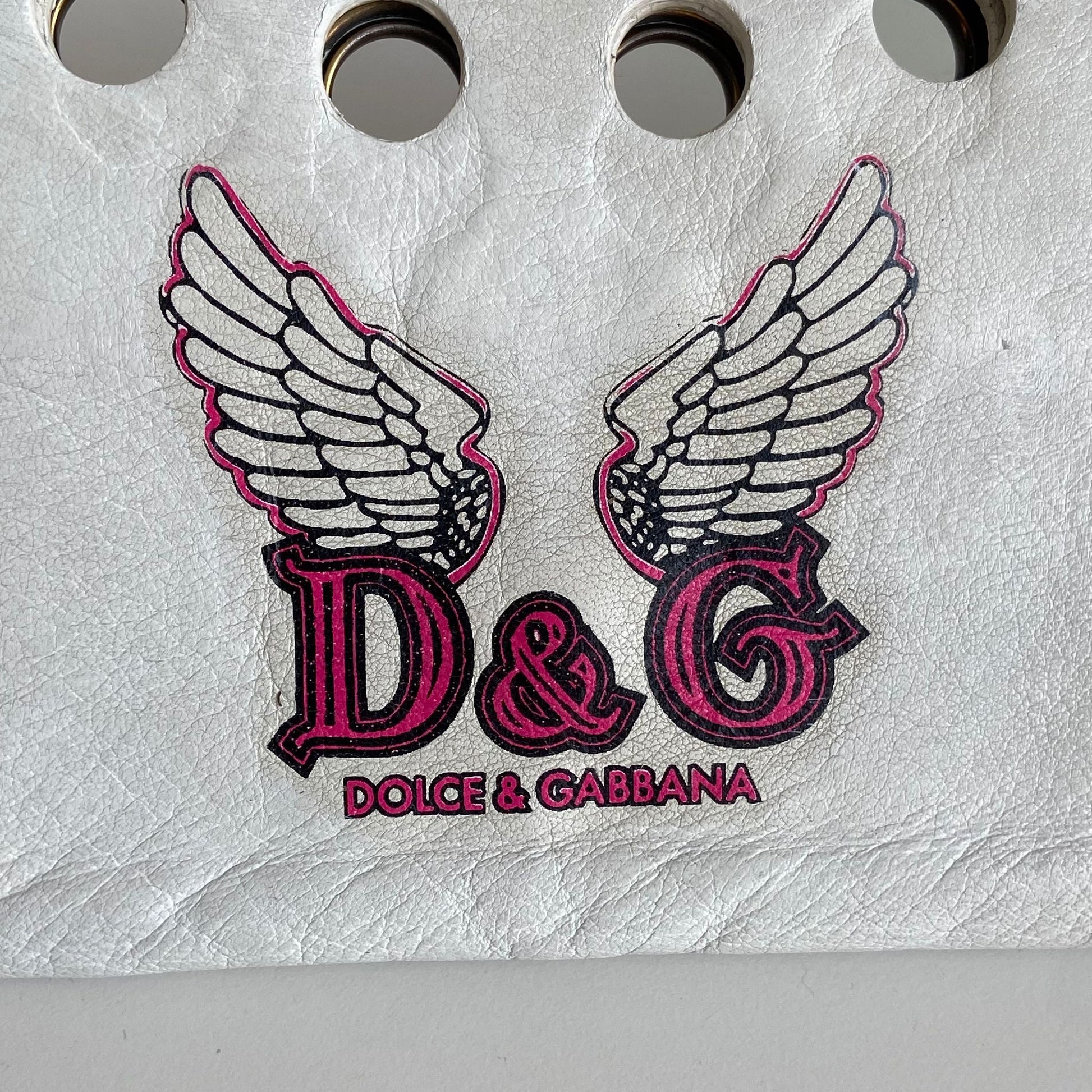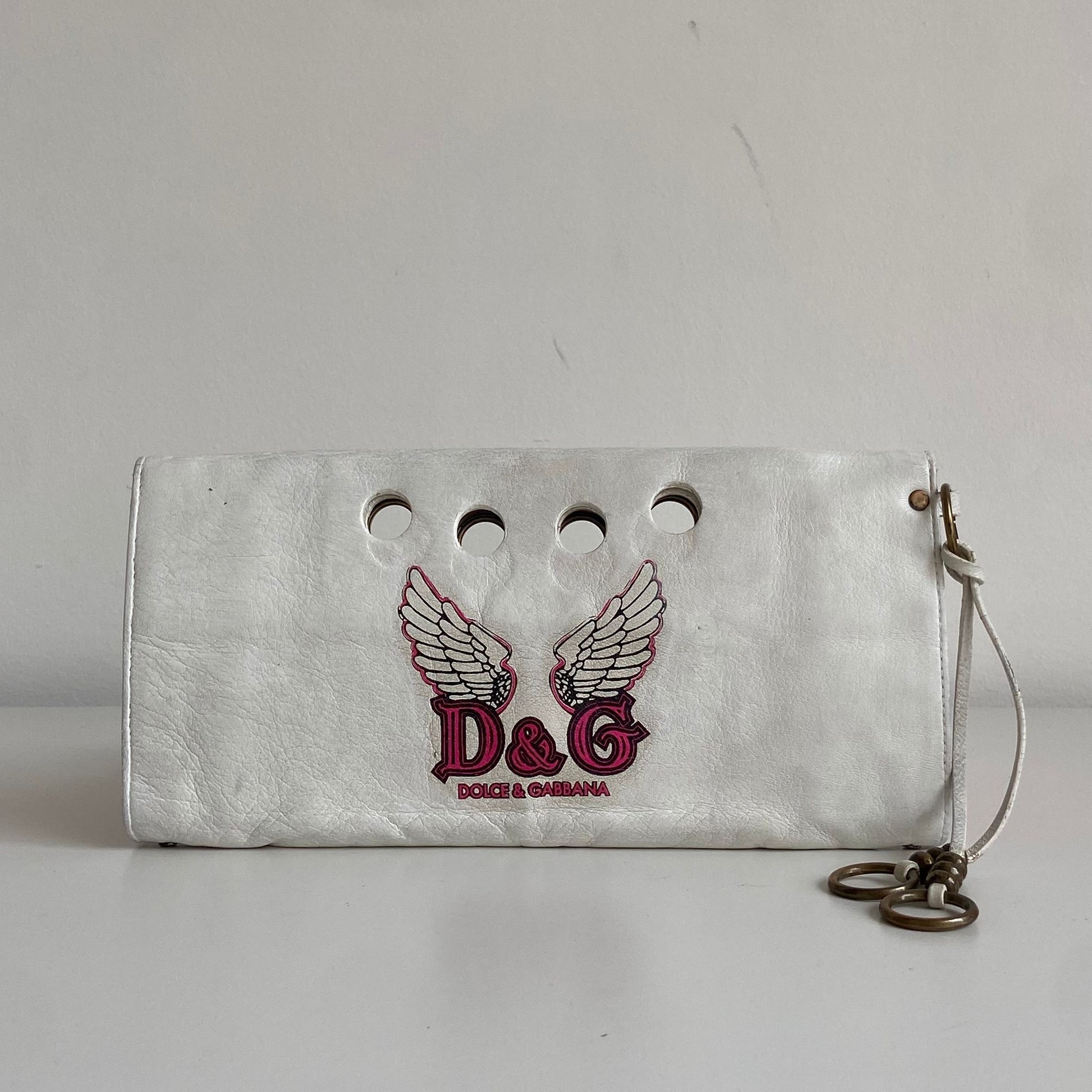 Bellissima e rara pochette D&G della S/S 2003 in pelle bianca e hardware bronzo. Si indossa a mano.