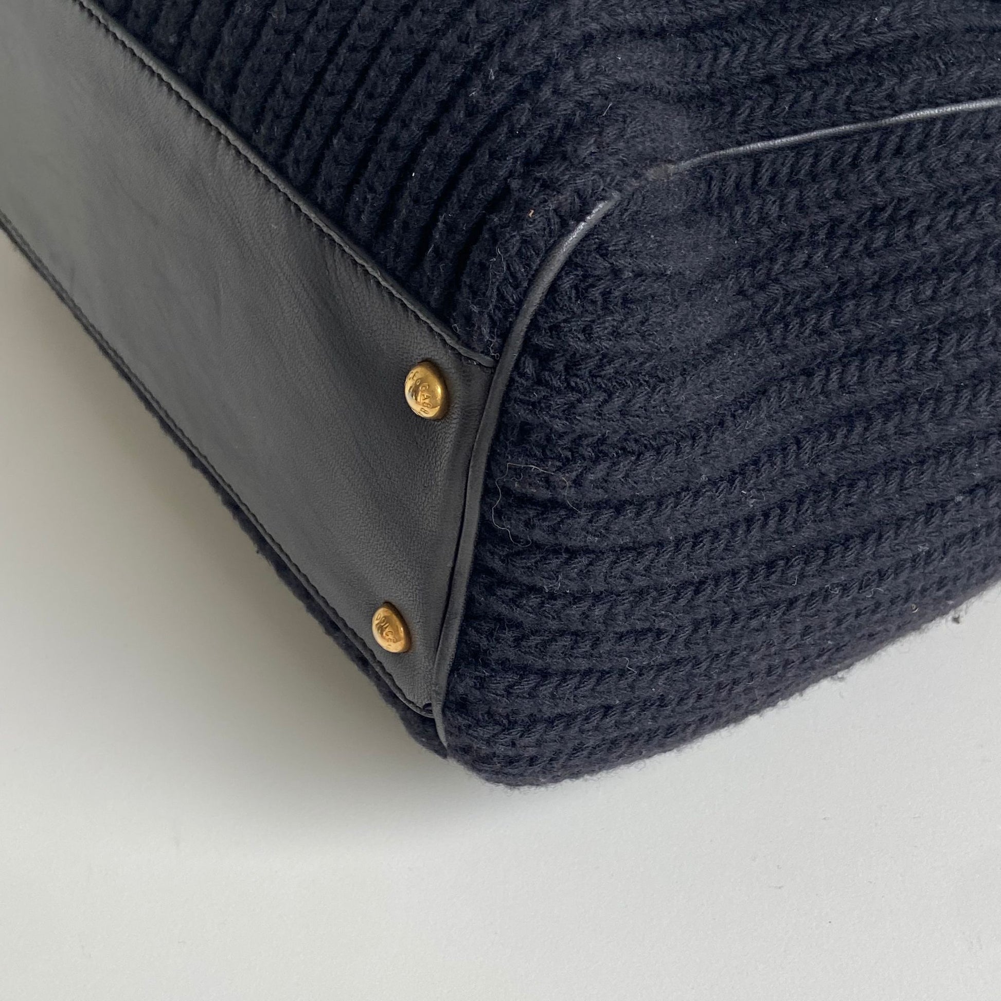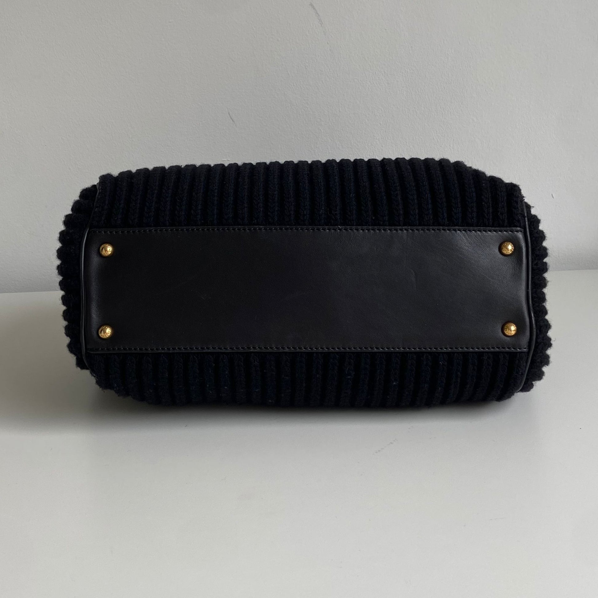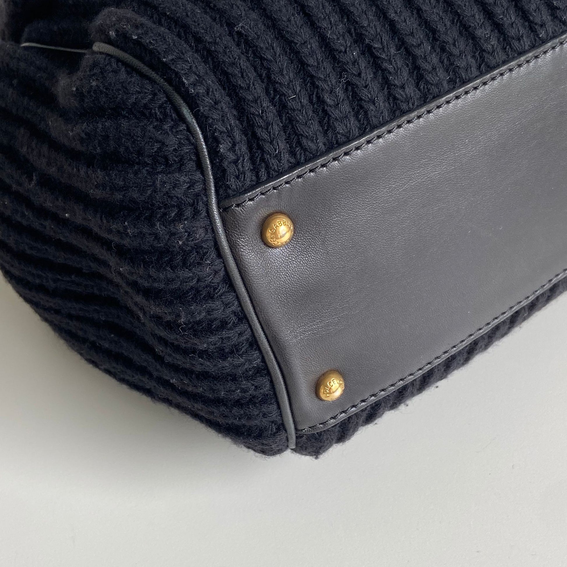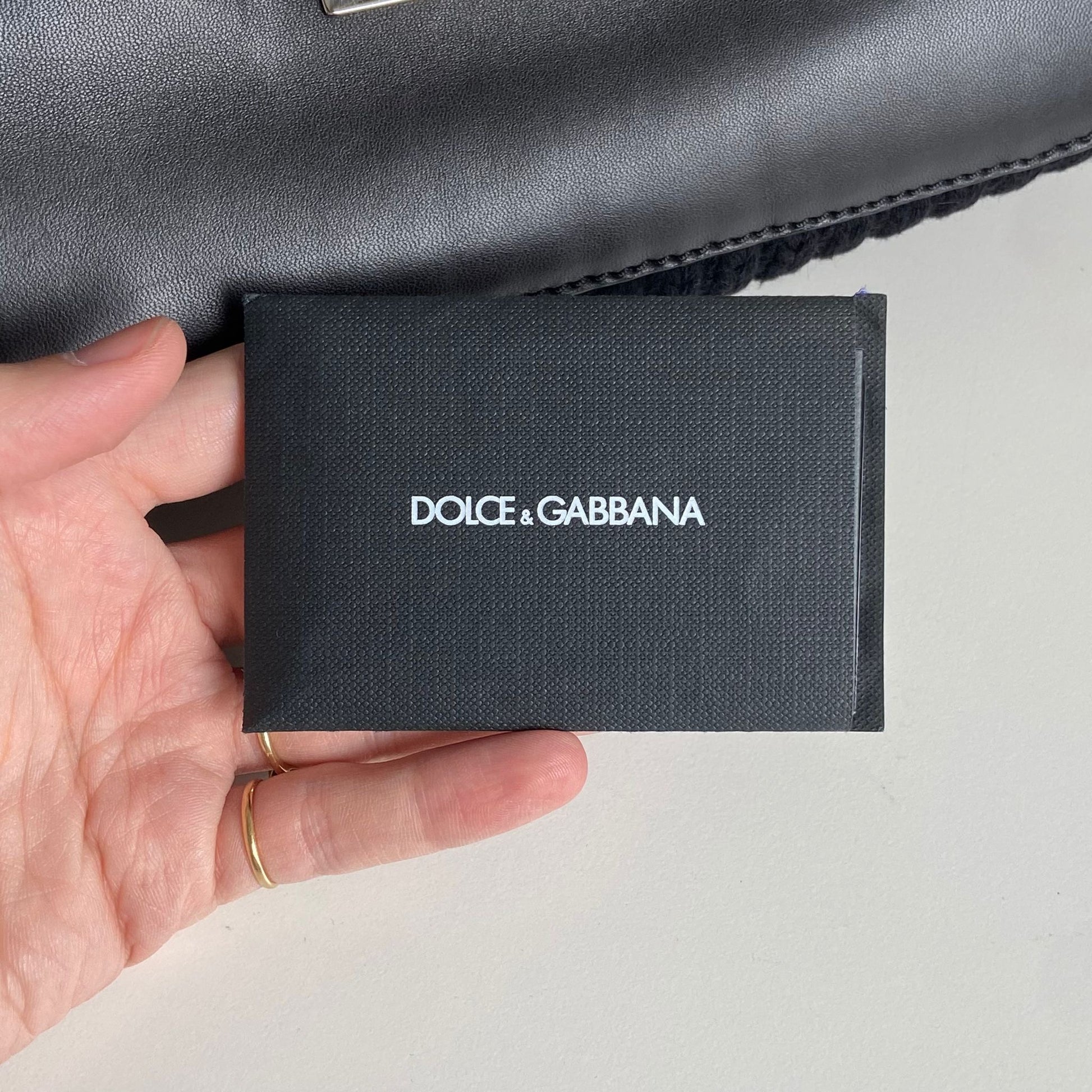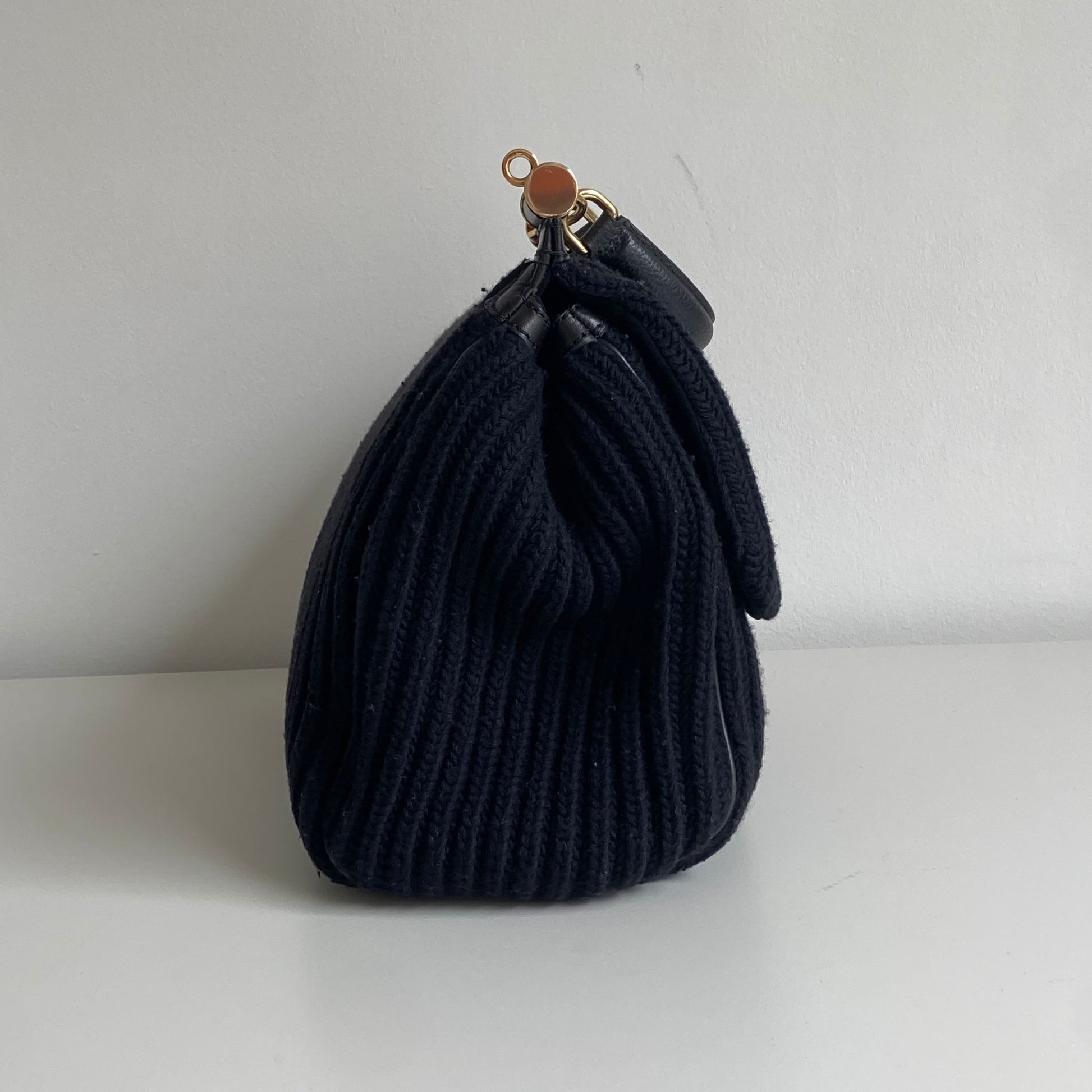 Bellissima borsa Sicily di Dolce&Gabbana in lana nera con dettagli in pelle nera e hardware oro. Si indossa a mano.