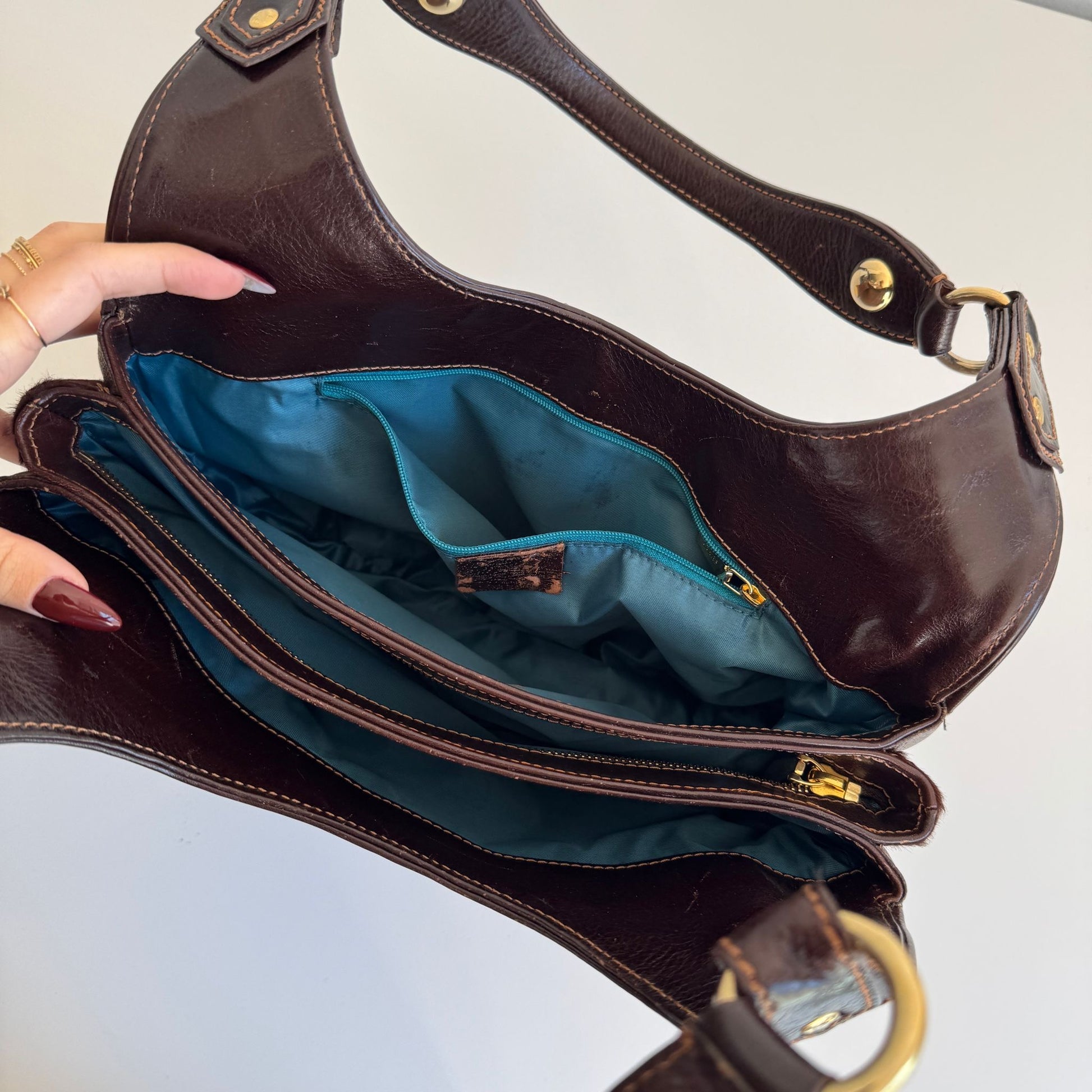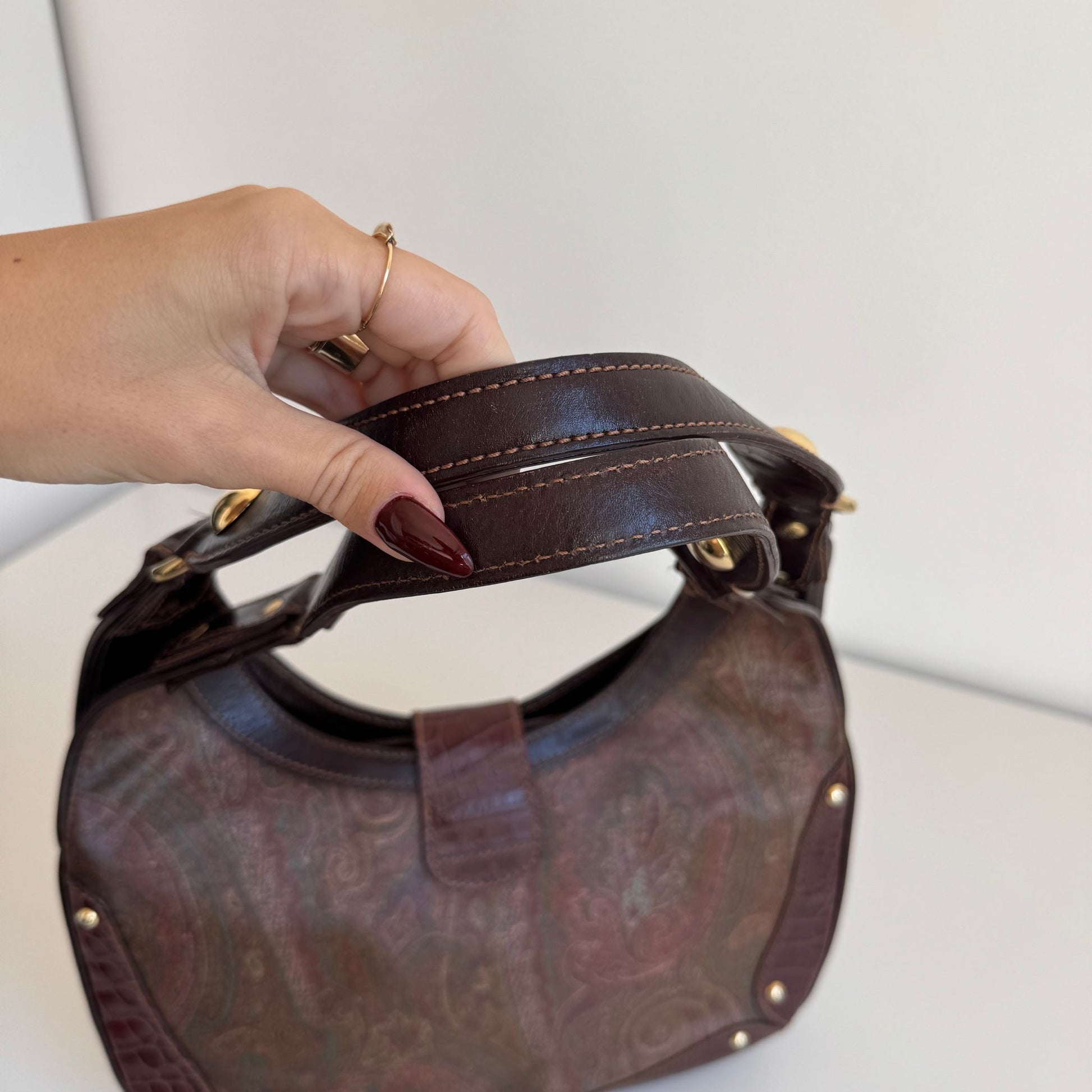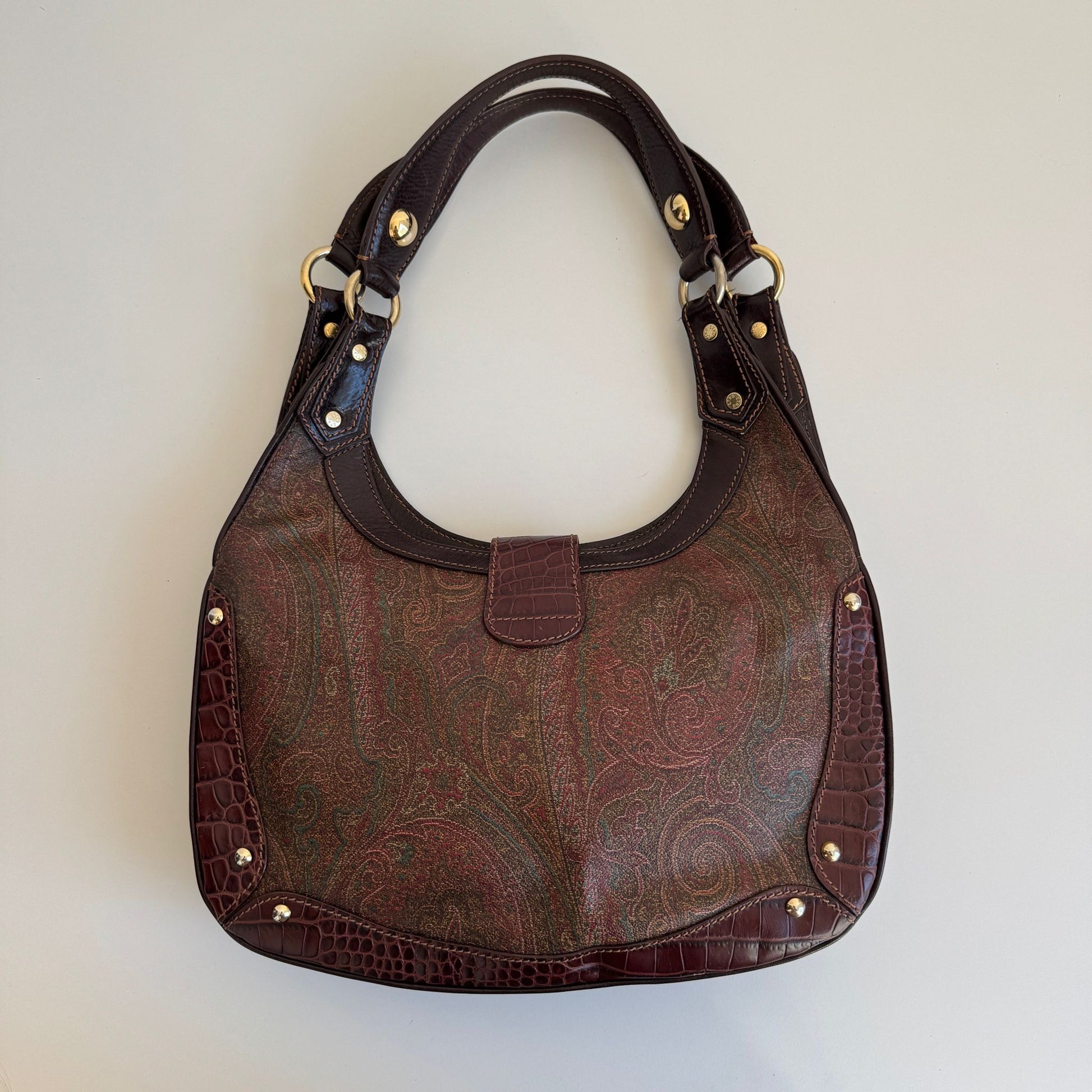 Meravigliosa borsa Etro modello Hobo in pelle Paisley e dettagli croco. Hardware oro. Si indossa a spalla.