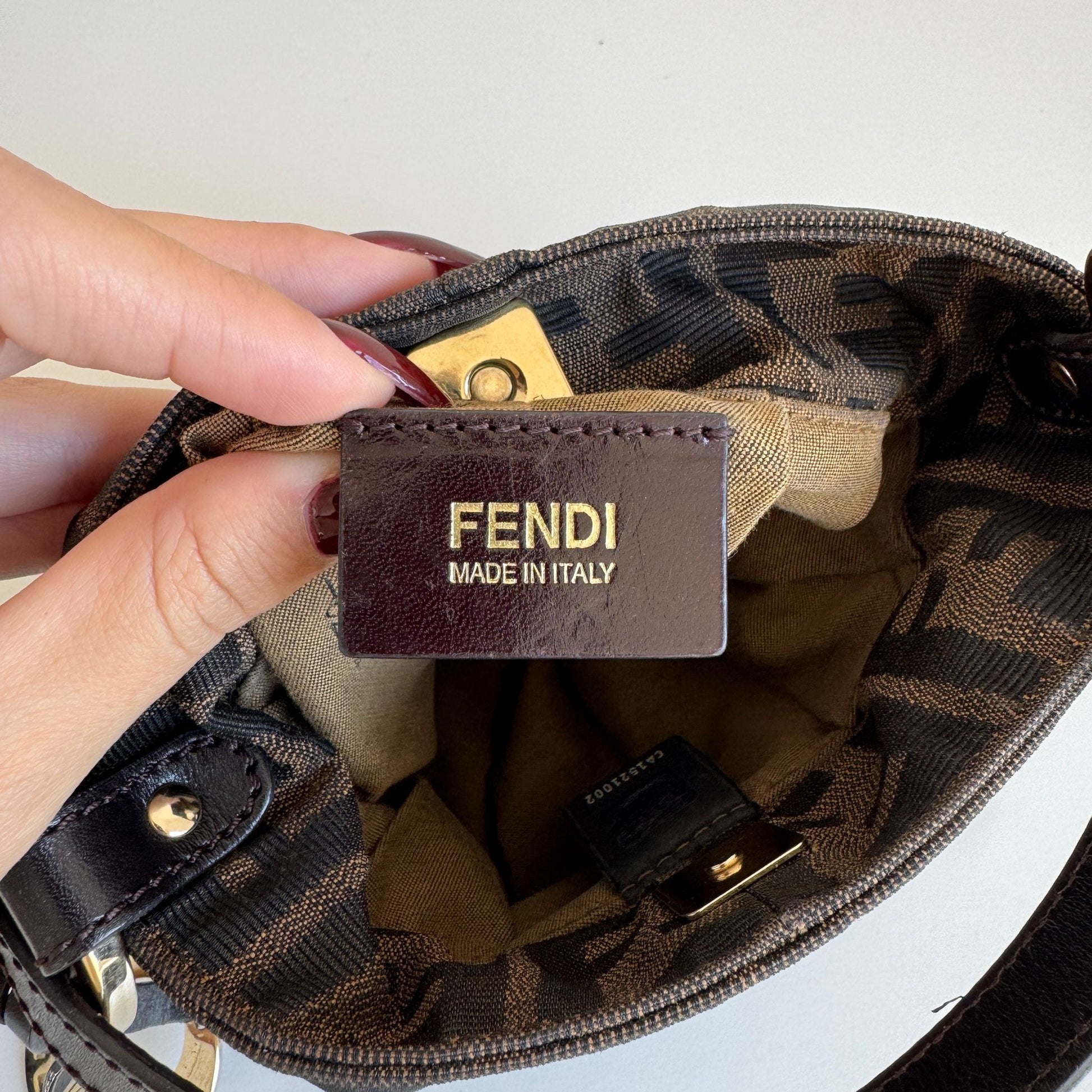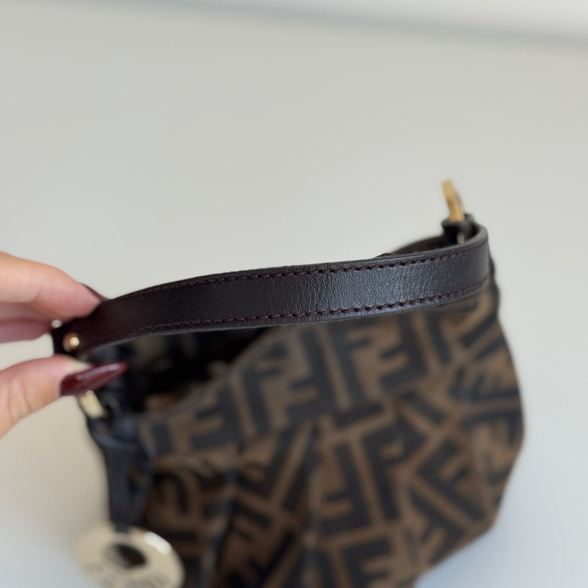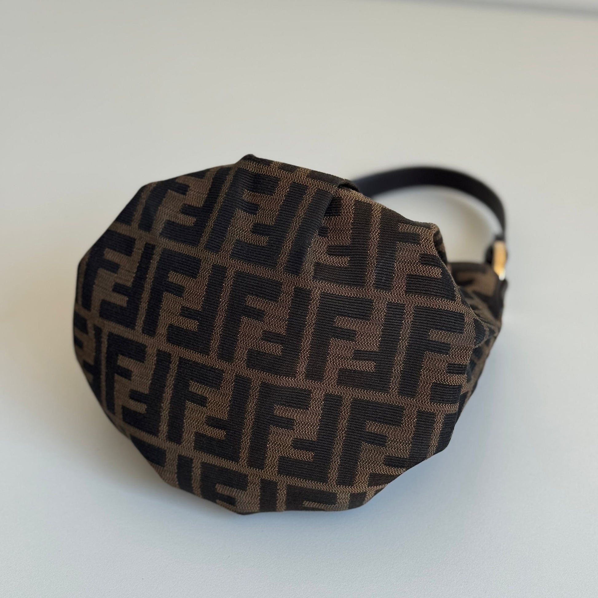 Magnifica borsa Fendi modello Chef in tela monogram FF marrone, dettagli in pelle e hardware oro. Si indossa a mano.