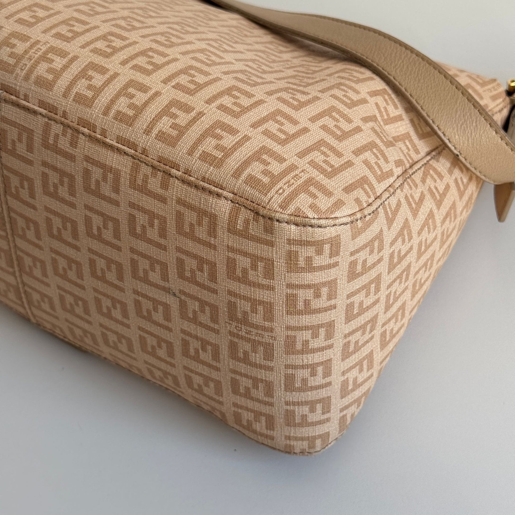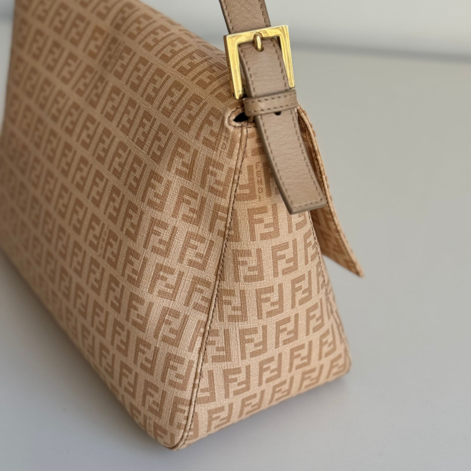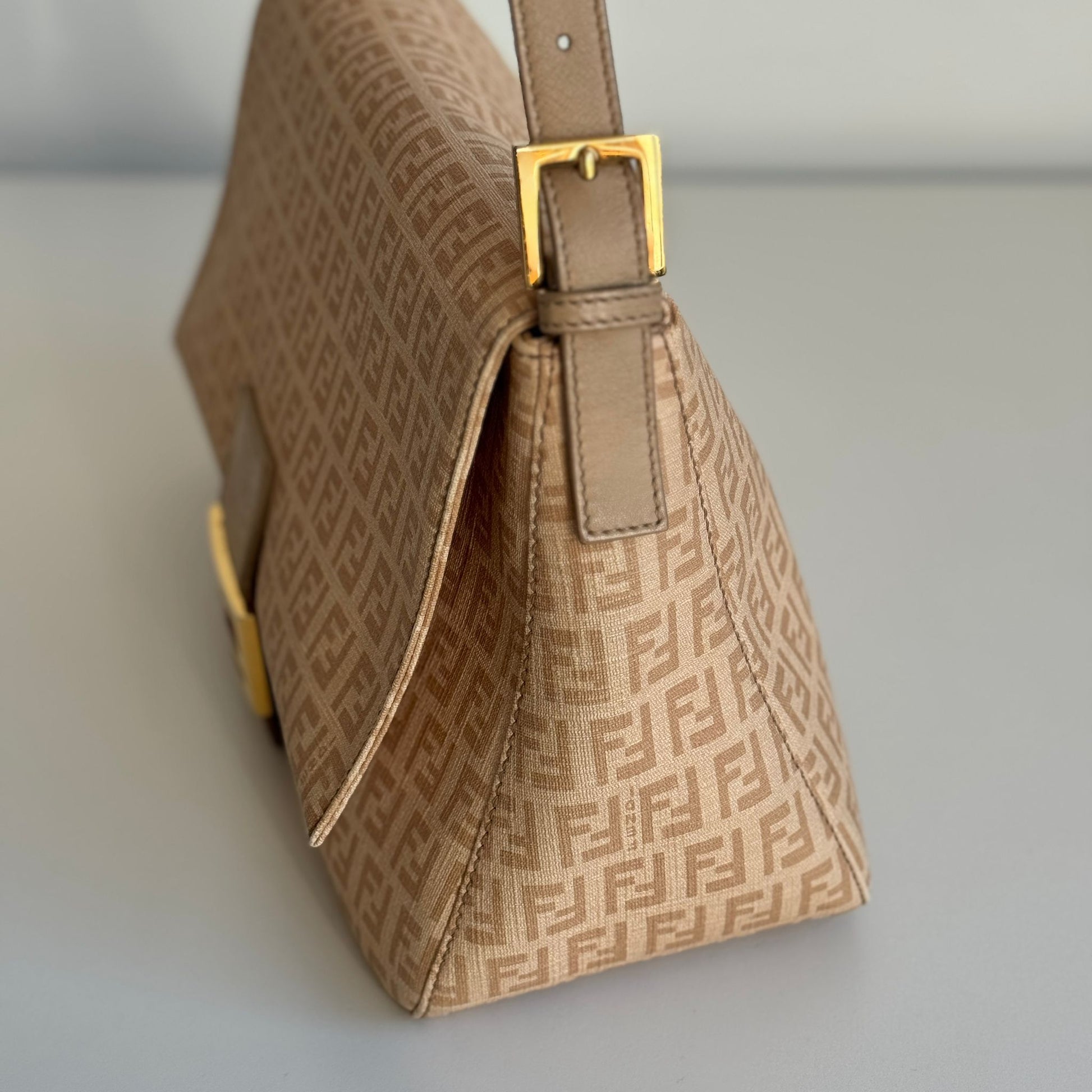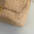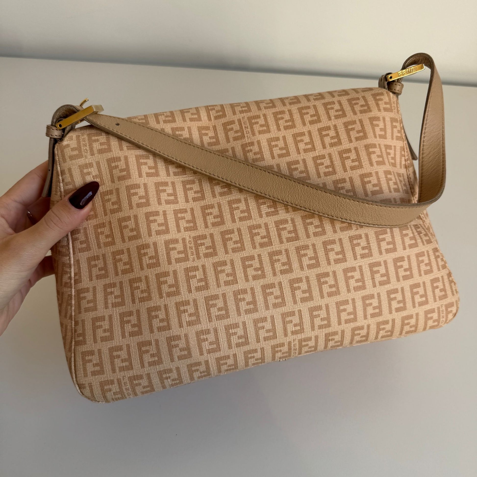 Magnifica borsa Fendi modello Mama Baguette in tela cerata zucchino rosa e inserti in pelle rosa con hardware oro. Si indossa a spalla, il manico è regolabile.