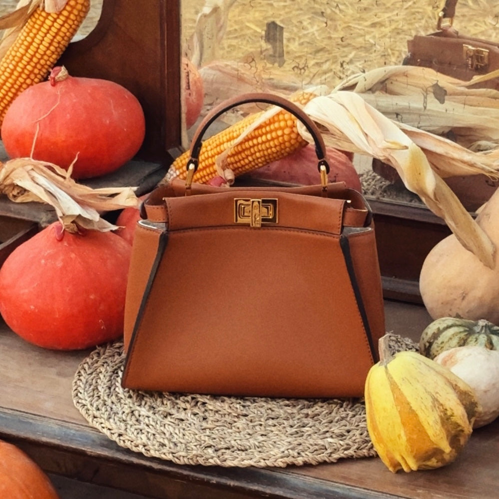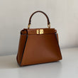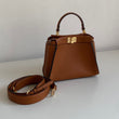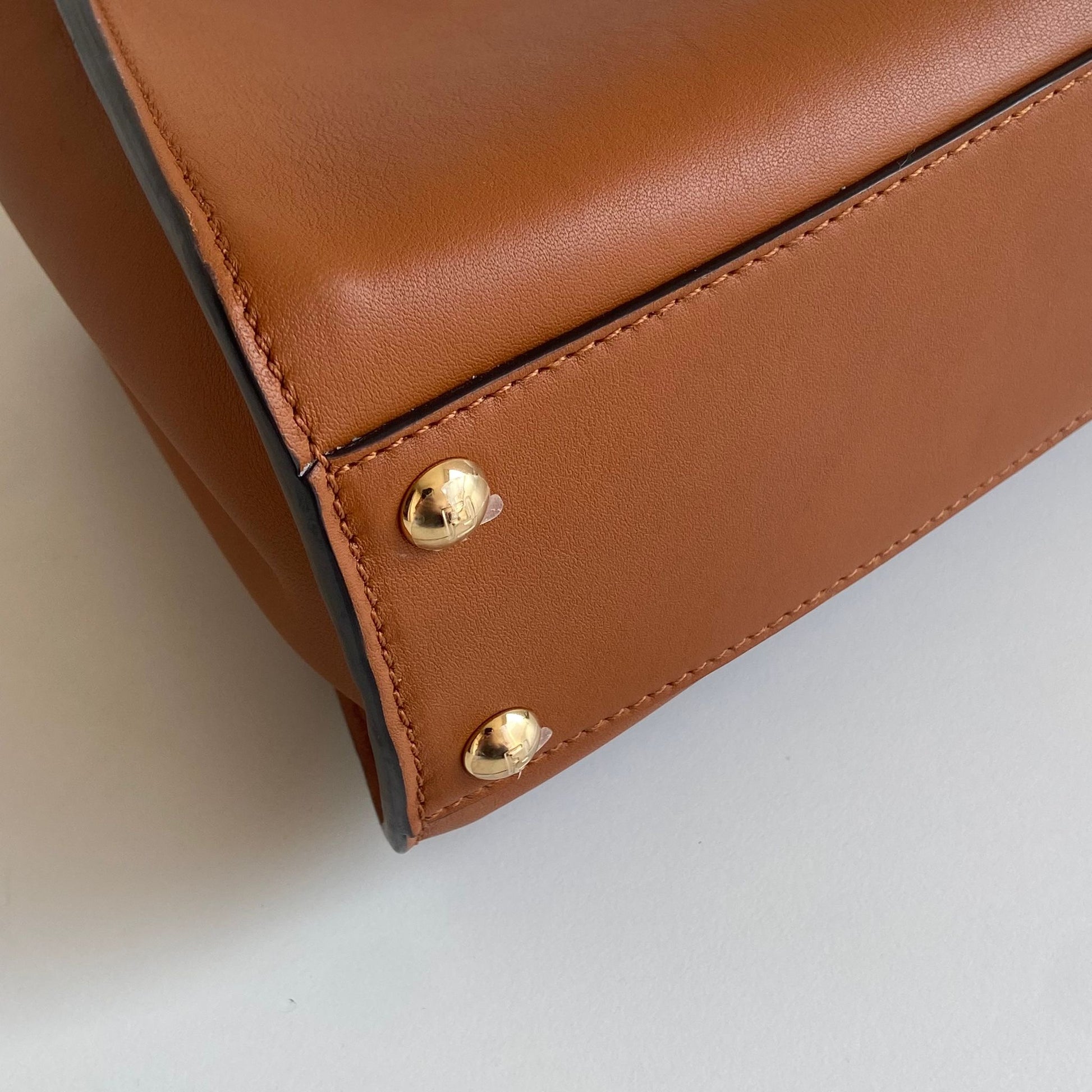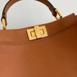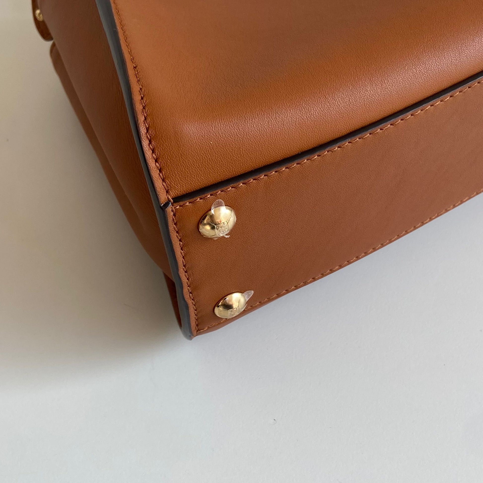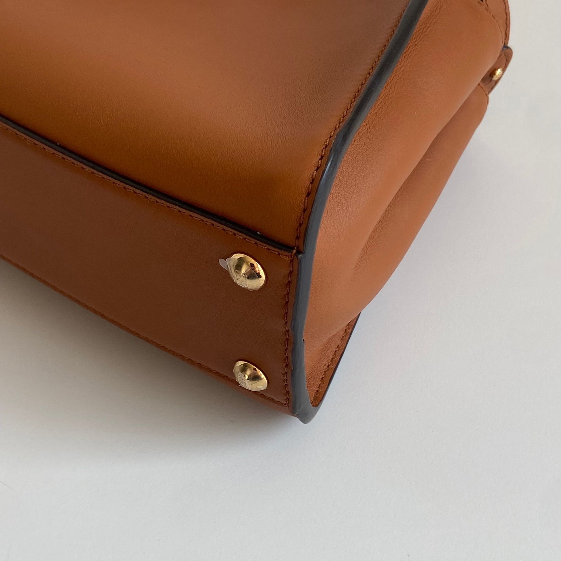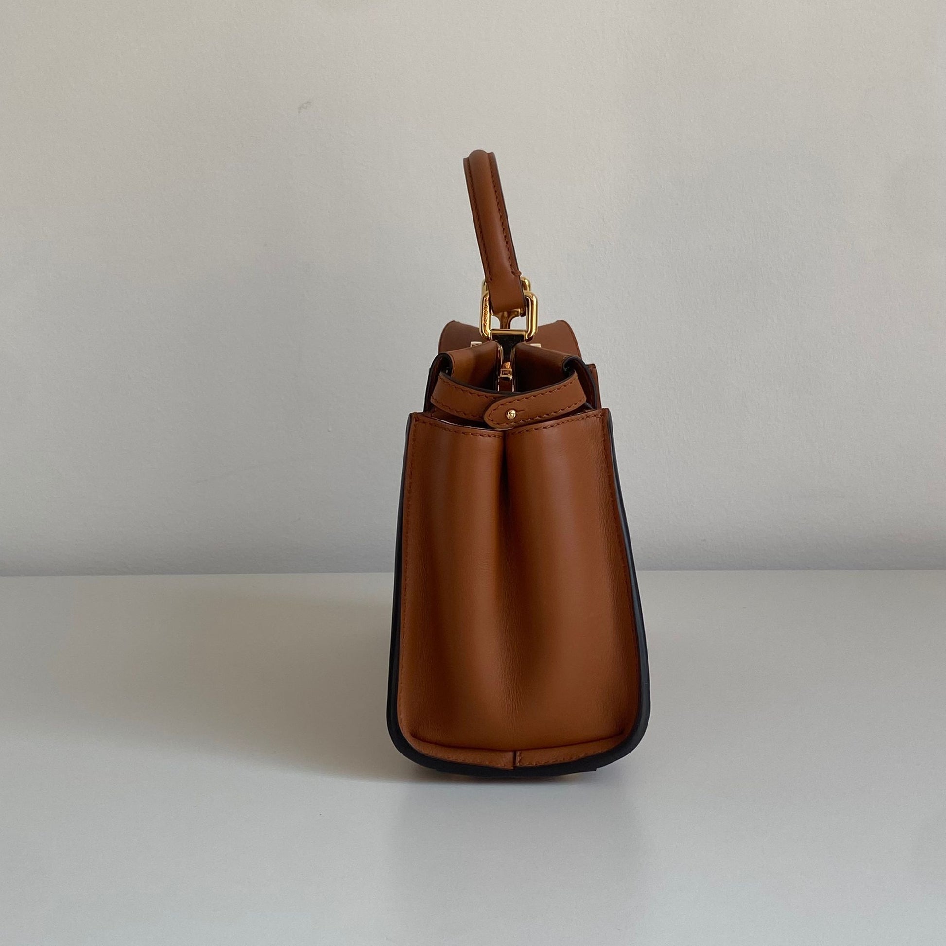 Bellissima borsa Fendi modello Peekaboo IseeU Mini in pelle liscia marrone e hardware oro. Si indossa a mano o a tracolla. La tracolla è regolabile e rimovibile.