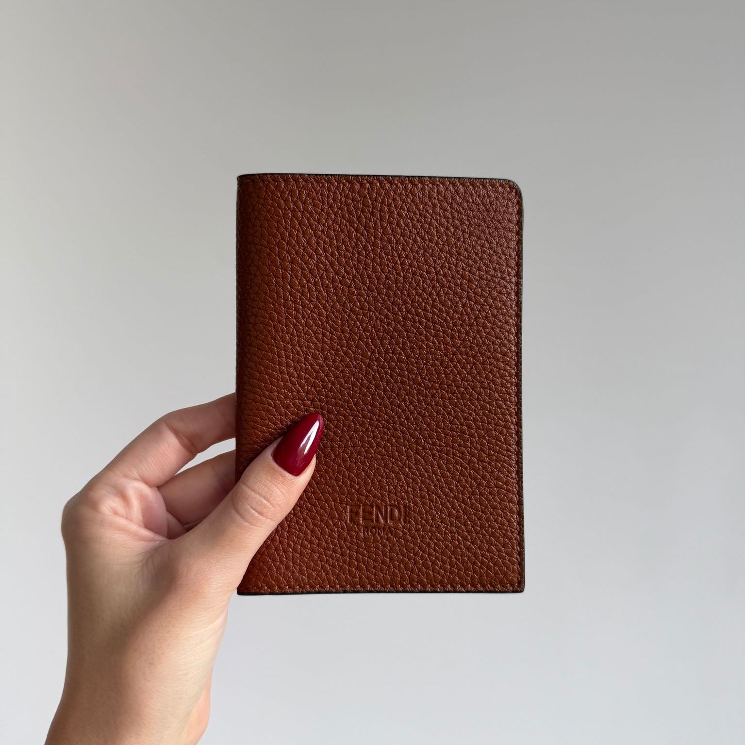 Meraviglioso portapassaporto Fendi in pelle martellata marrone.