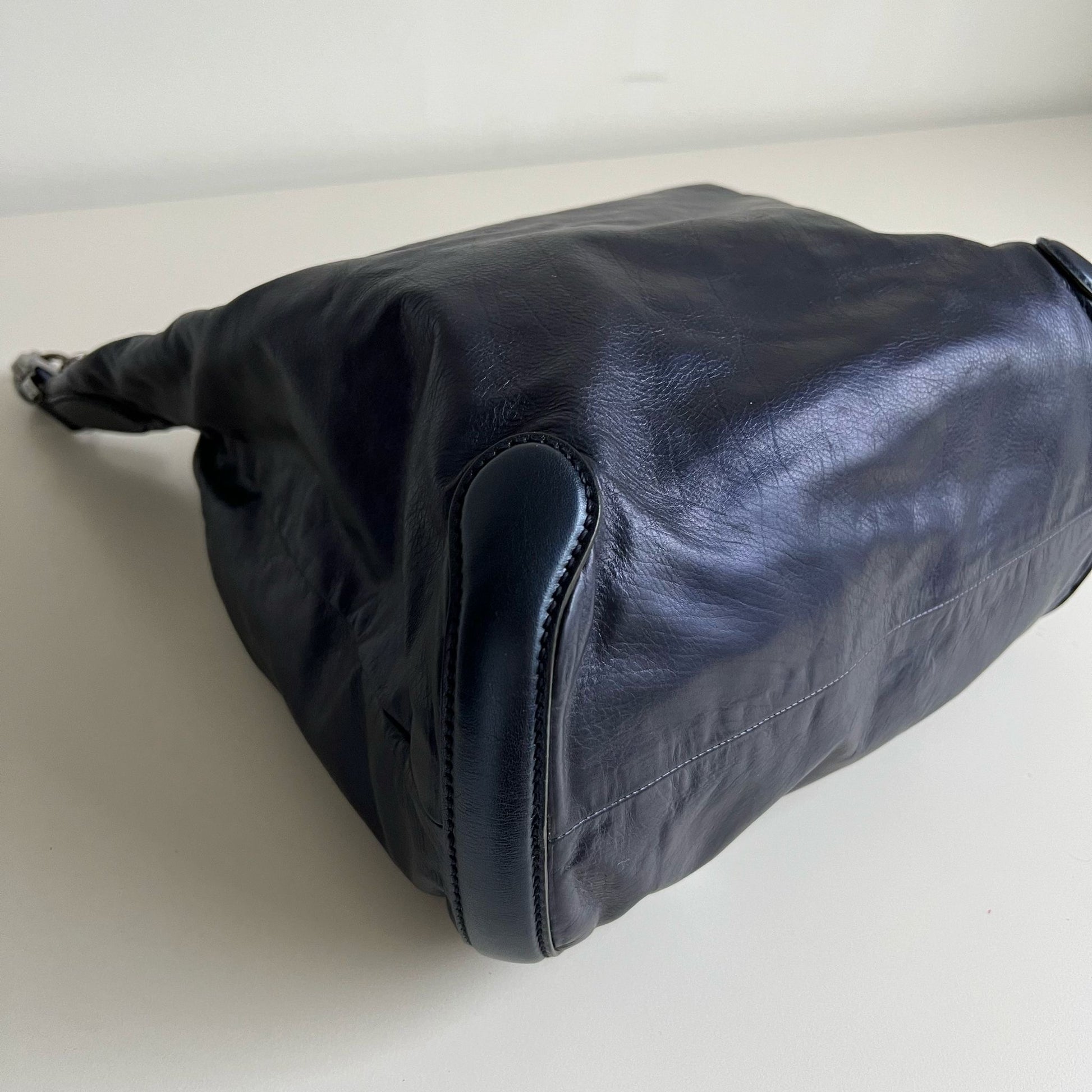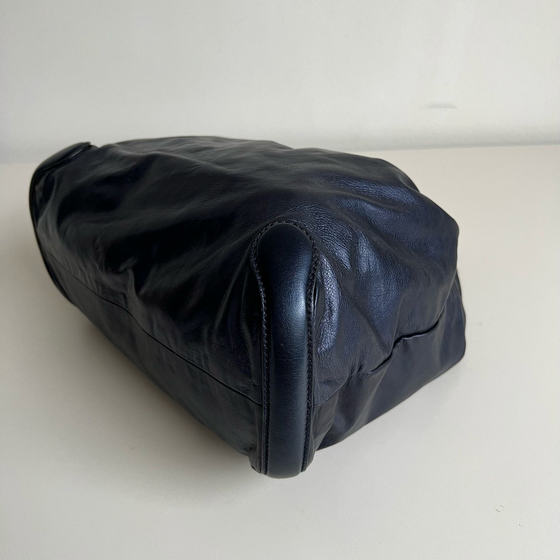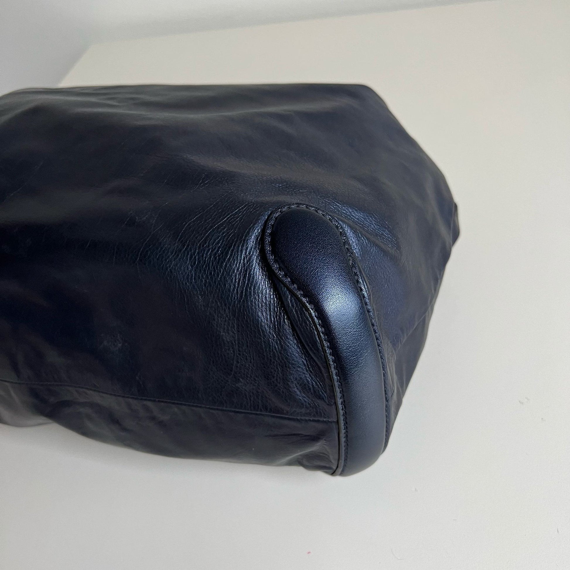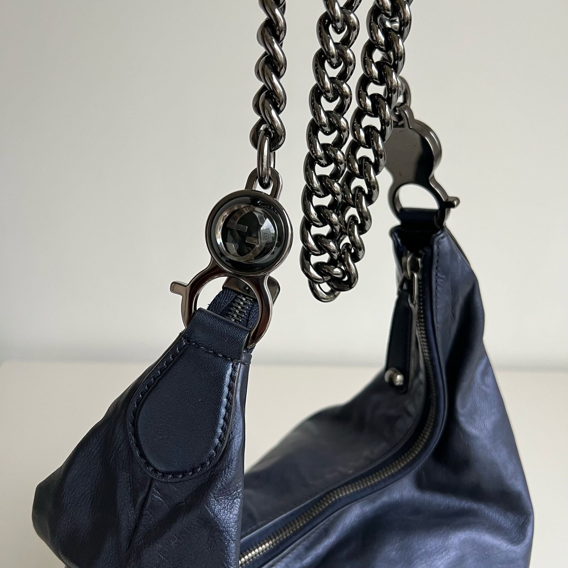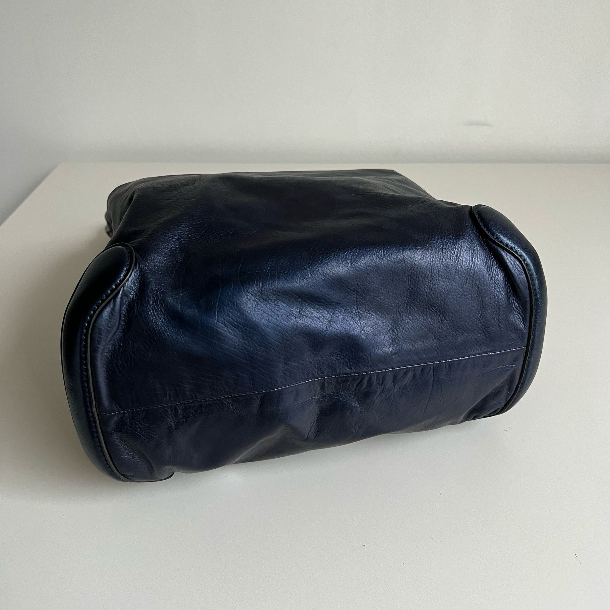 Bellissima borsa Gucci modello Galaxy in pelle blu navy metallizzato con hardware argento. Si indossa a spalla.
