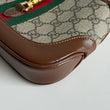 Iconica mini bag Gucci modello Jackie Mini in tela GG Supreme beige e dettagli in pelle marrone con hardware oro. Da indossare a tracolla o a mano, grazie alla tracolla rimovibile e regolabile.