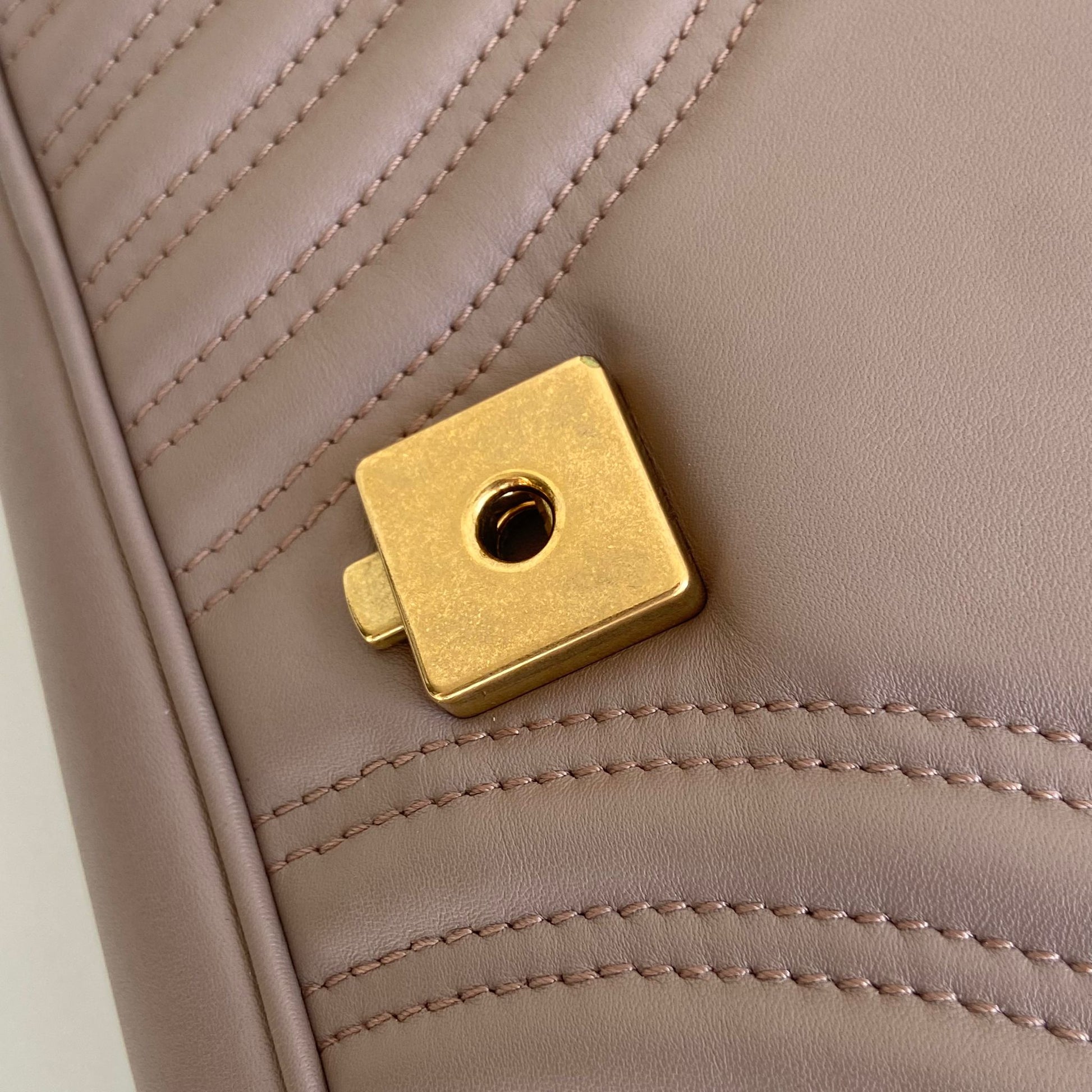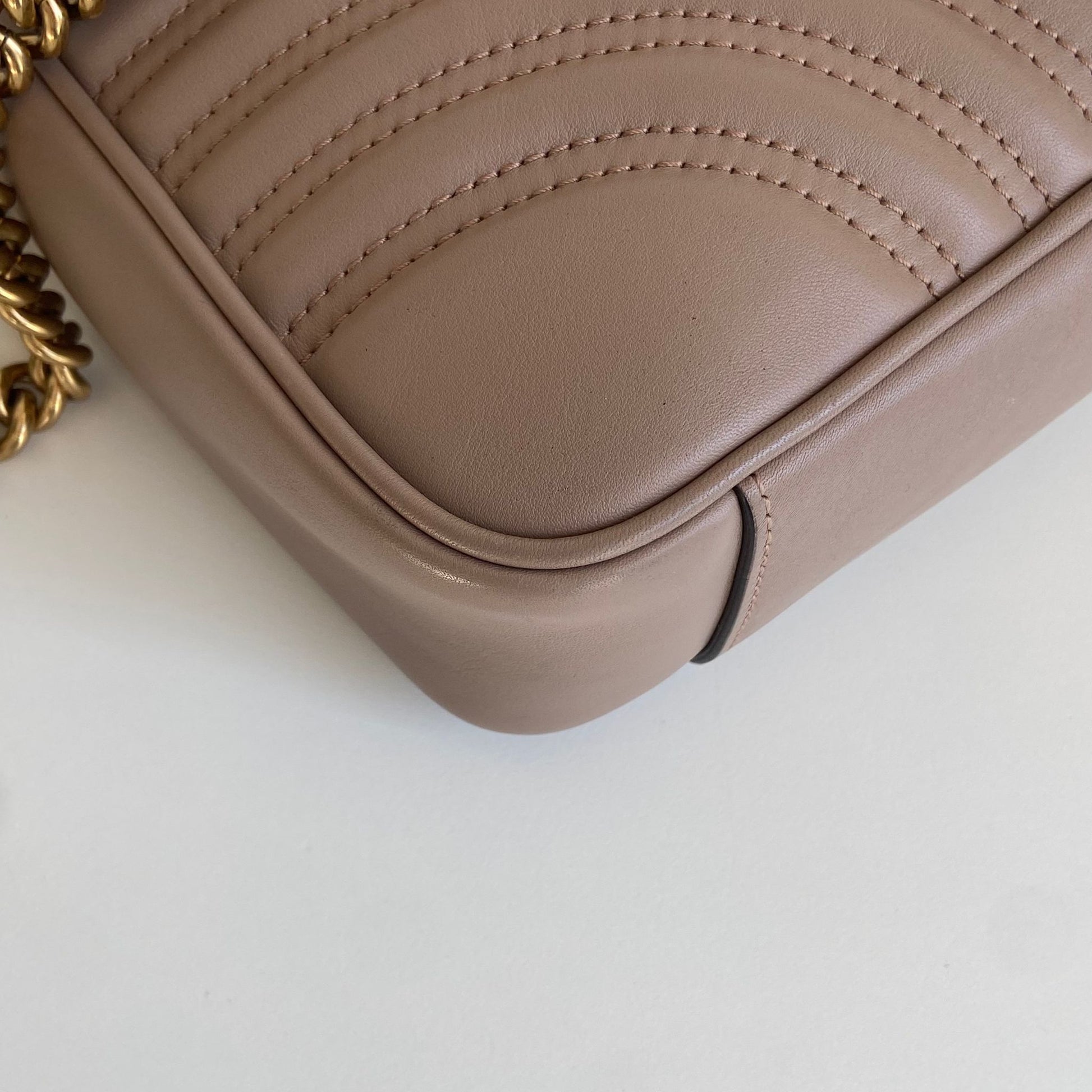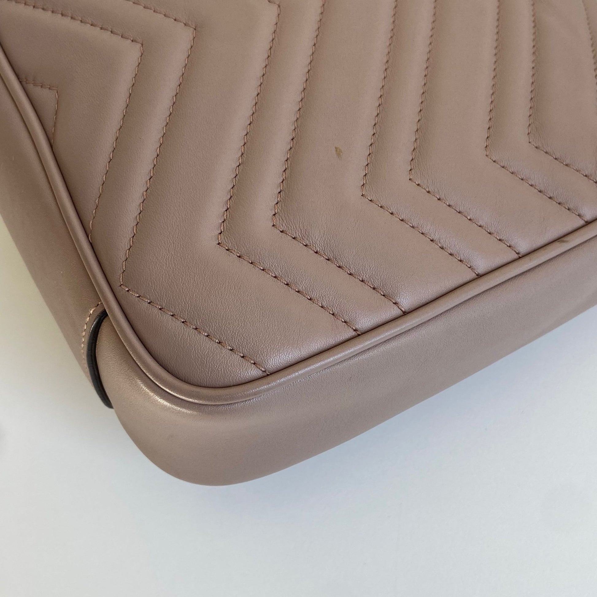 Bellissima borsa Gucci modello Marmont in pelle trapuntata color rosa antico e hardware oro. Si indossa a spalla o a tracolla.