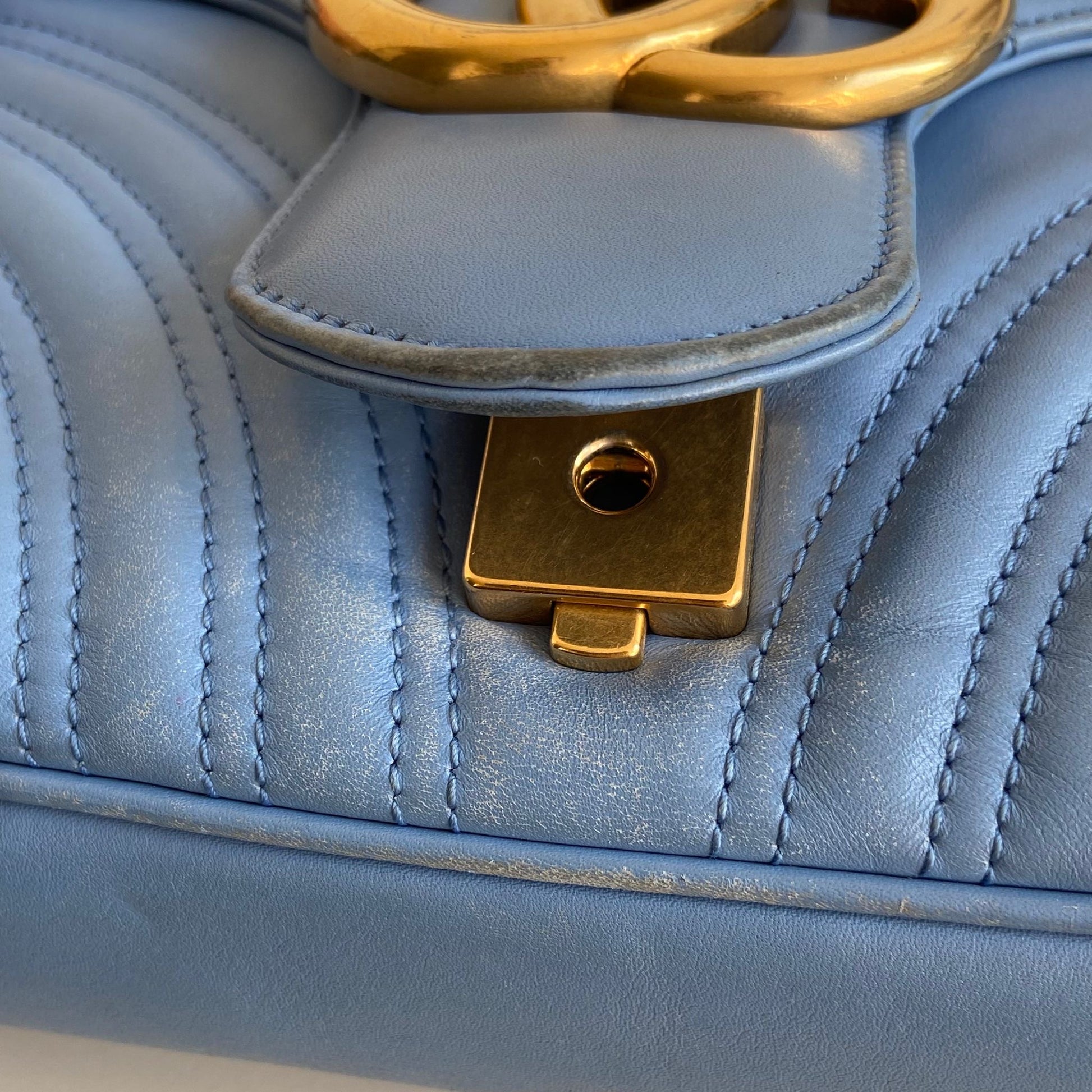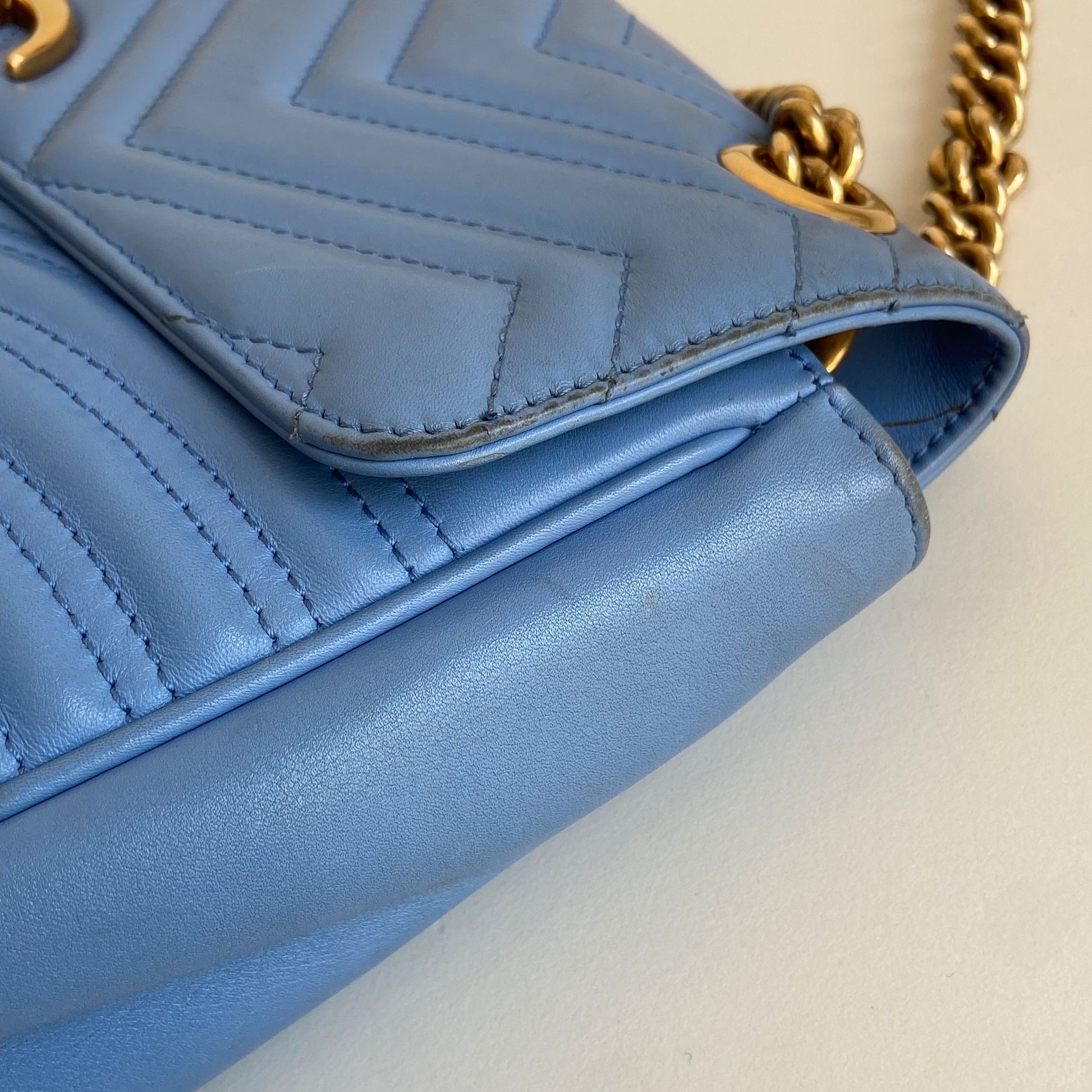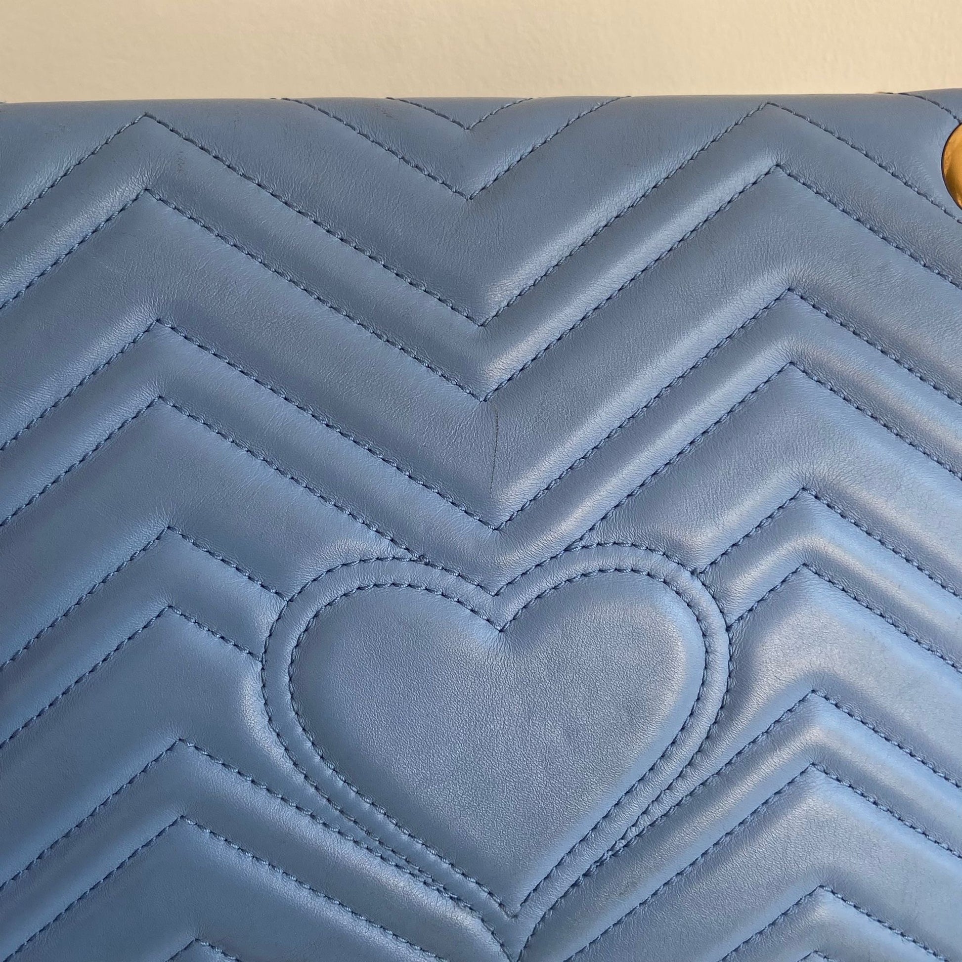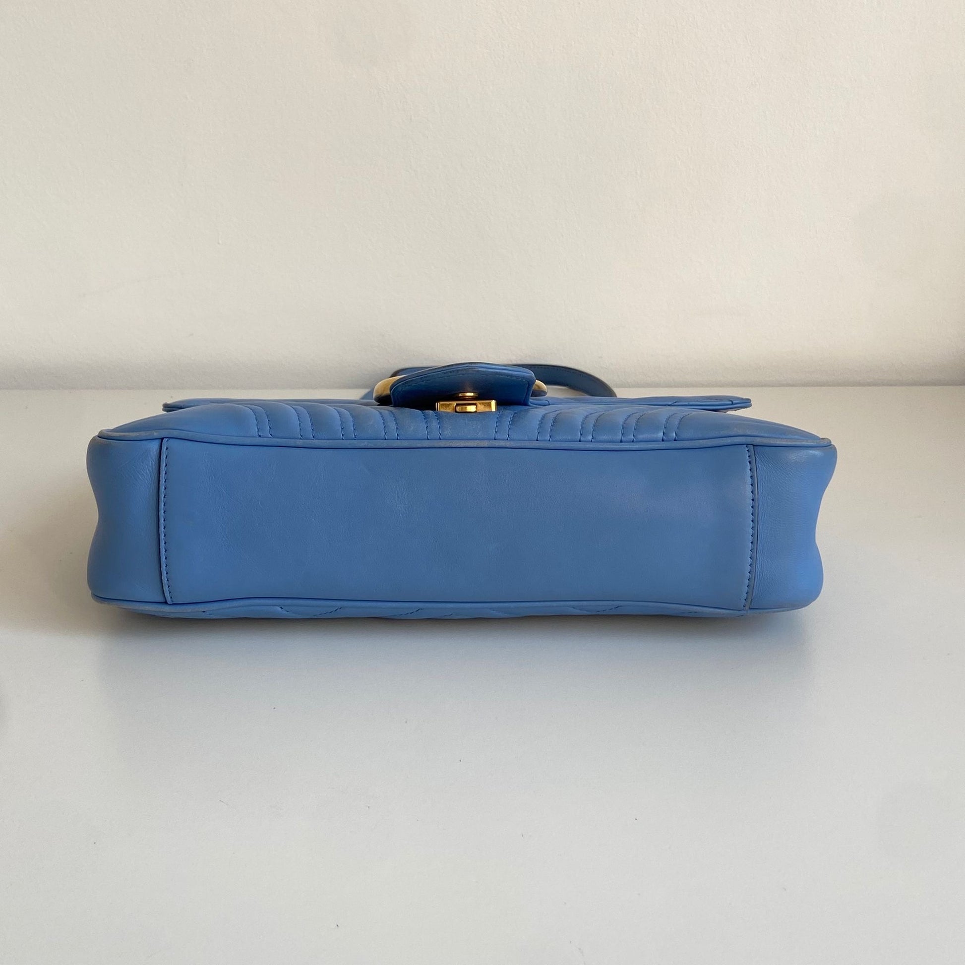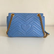 Bellissima borsa Gucci modello Marmont in pelle trapuntata azzurra e hardware oro. Si indossa a spalla o a tracolla.