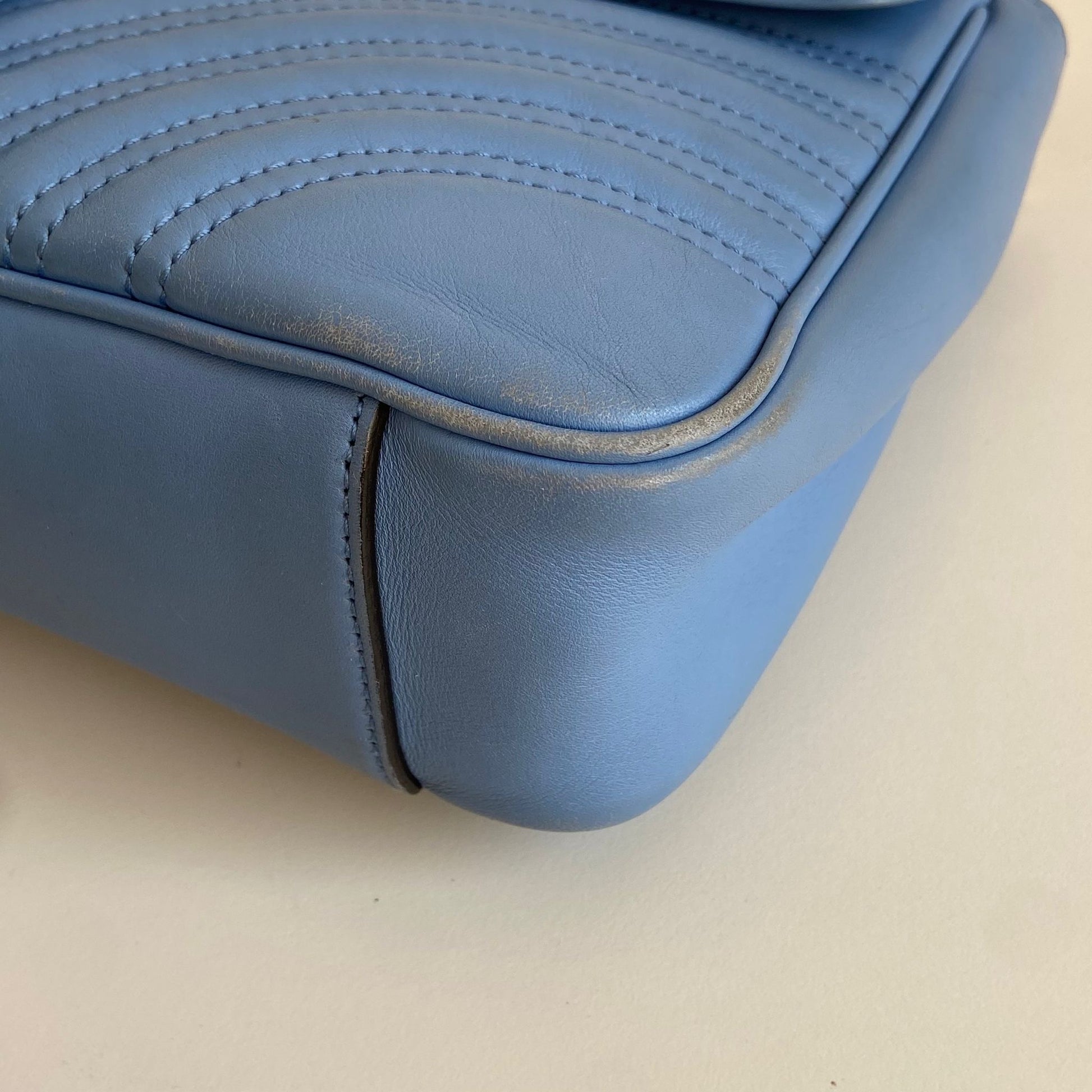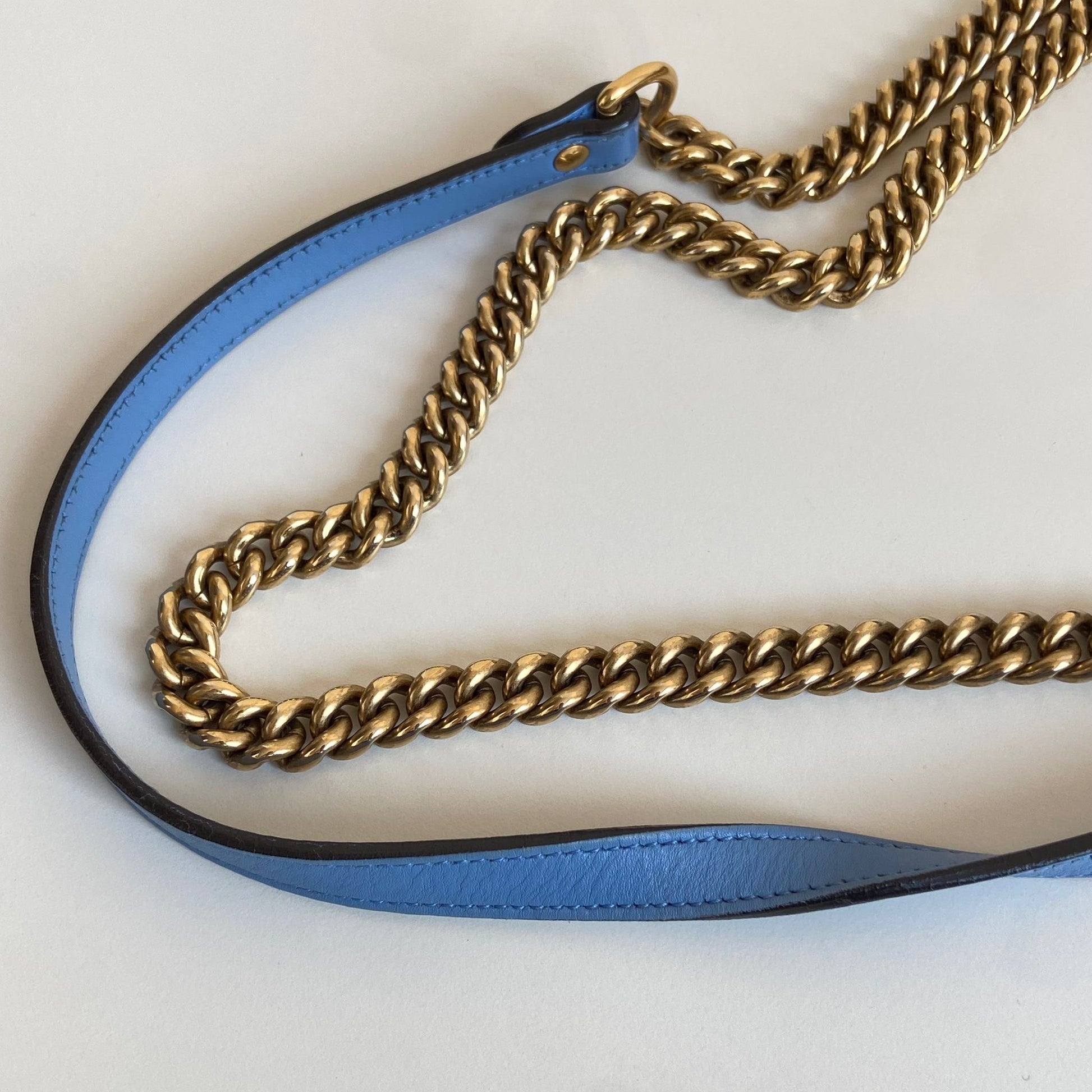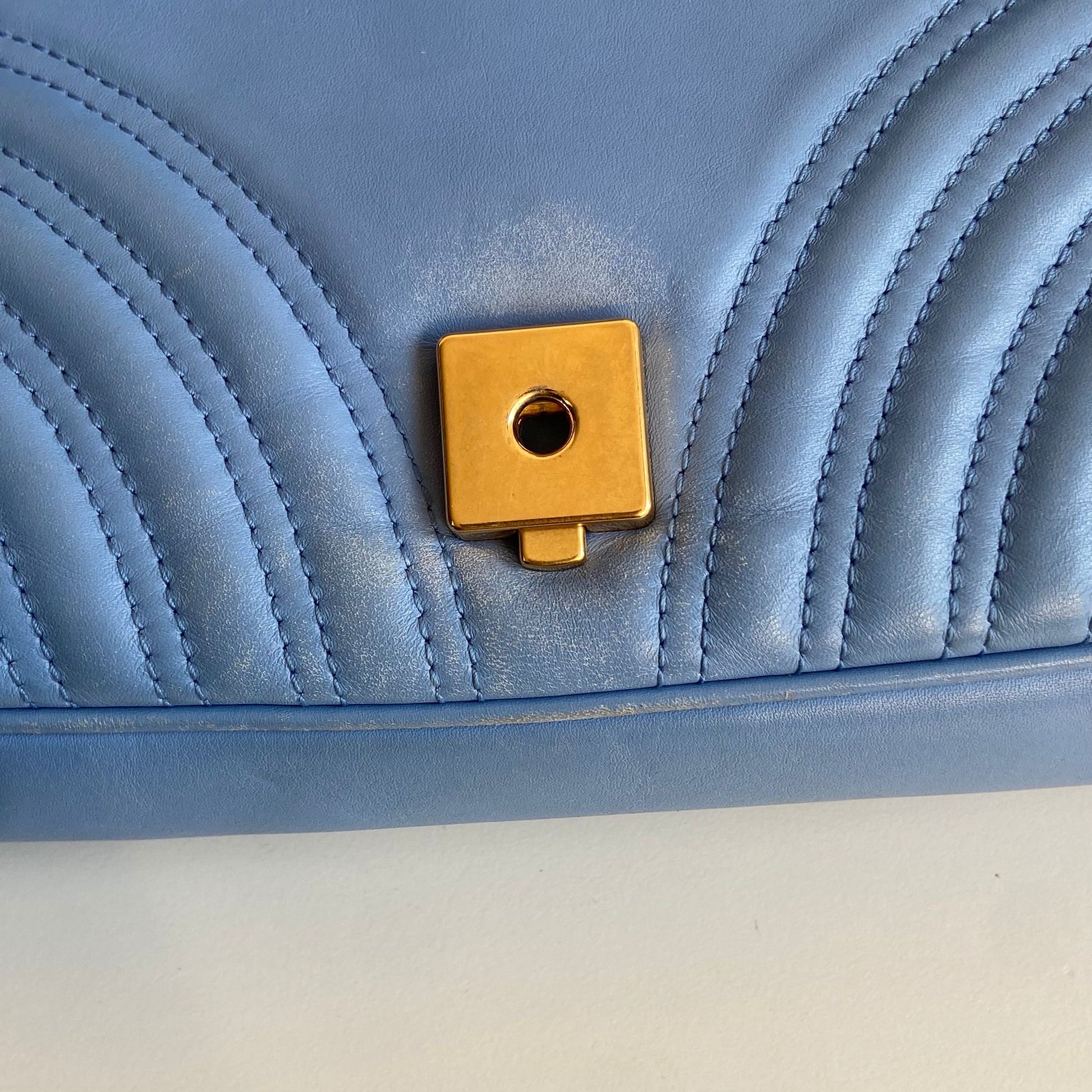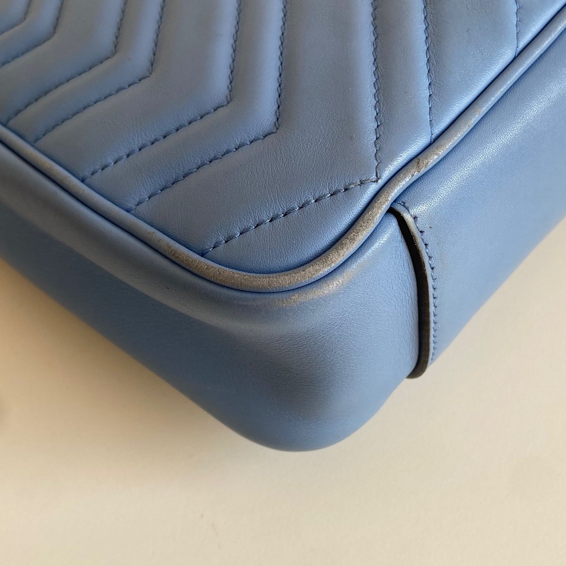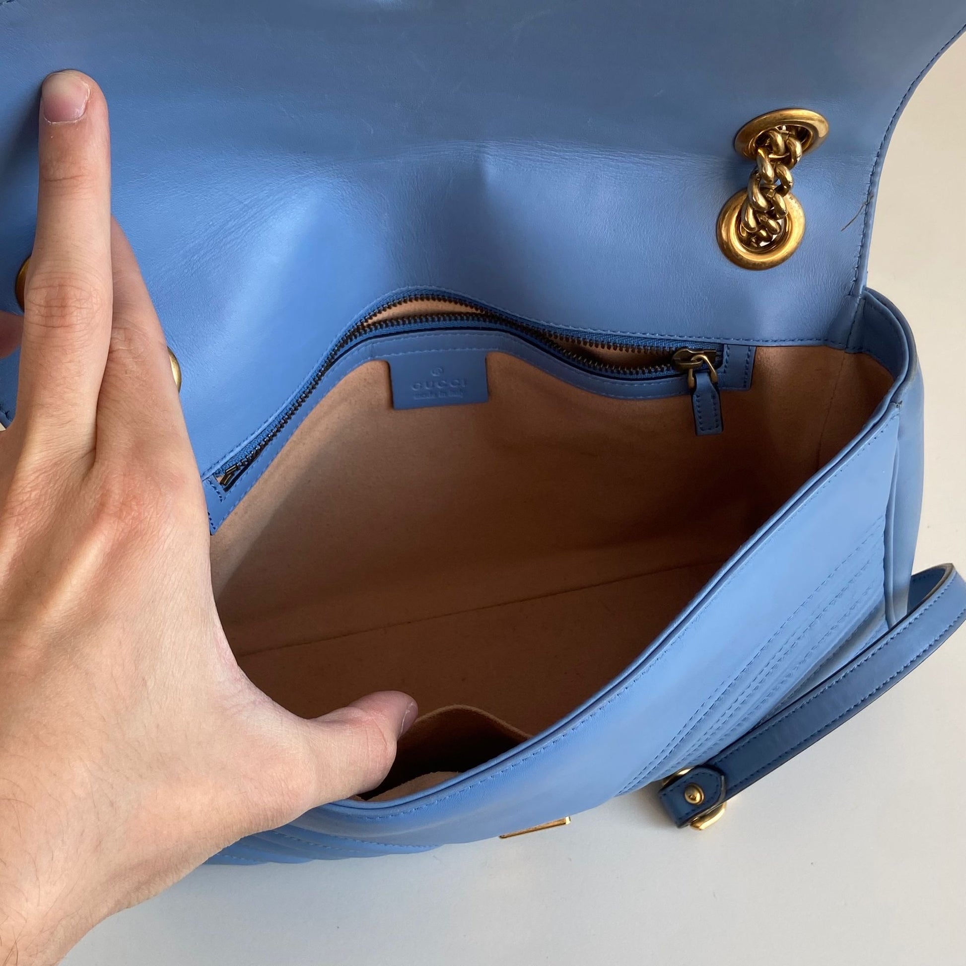 Bellissima borsa Gucci modello Marmont in pelle trapuntata azzurra e hardware oro. Si indossa a spalla o a tracolla.