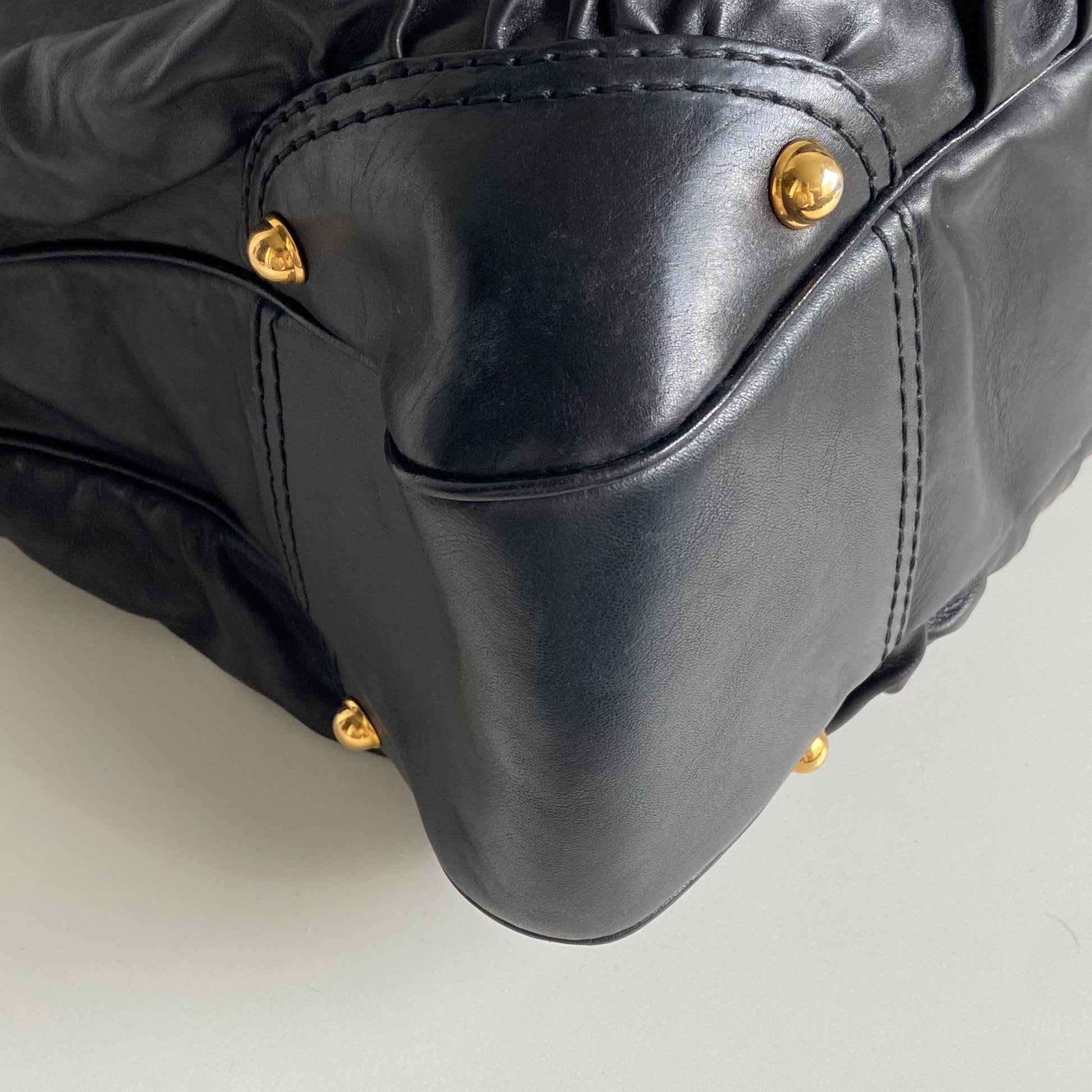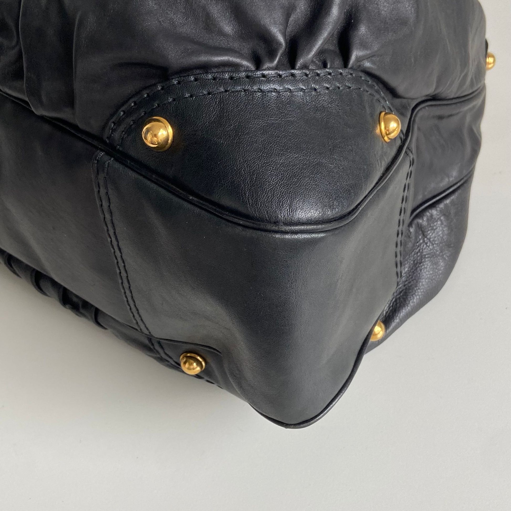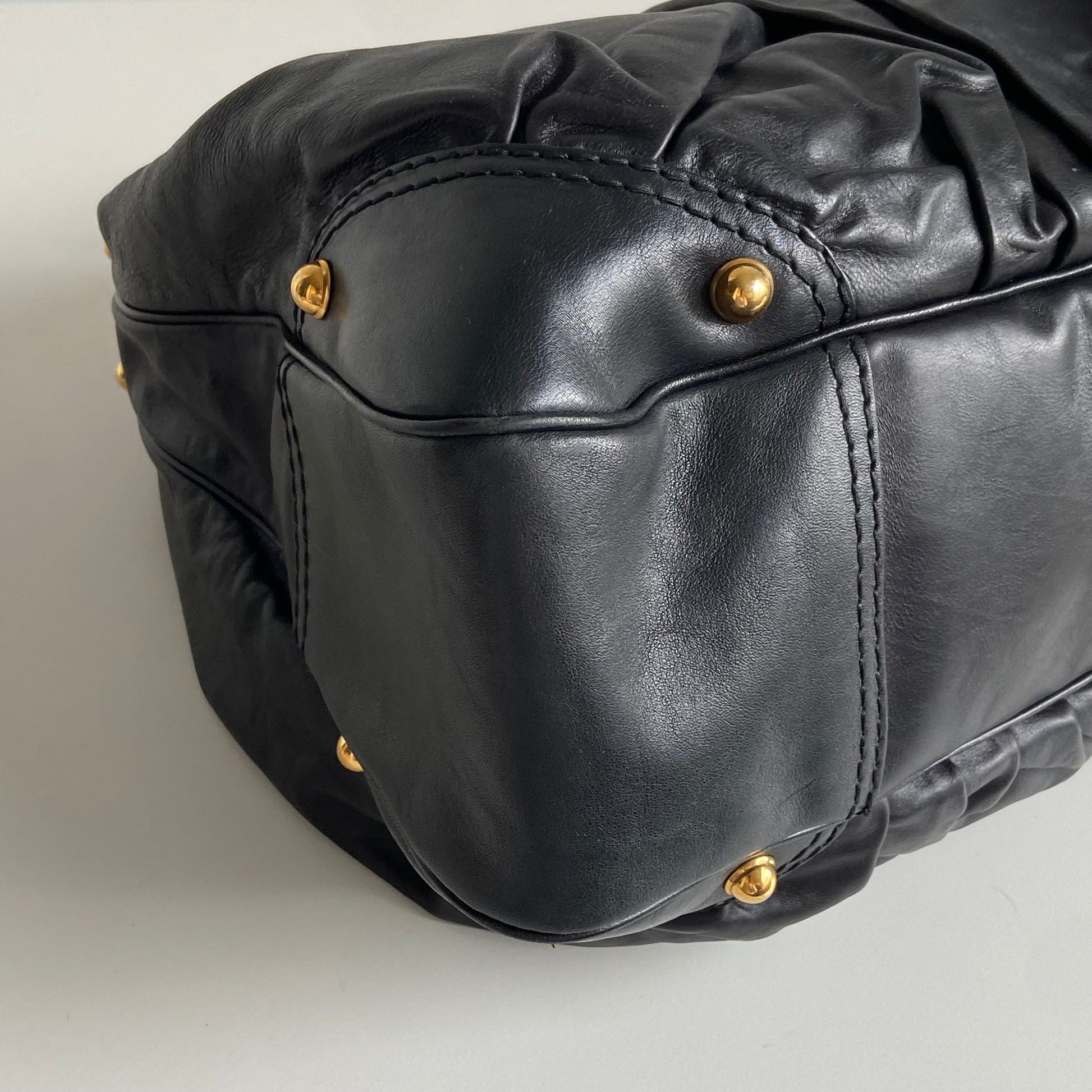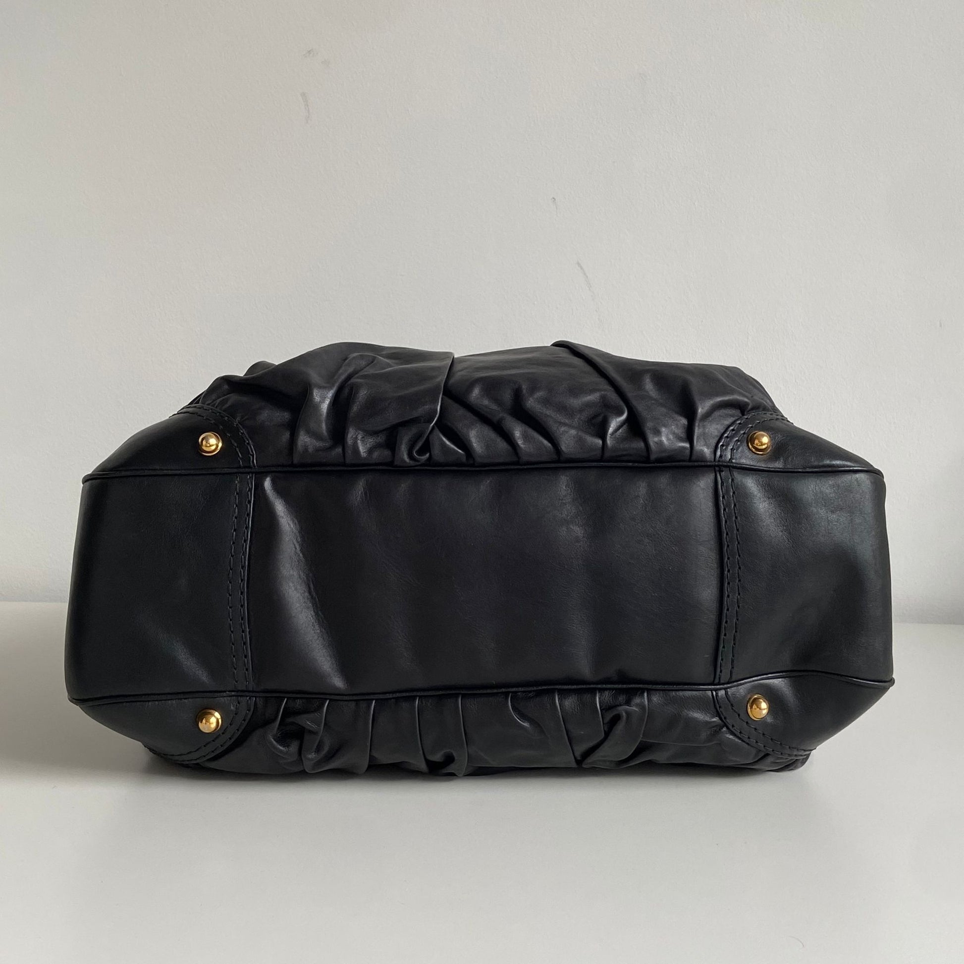 Bellissima borsa Gucci modello maxi shopper in pelle nera e hardware oro. Si indossa a spalla.
