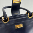 Bellissima borsa Hermès modello Berry in pelle liscia blu e hardware oro. Si indossa a mano.