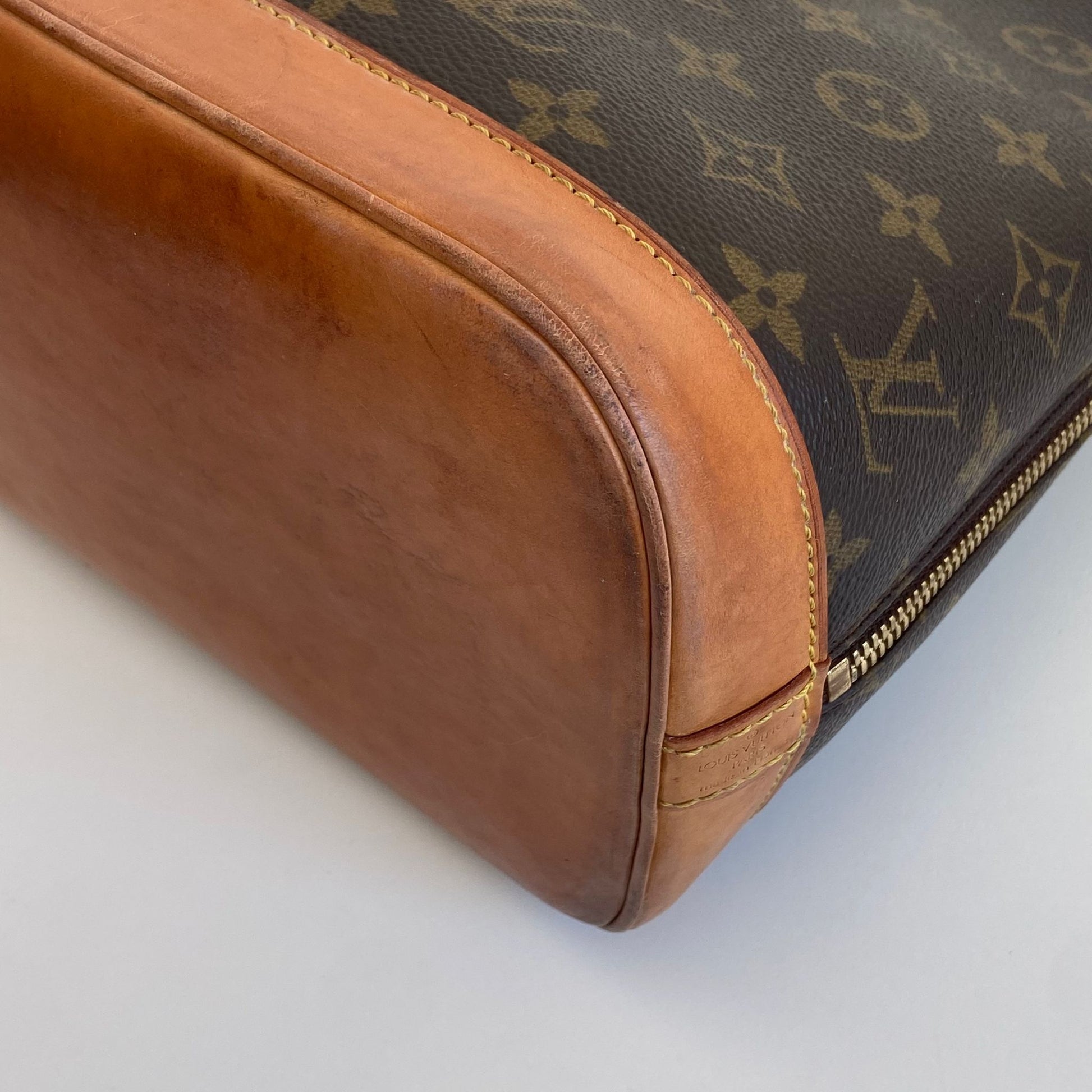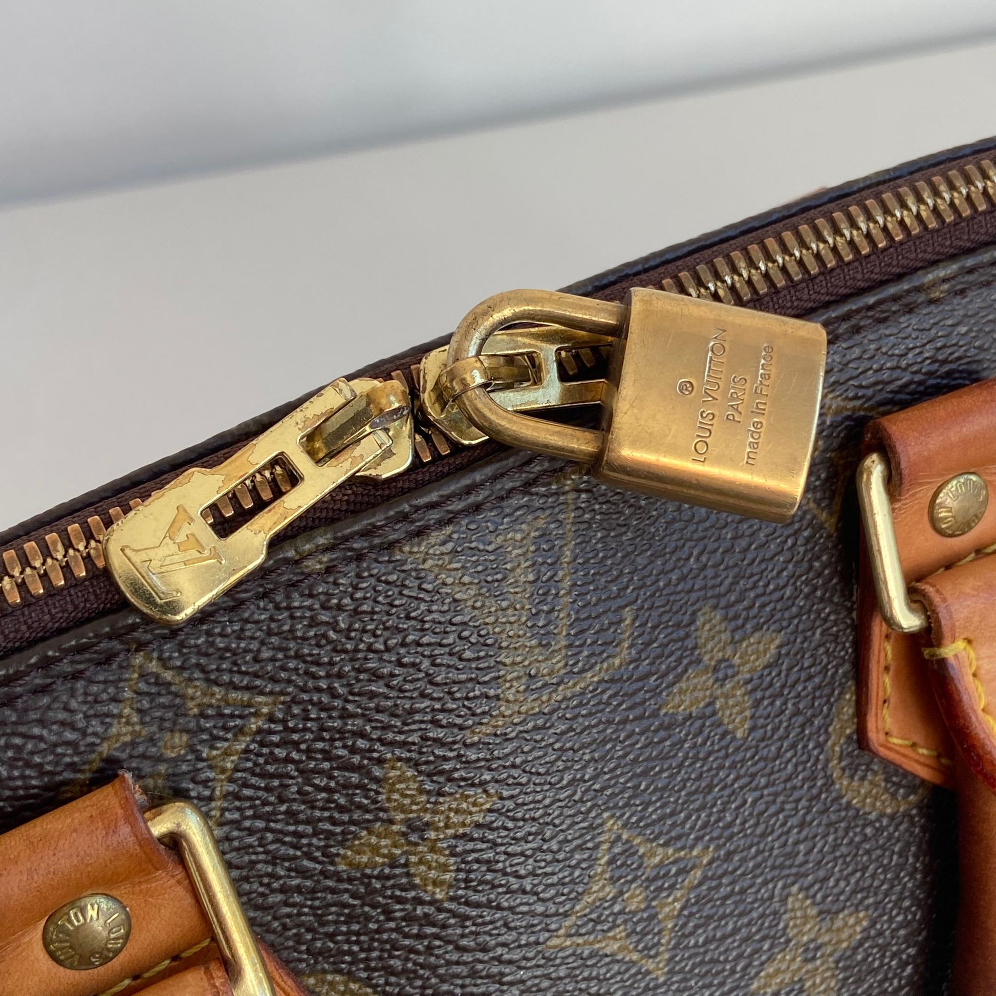 Intramontabile borsa Louis Vuitton modello Alma PM in tela monogram LV e dettagli in vacchetta con hardware. Si indossa a mano.