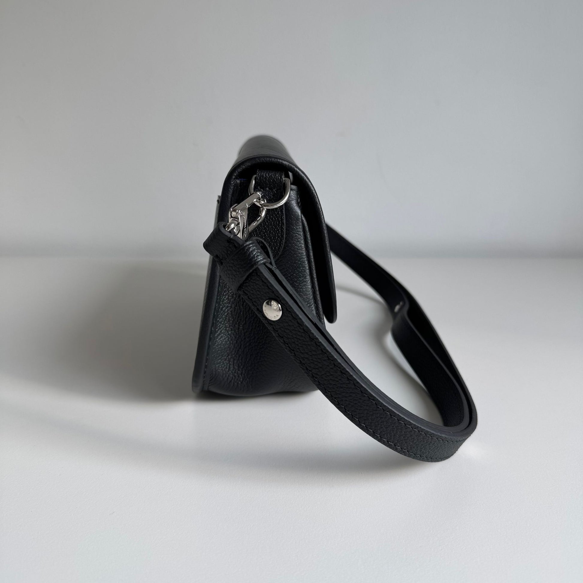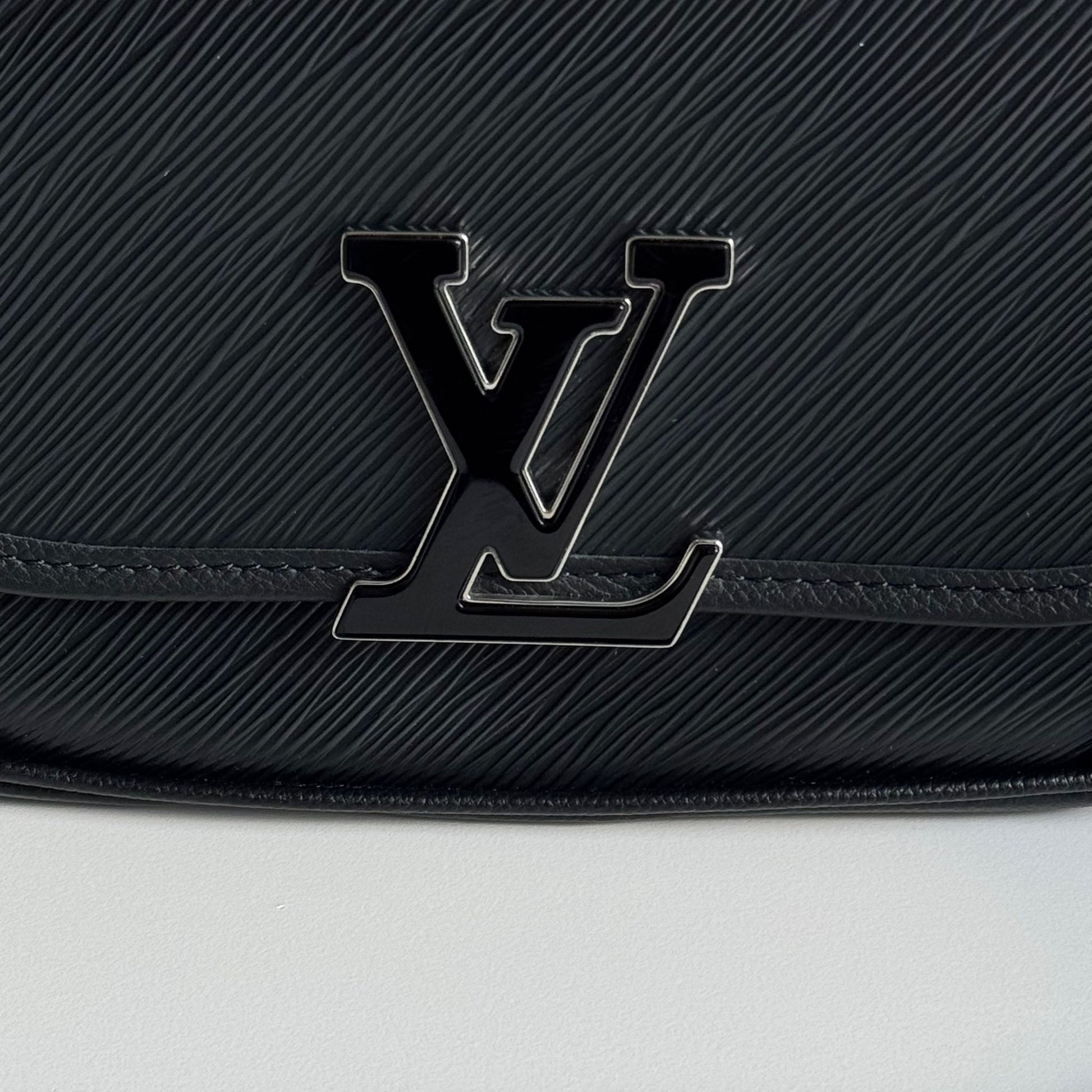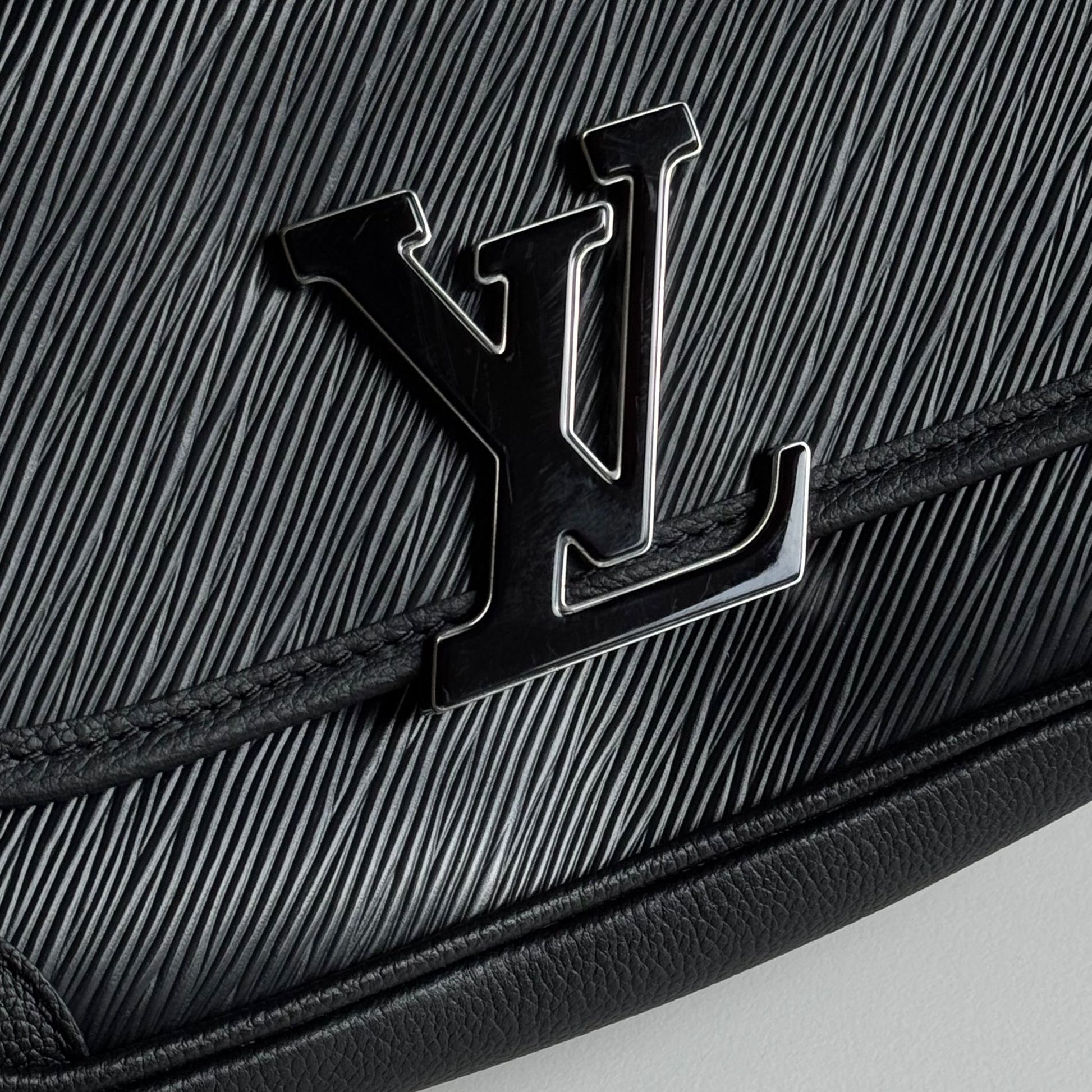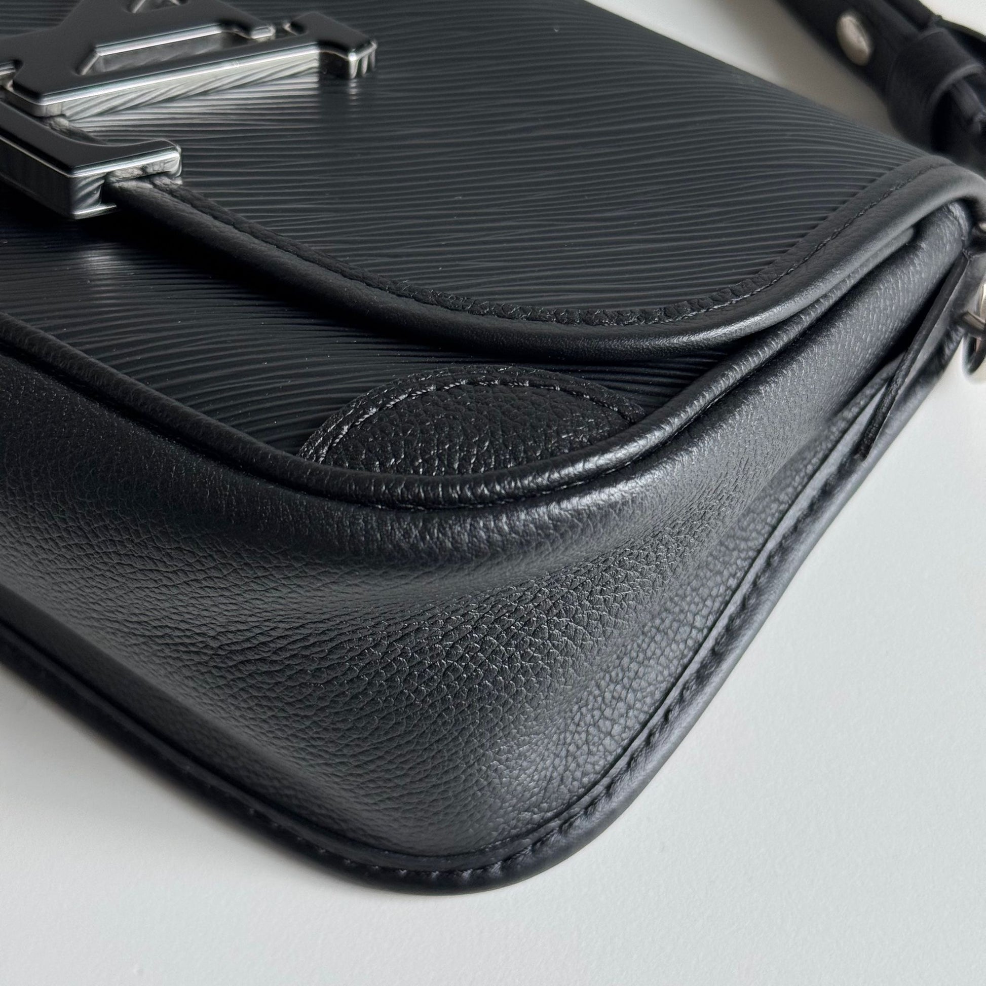 Meravigliosa borsa Louis Vuitton modello Buci in pelle Epi nera con hardware argento e logo smaltato nero. Si indossa a spalla e a tracolla, la tracolla è rimovibile e regolabile.