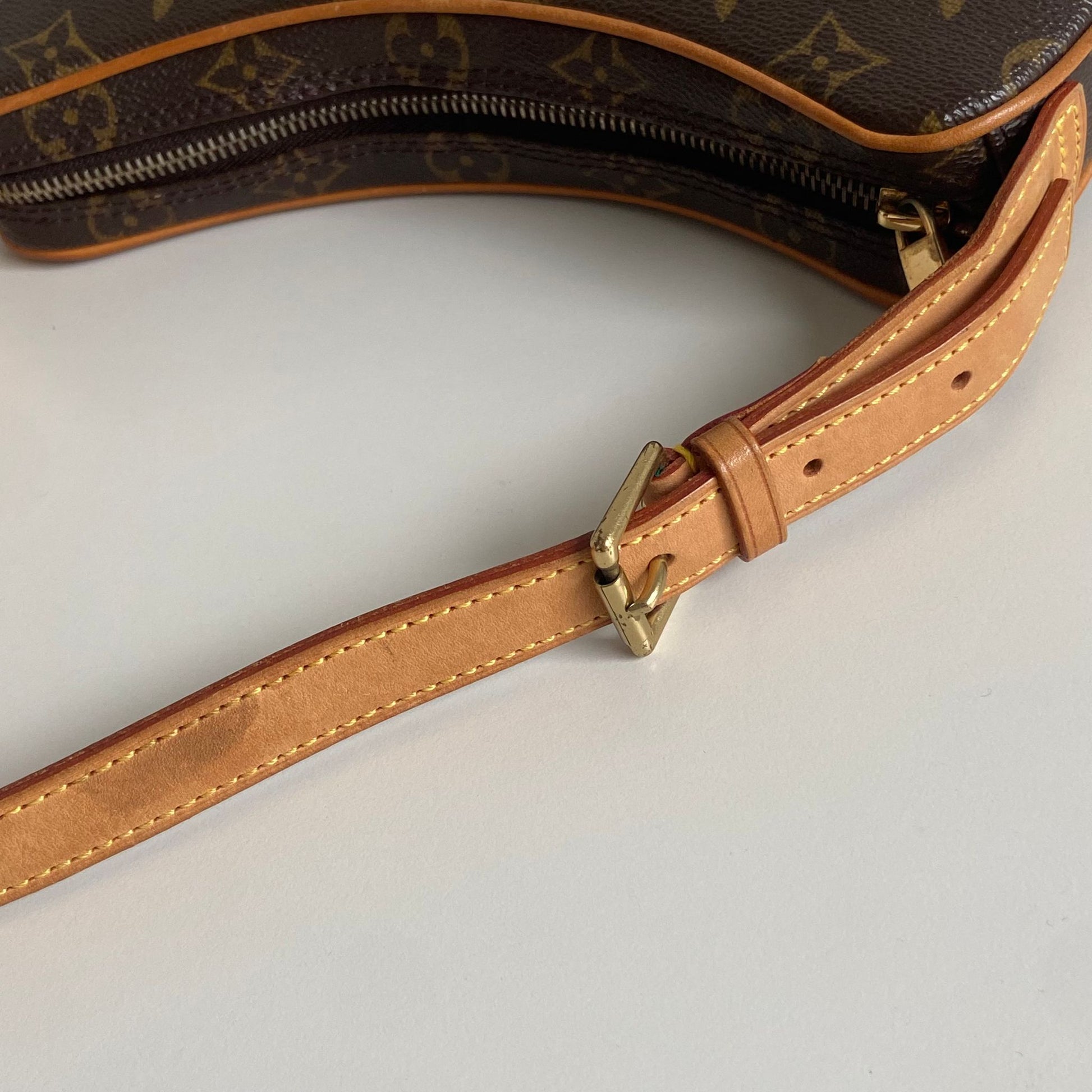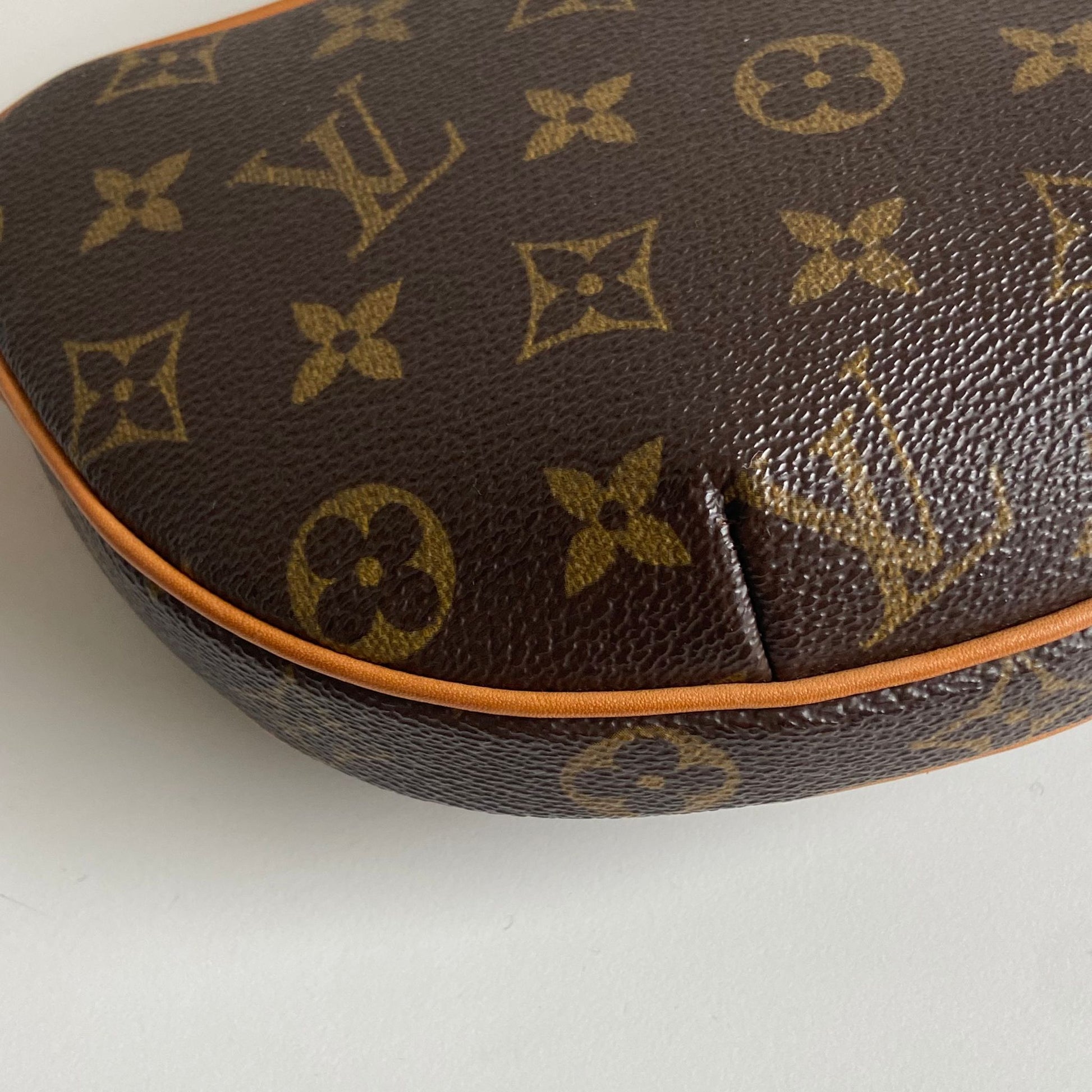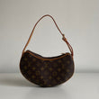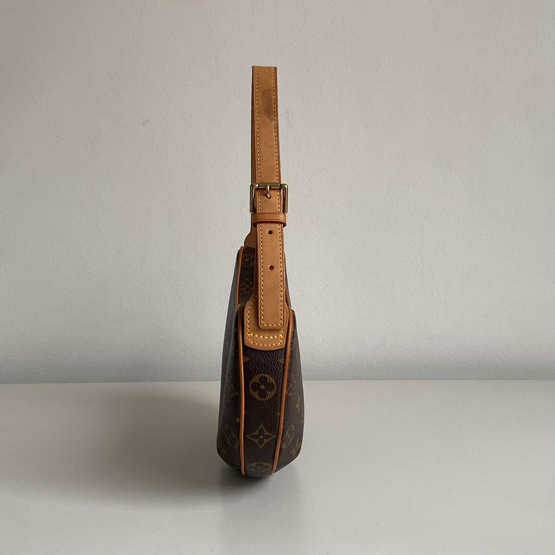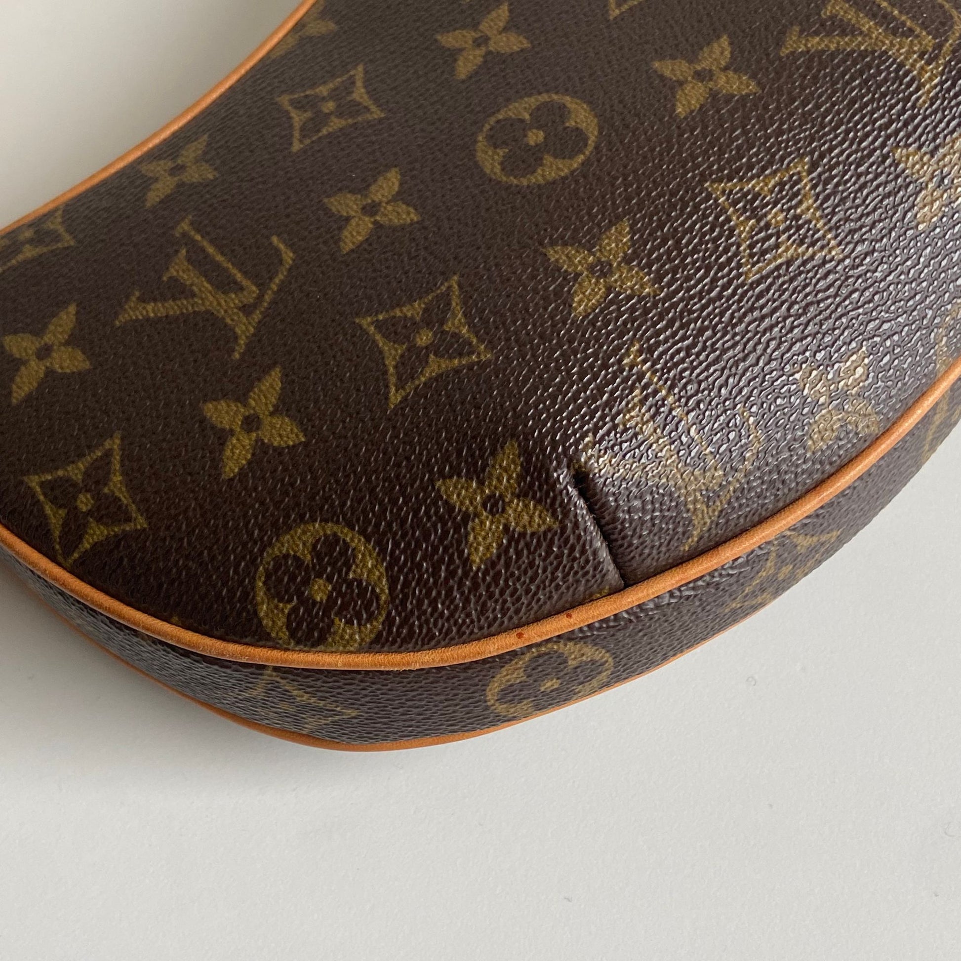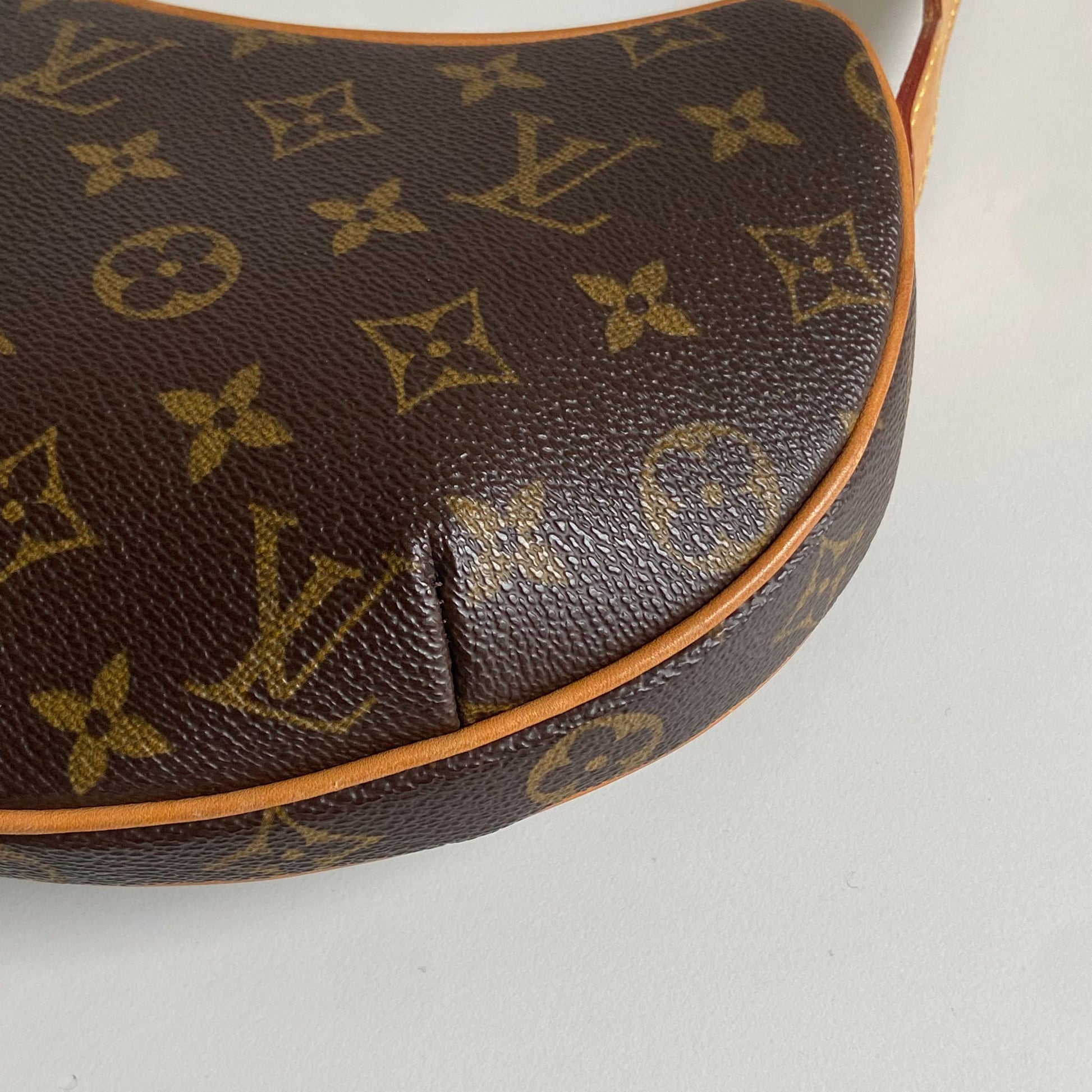 Iconica borsa Louis Vuitton modello Croissant PM in tela monogram LV, vacchetta e hardware oro. Si indossa a spalla ed è regolabile.
