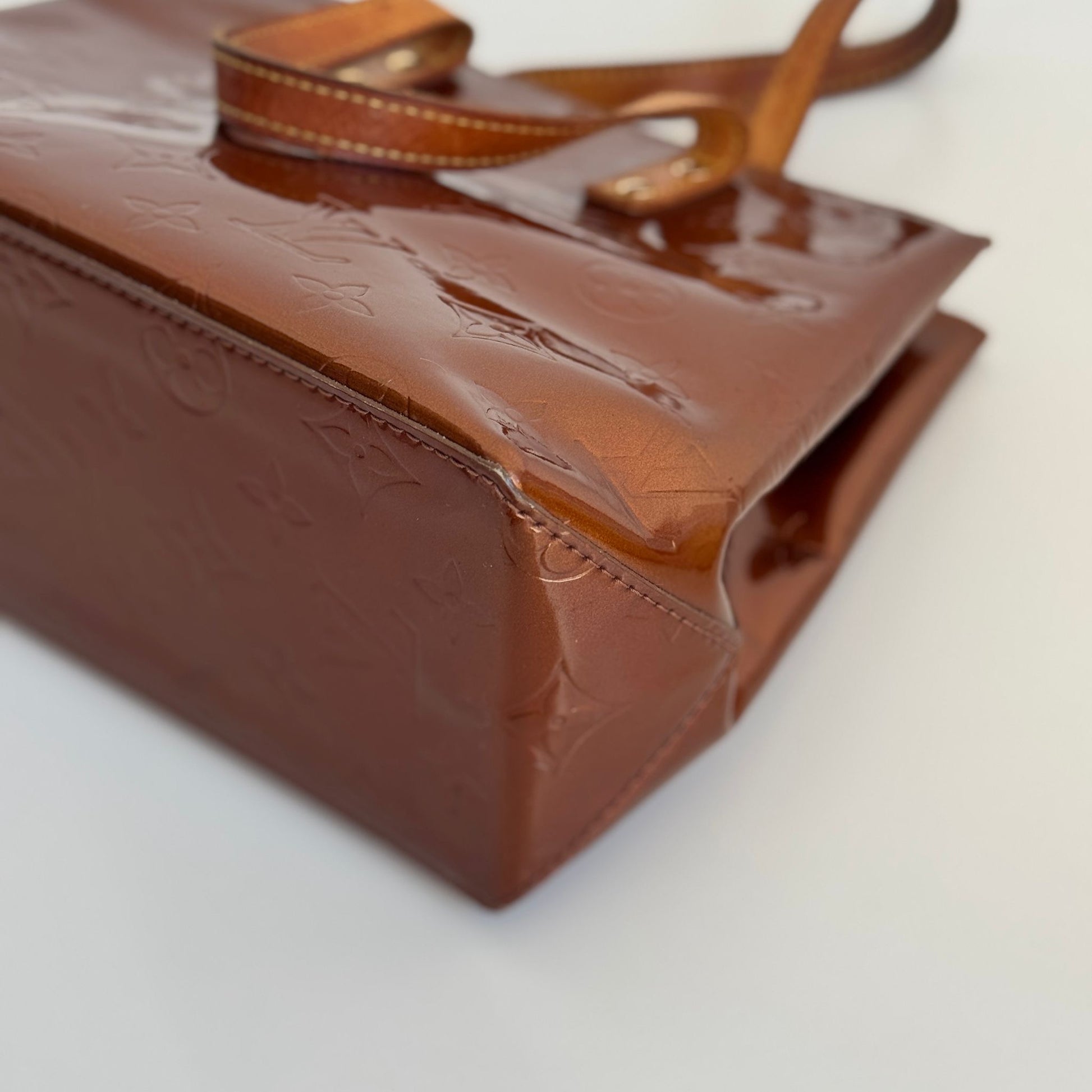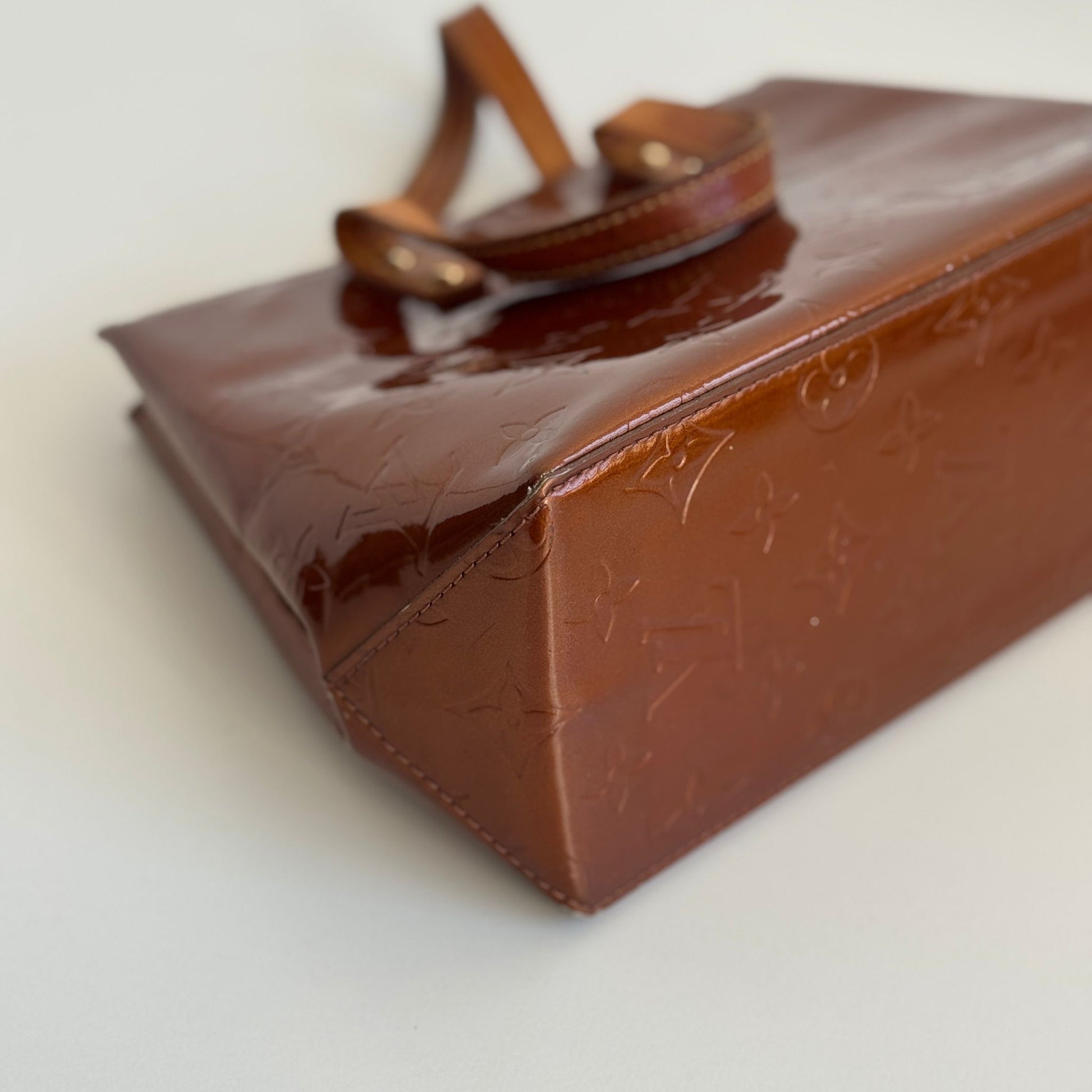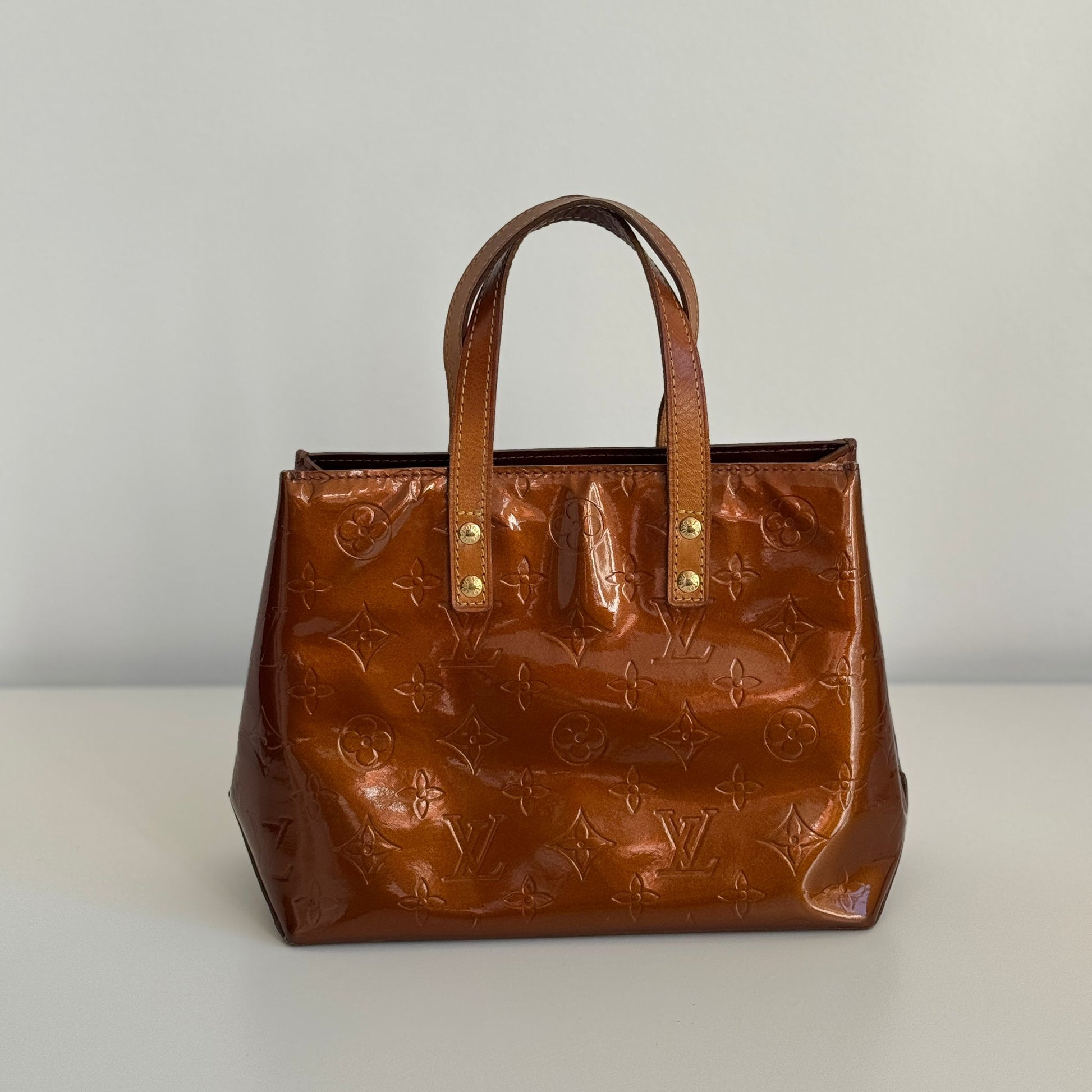 Bellissima borsa Louis Vuitton modello Reade PM del 2001 in vinile rame metallizzato, dettagli in vacchetta e hardware oro. Si indossa a mano.