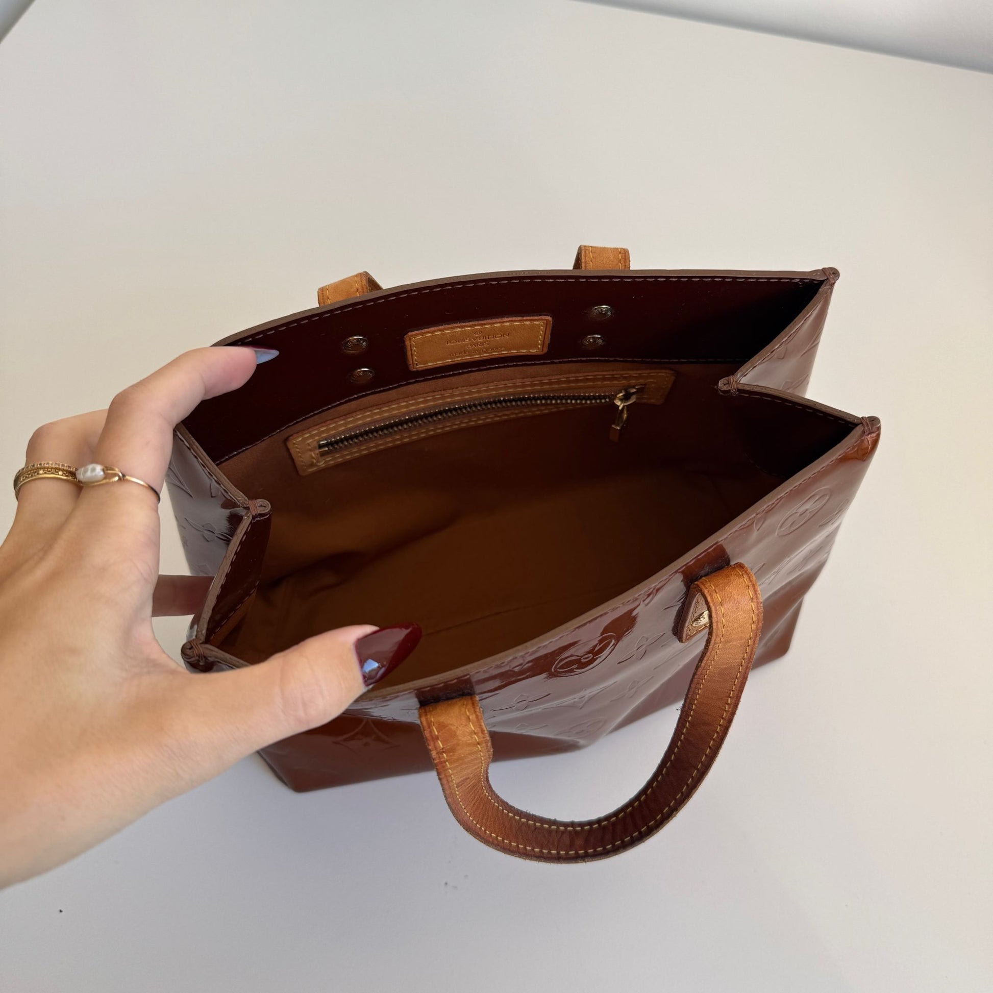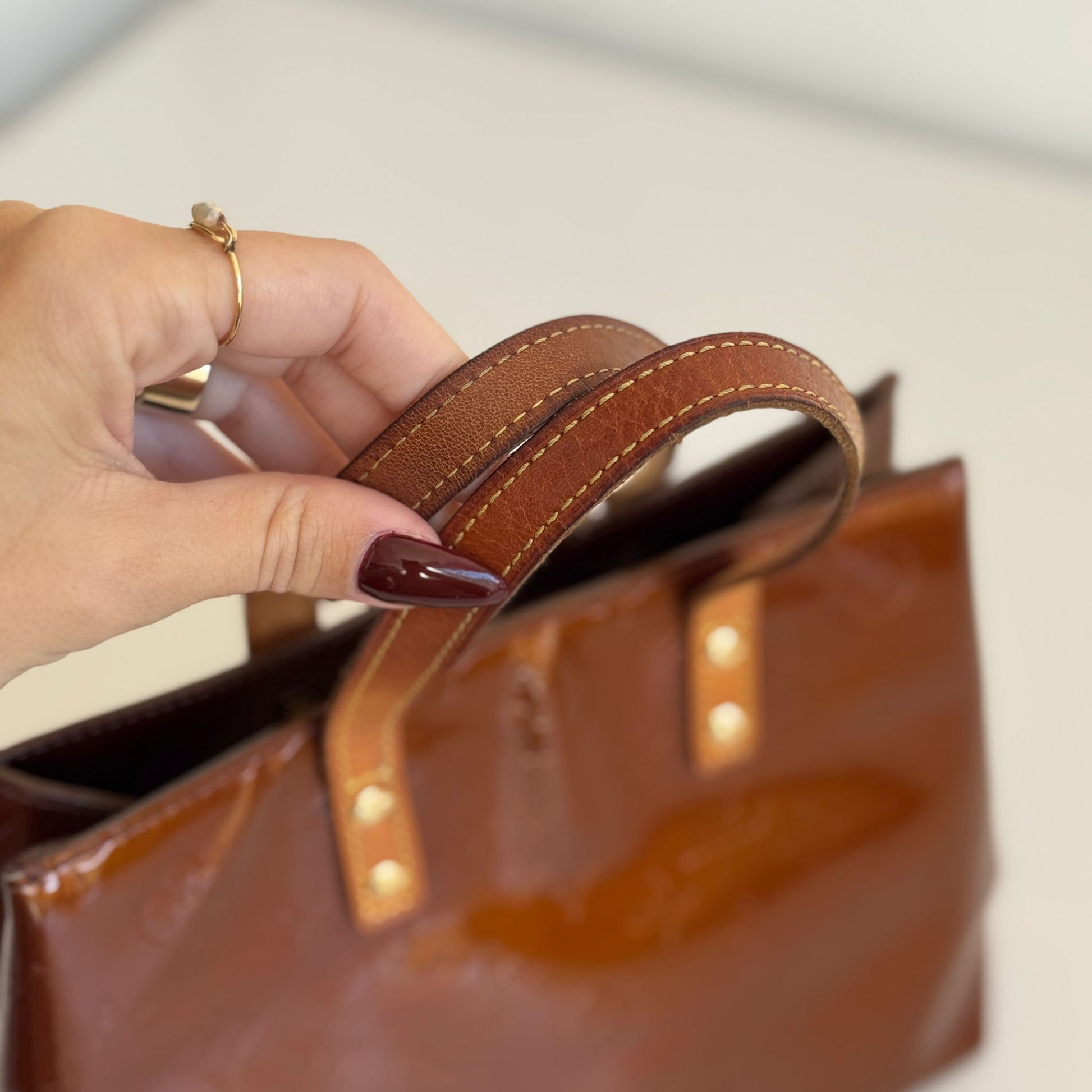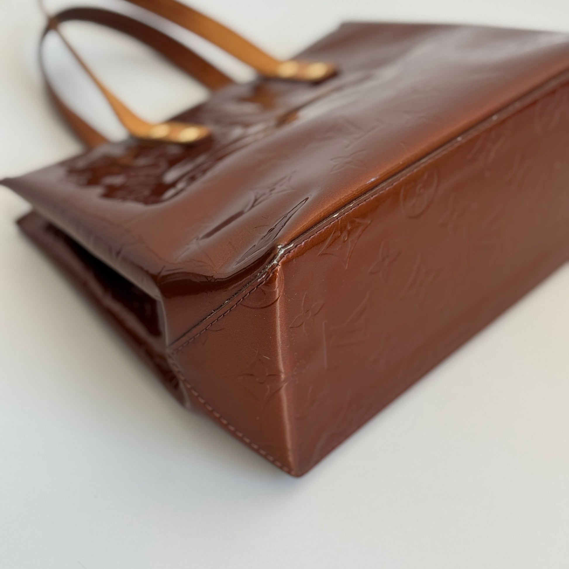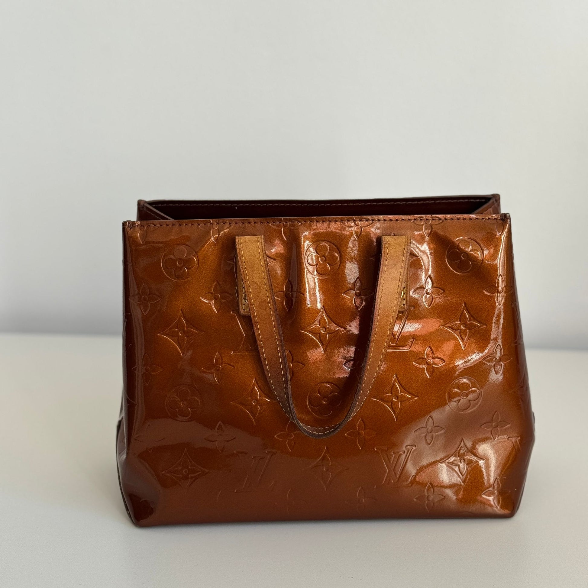 Bellissima borsa Louis Vuitton modello Reade PM del 2001 in vinile rame metallizzato, dettagli in vacchetta e hardware oro. Si indossa a mano.