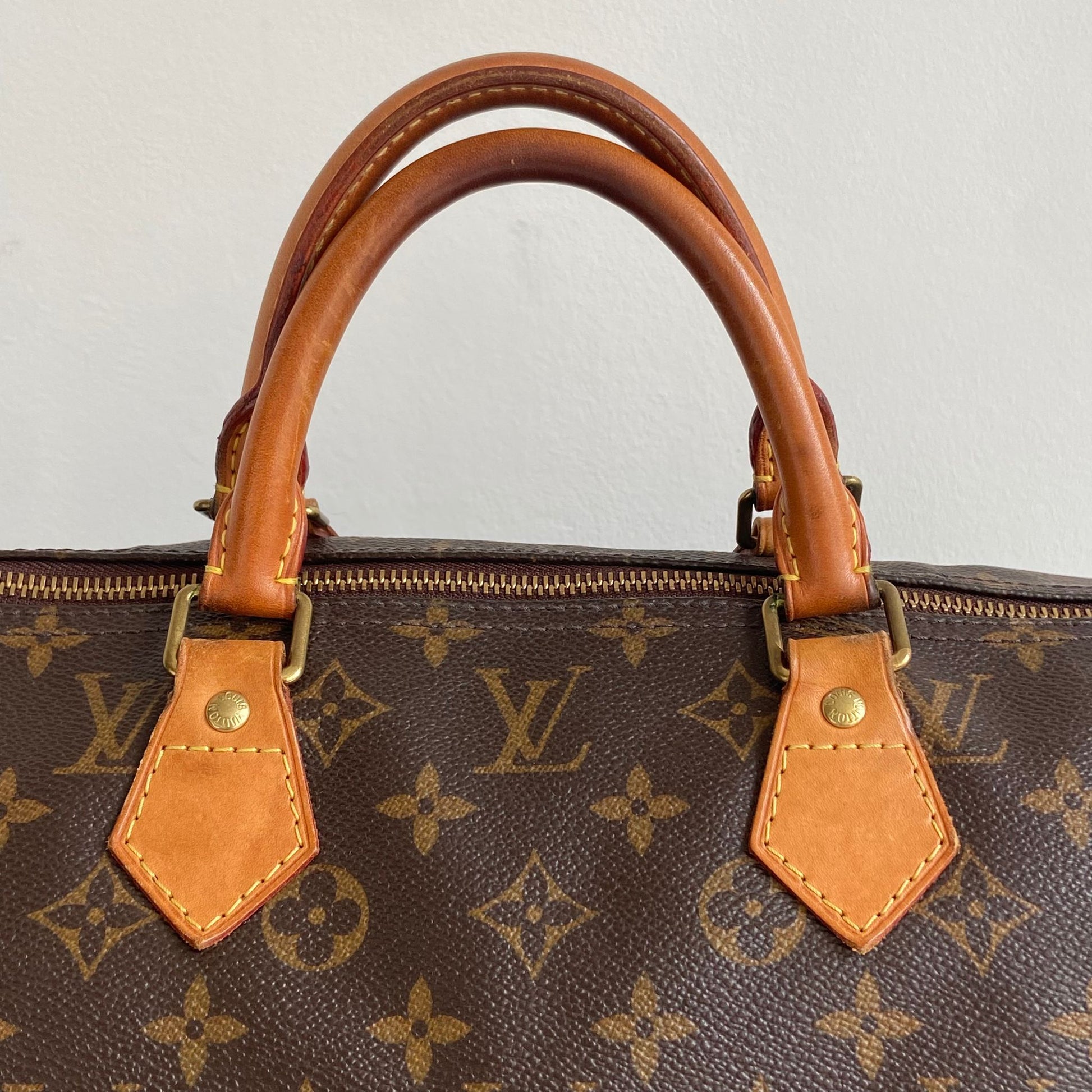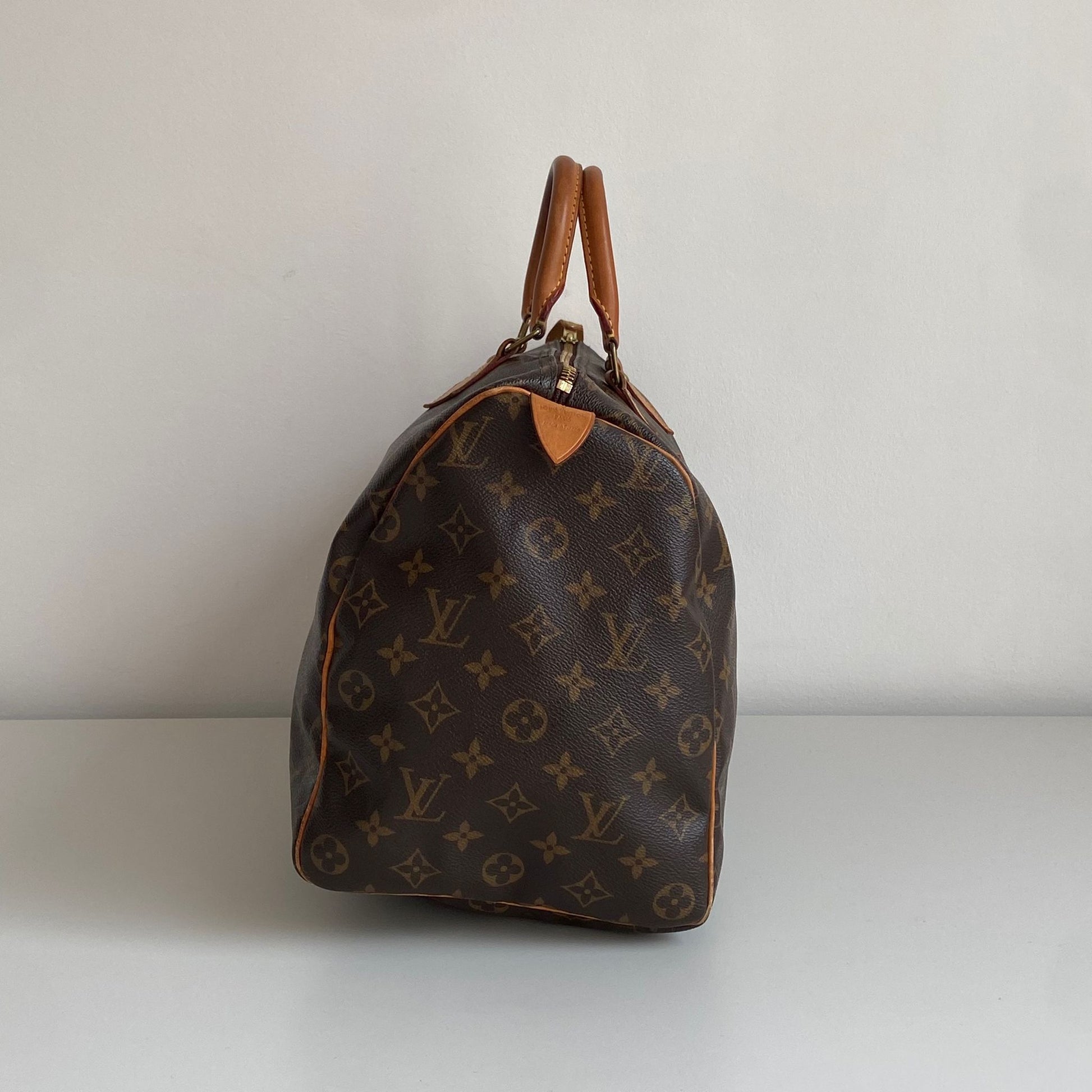 Bellissima borsa Louis Vuitton modello Speedy 40 in tela monogram LV, dettagli in vacchetta e hardware oro. Si indossa a mano e non prevede tracolla.