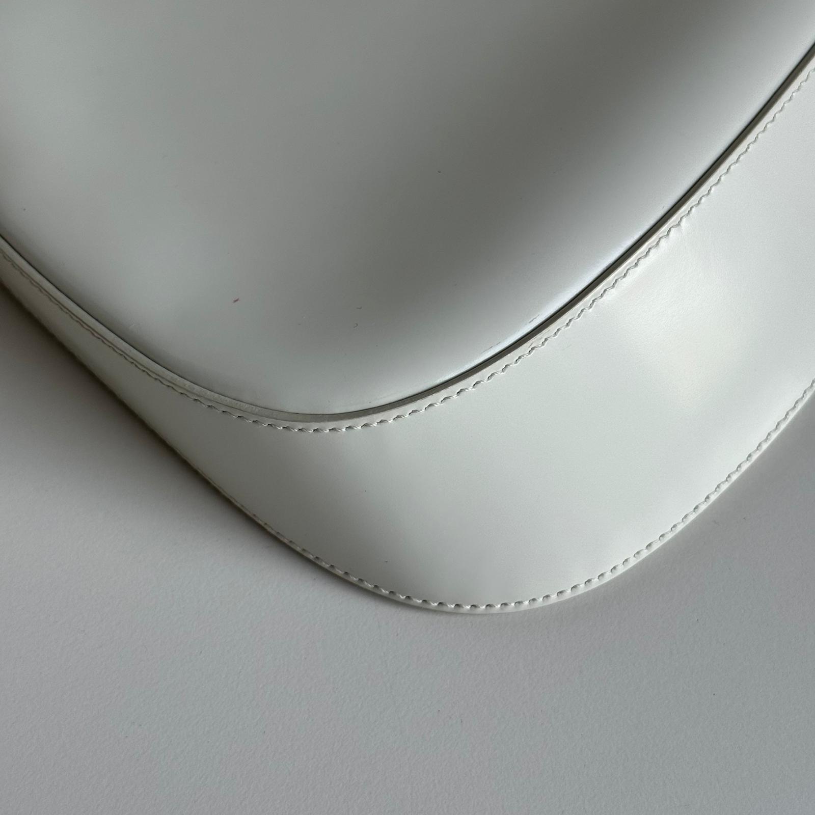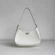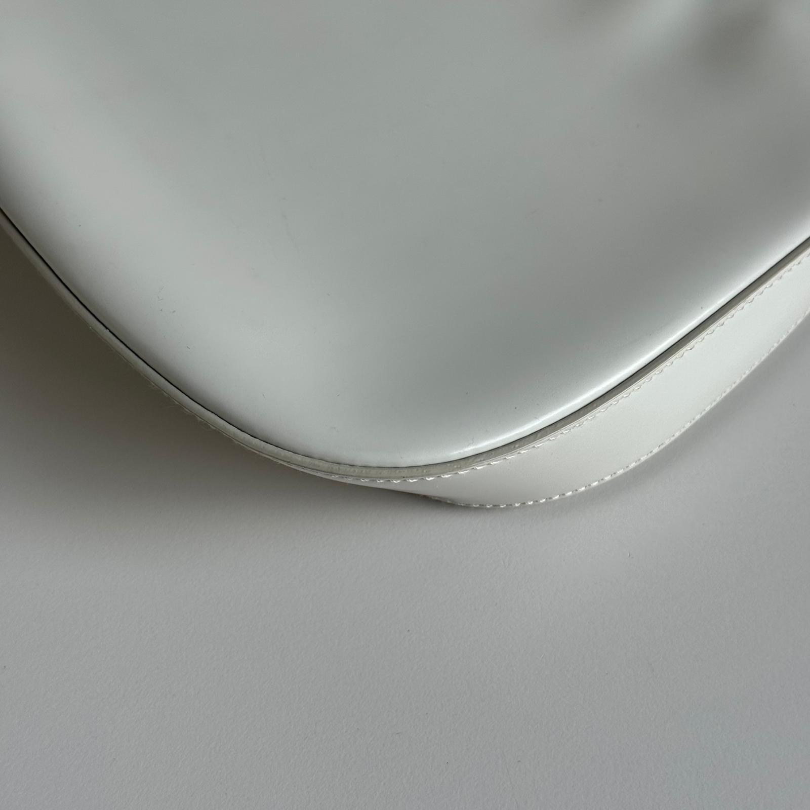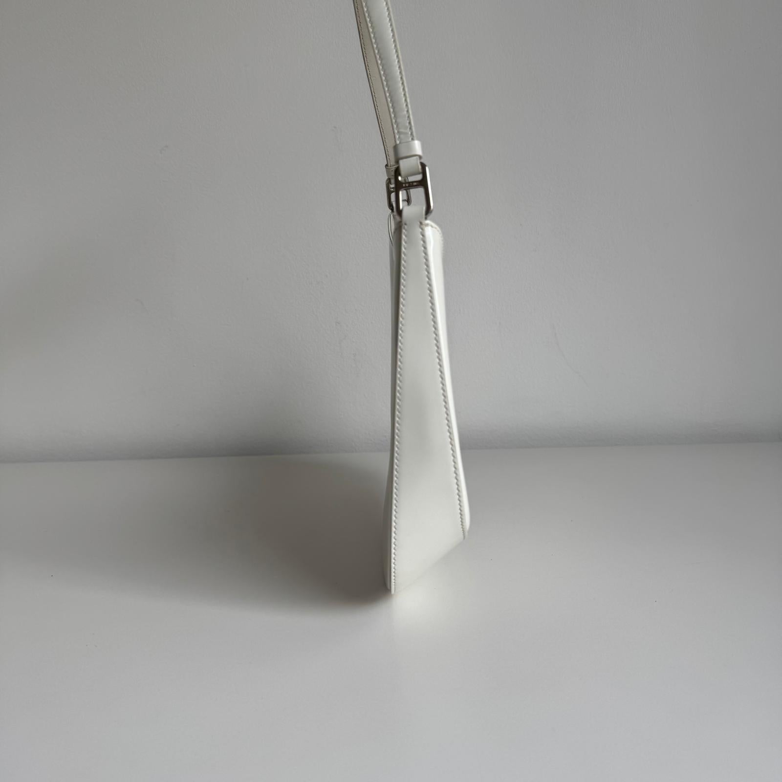 Meravigliosa borsa Prada modello Cleo in pelle bianca, spazzolata e hardware argento. Si indossa a spalla.