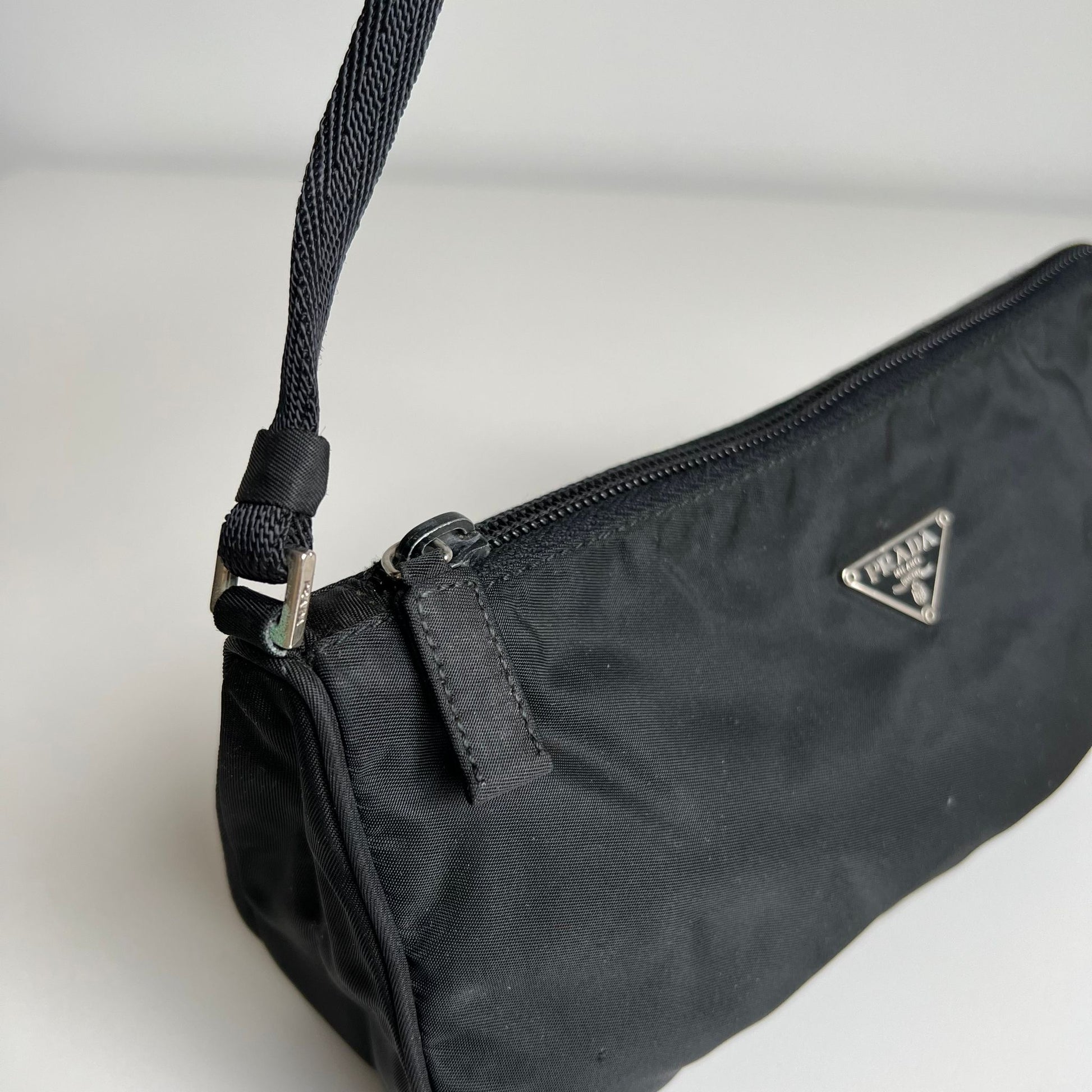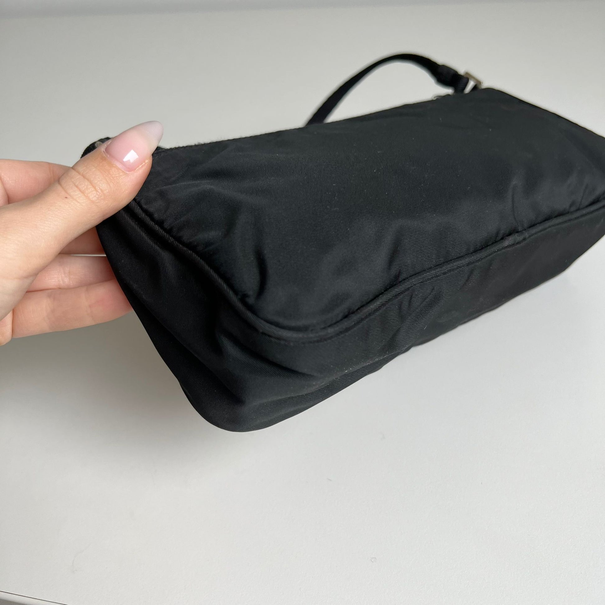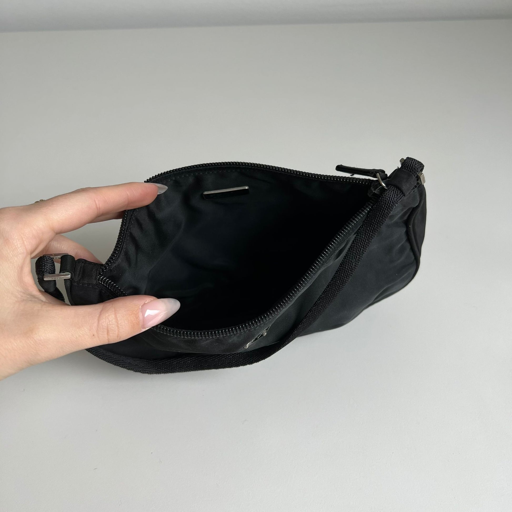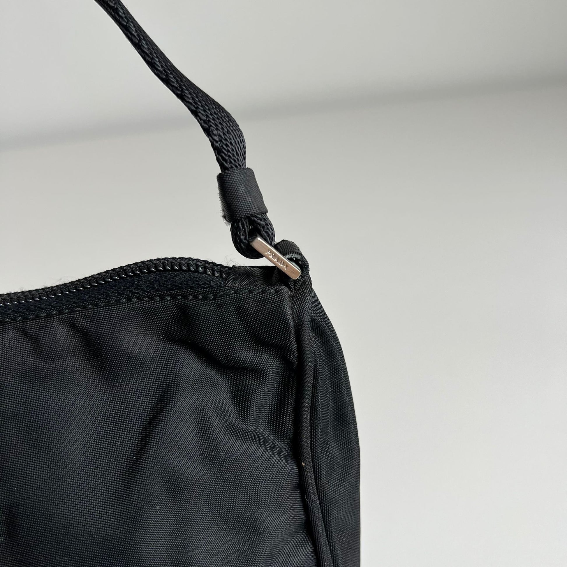 Bellissima minibag Prada modello Nylon in Nylon nero con hardware argento. Si indossa a mano o a spalla.