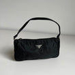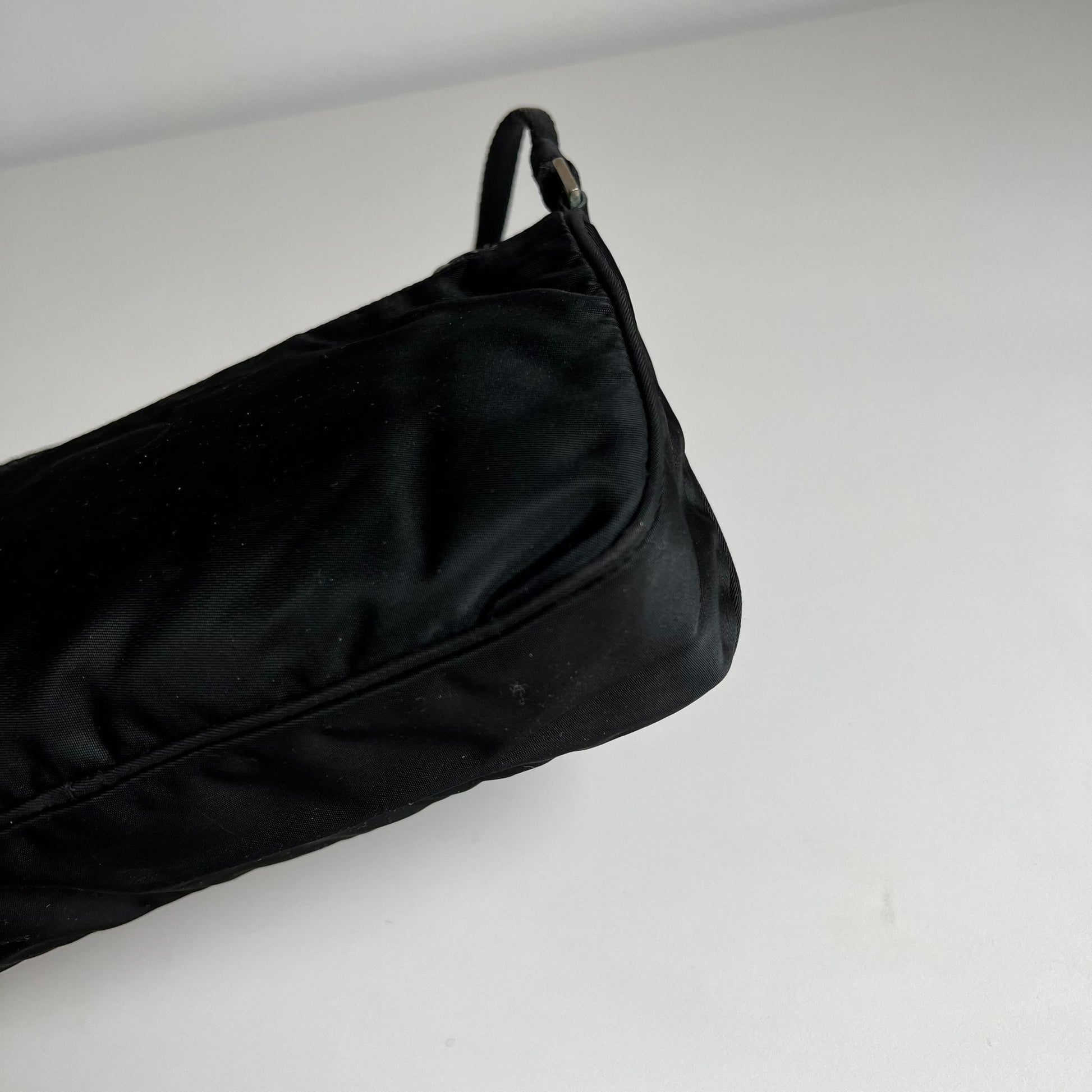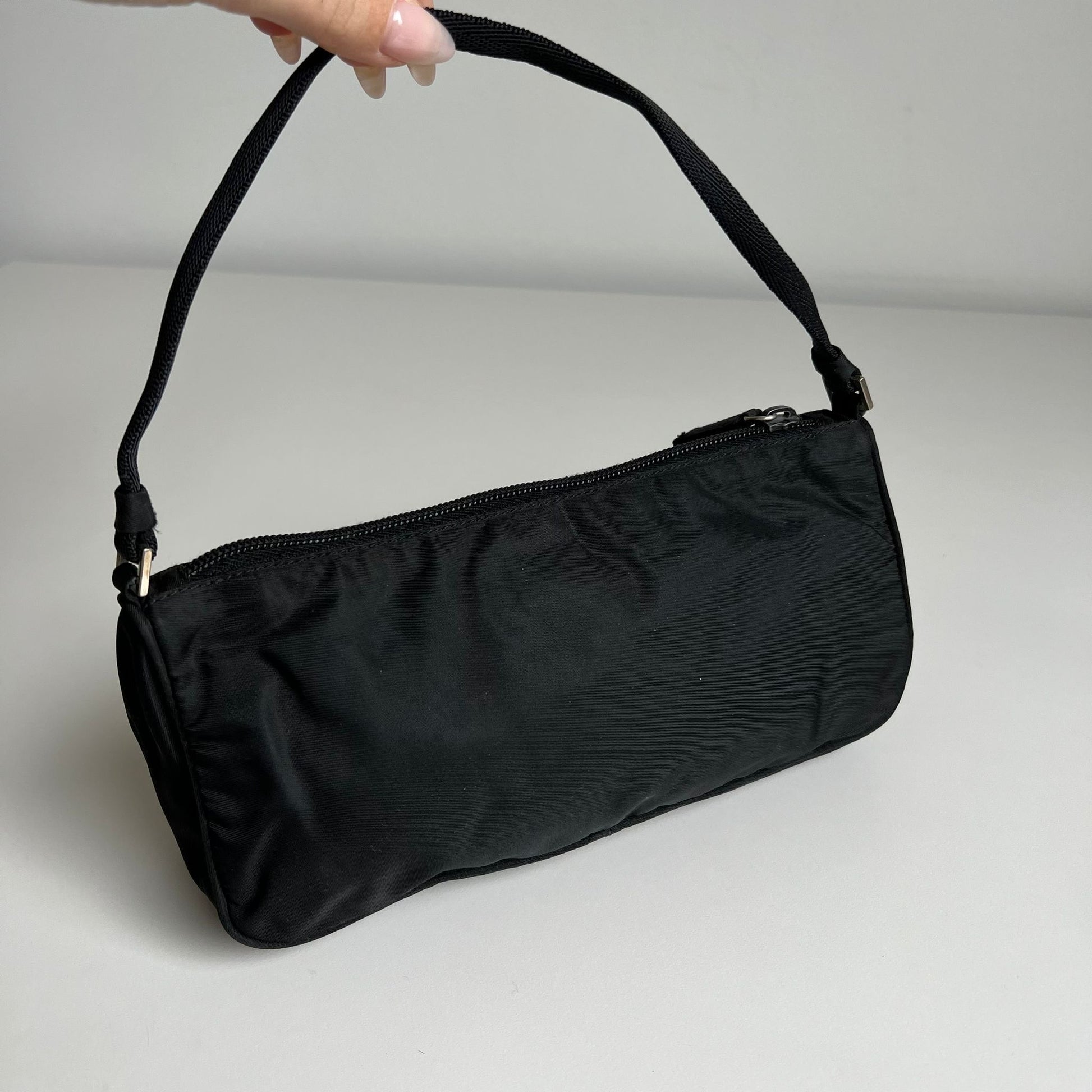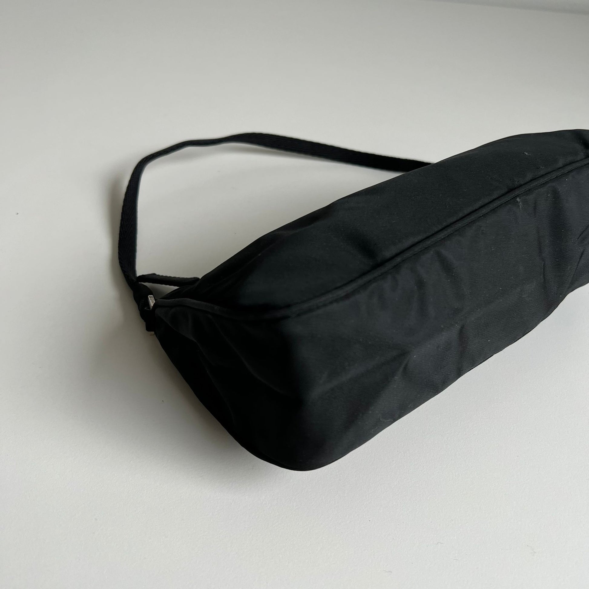 Bellissima minibag Prada modello Nylon in Nylon nero con hardware argento. Si indossa a mano o a spalla.