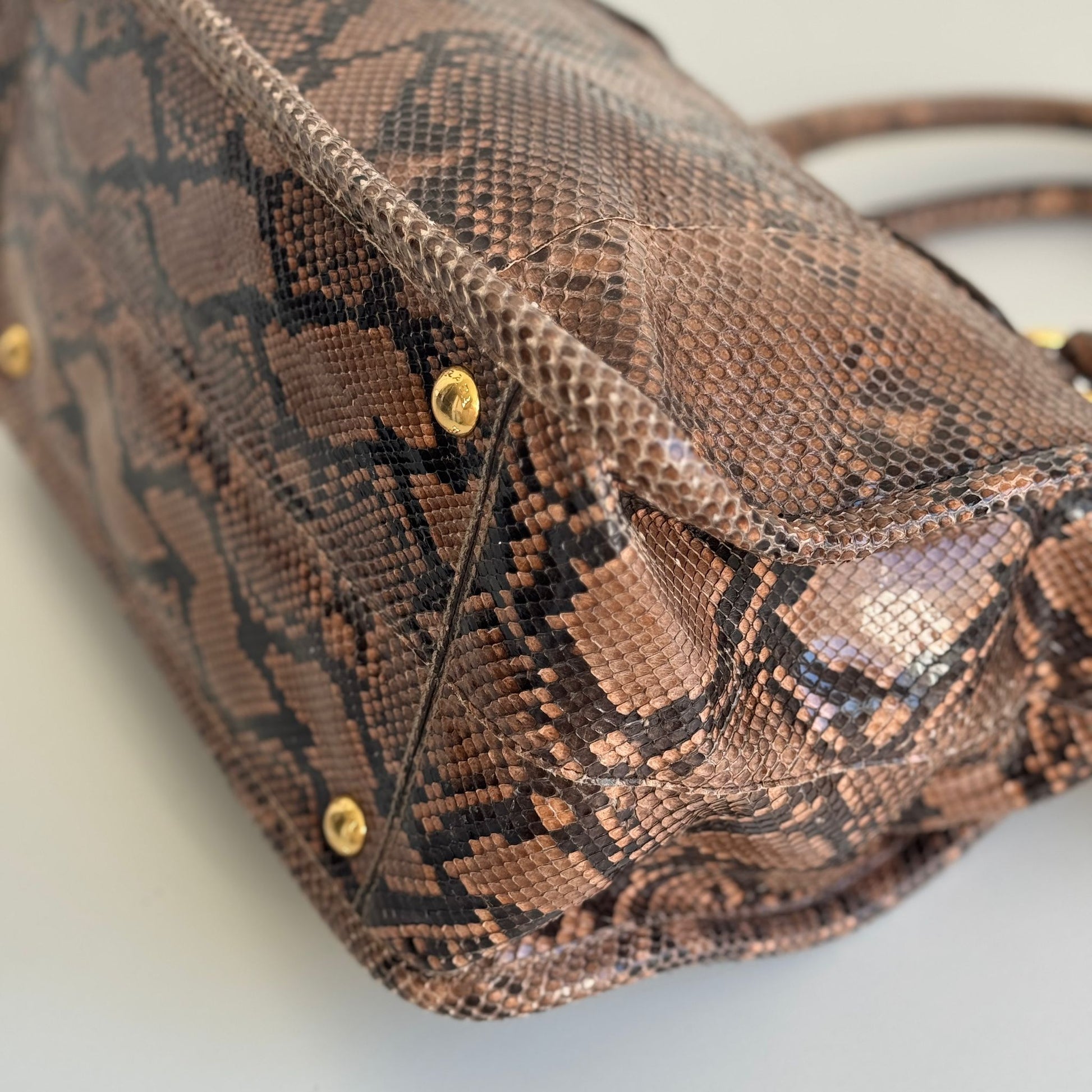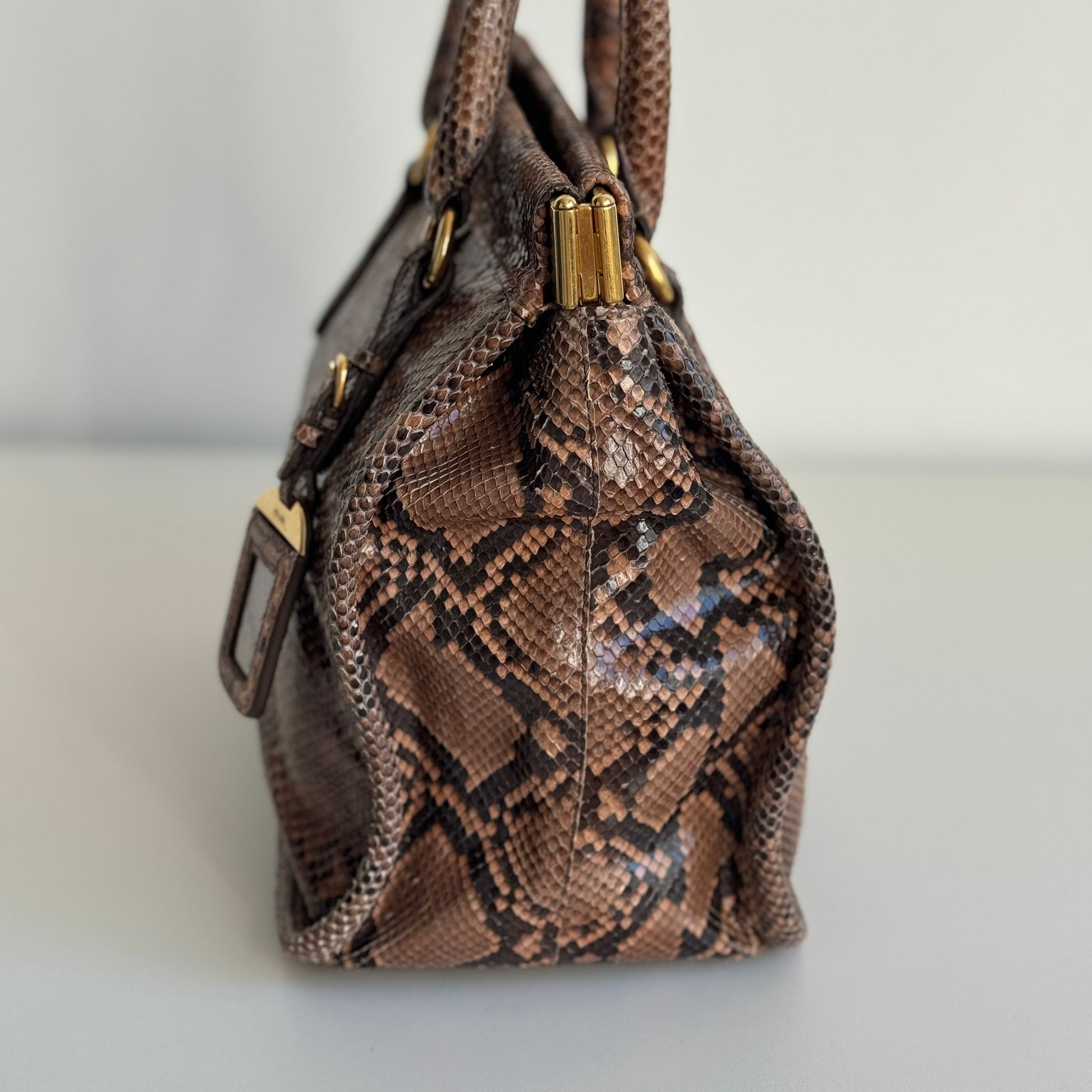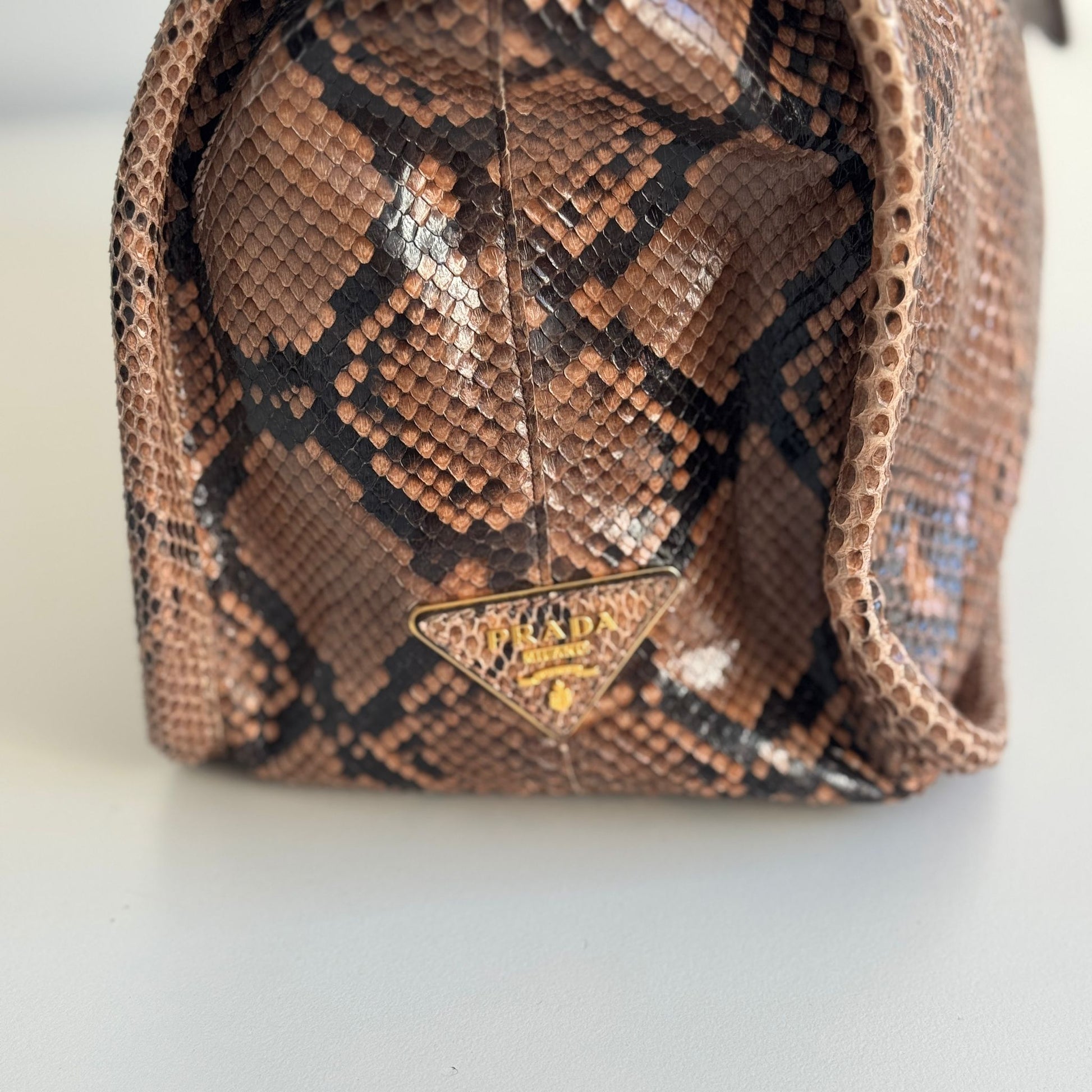 Bellissima borsa Prada modello Shopper della F/W 2011 in pitone marrone-rosa e hardware oro. Si indossa a mano o a spalla.