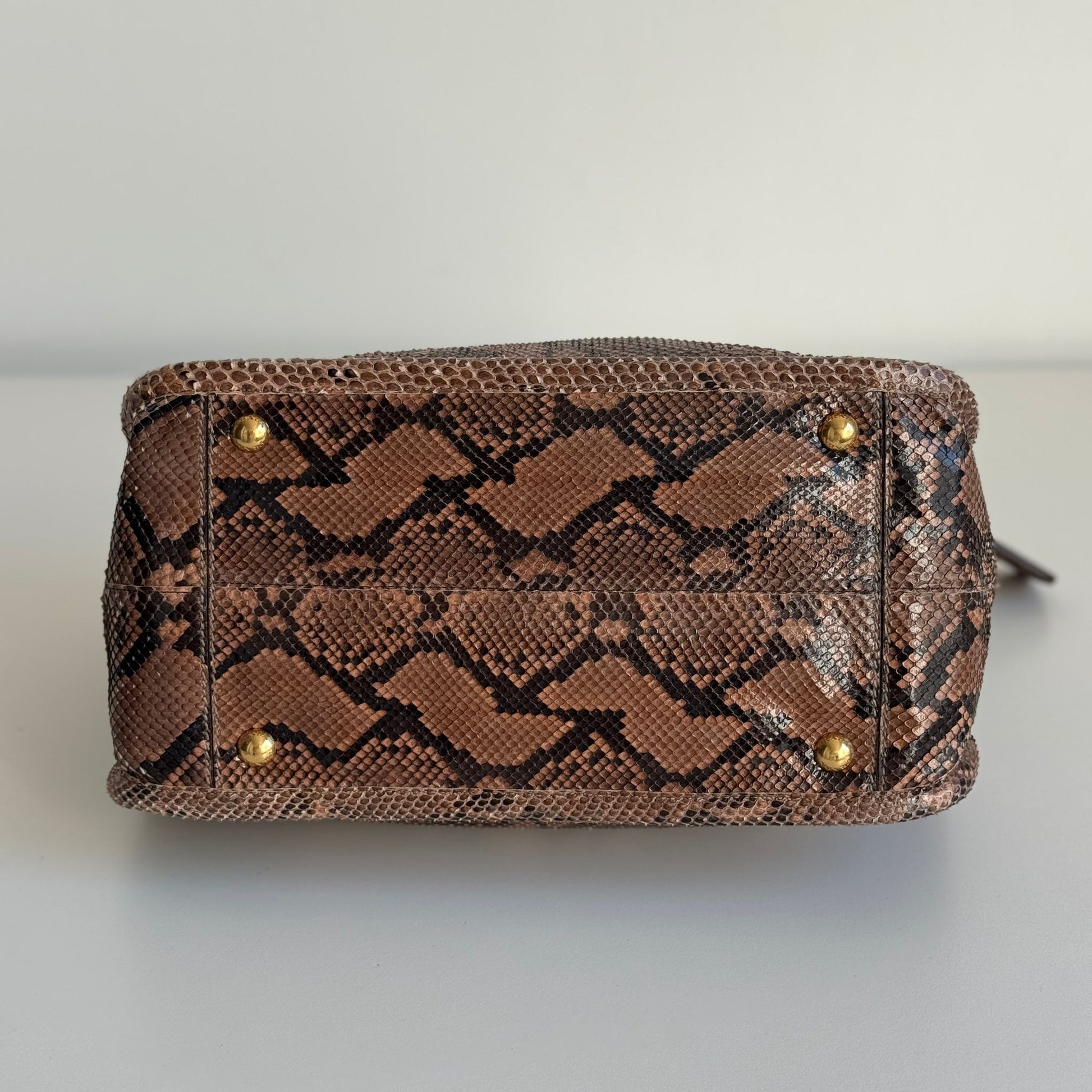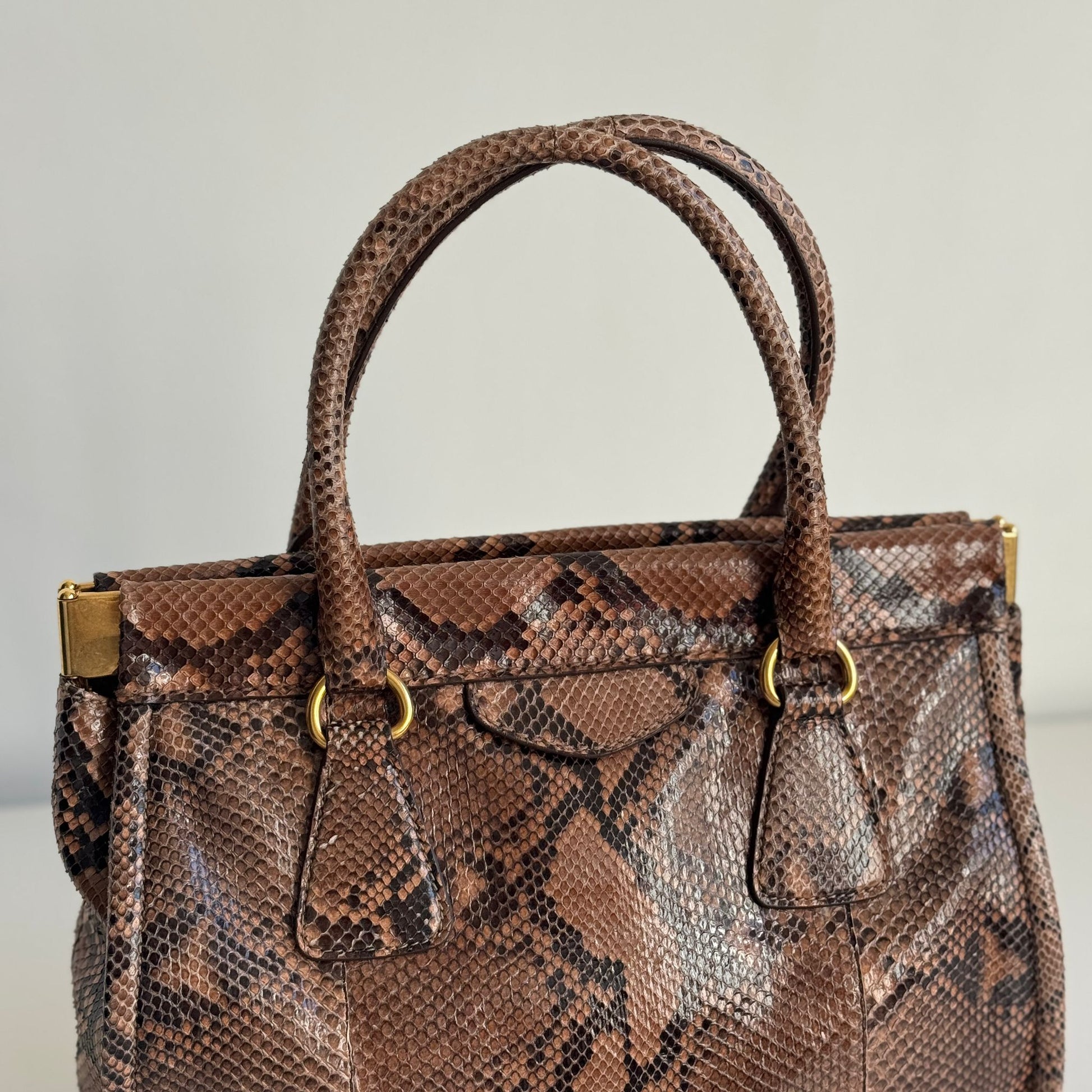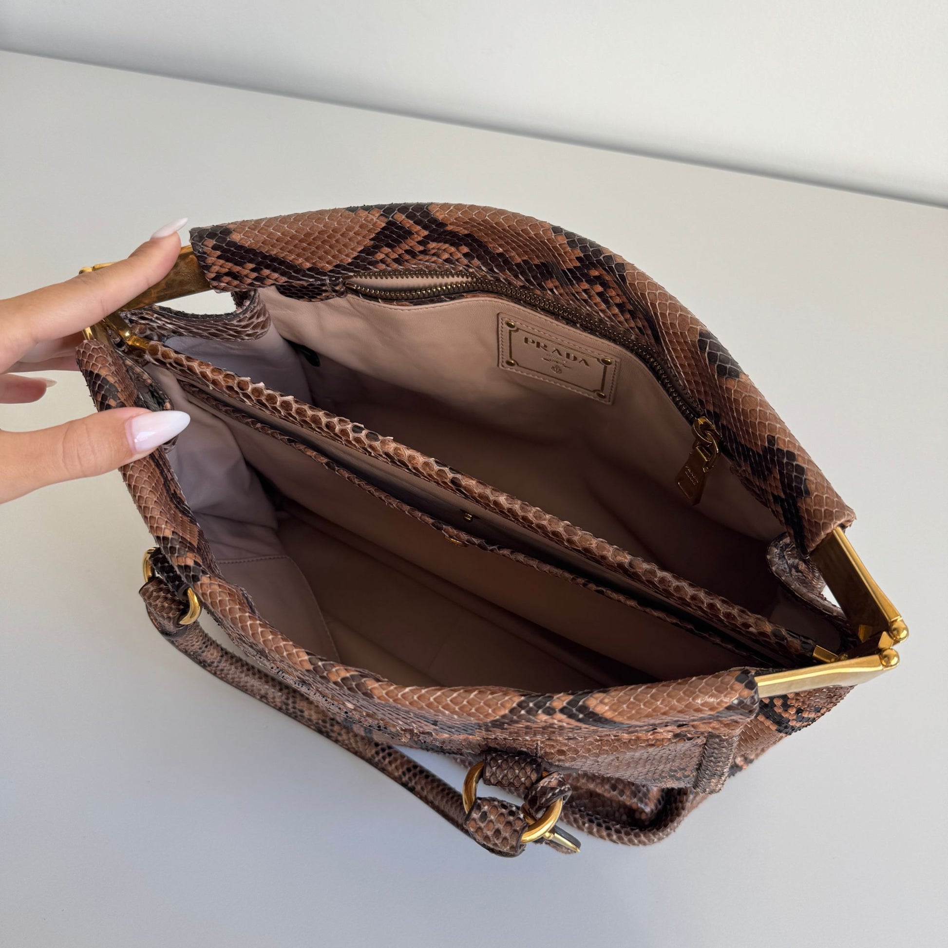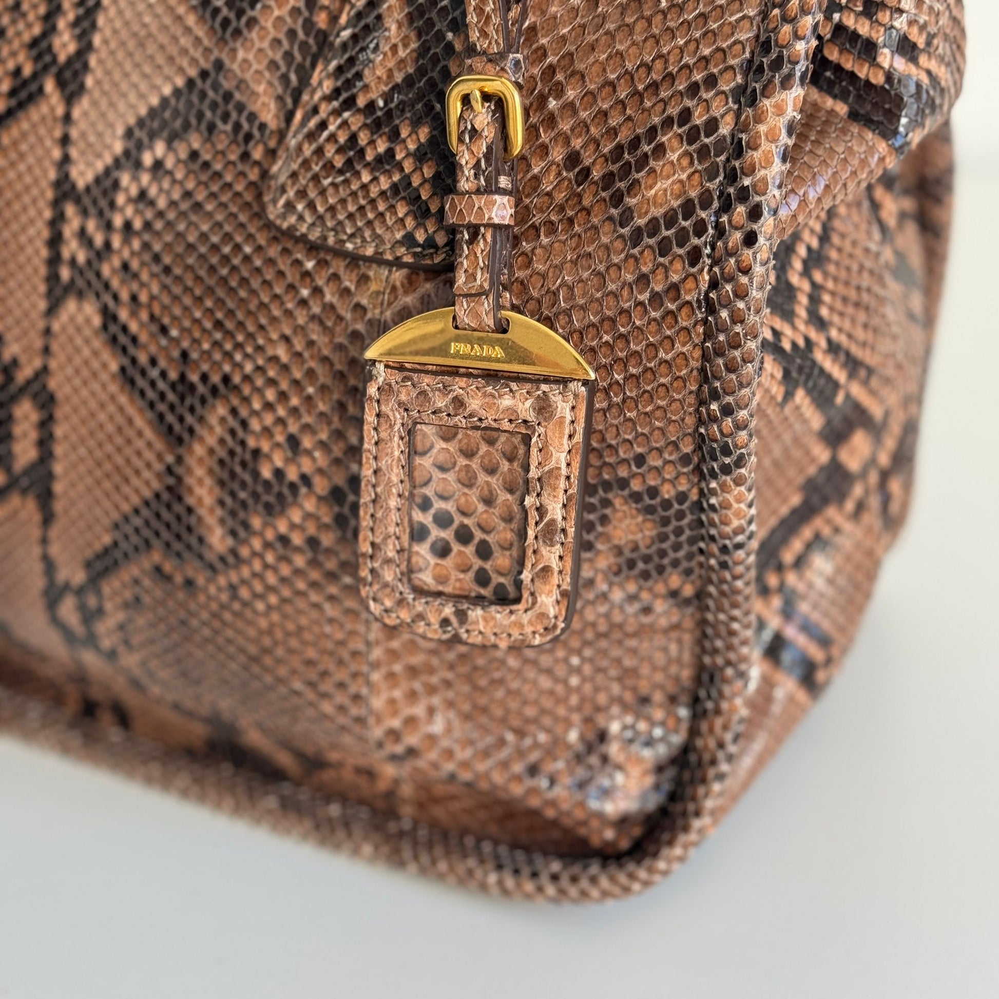 Bellissima borsa Prada modello Shopper della F/W 2011 in pitone marrone-rosa e hardware oro. Si indossa a mano o a spalla.