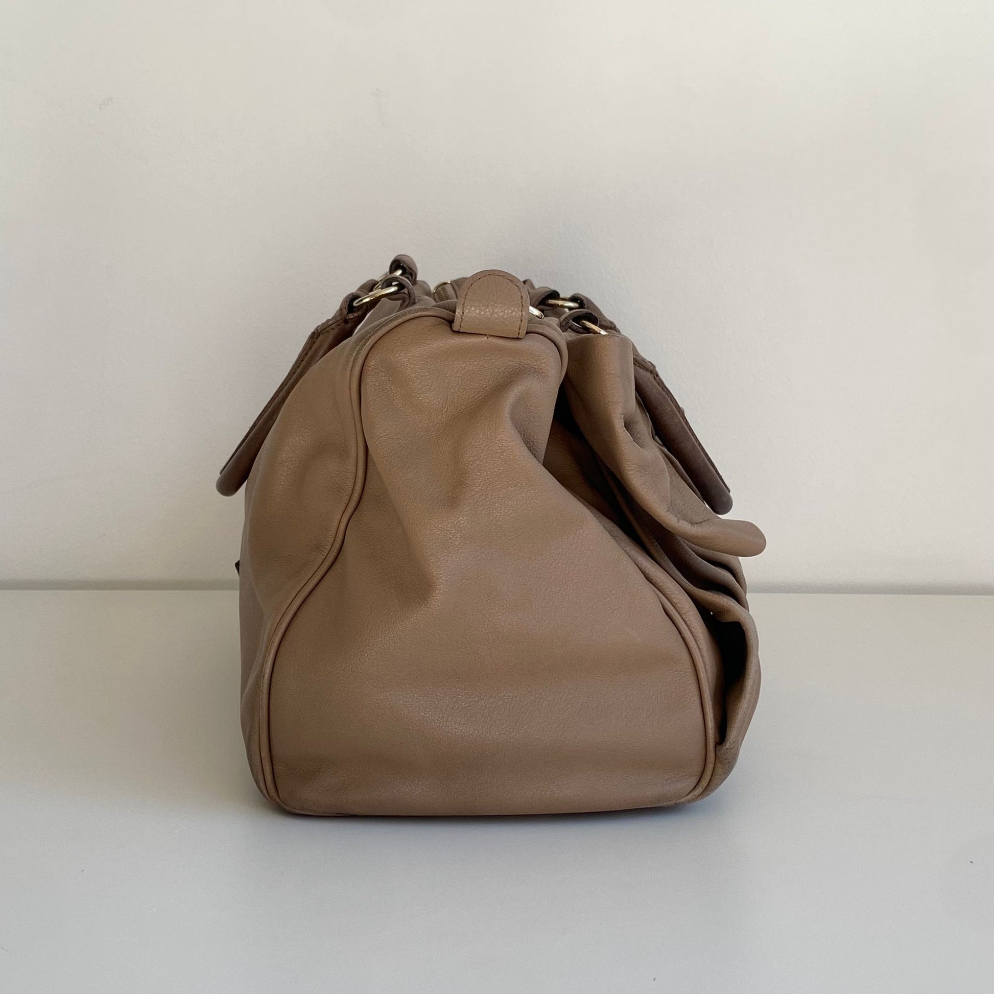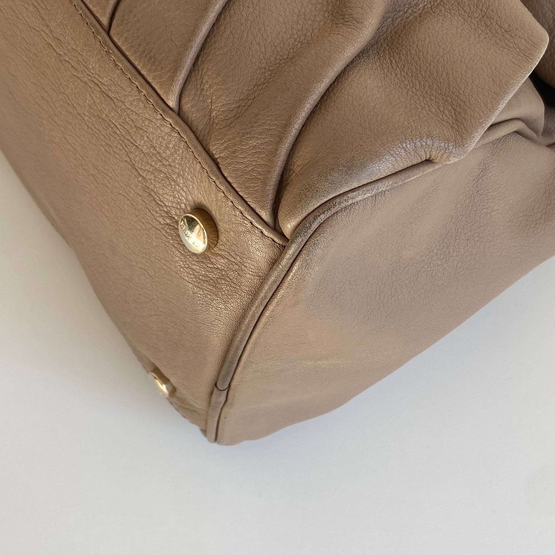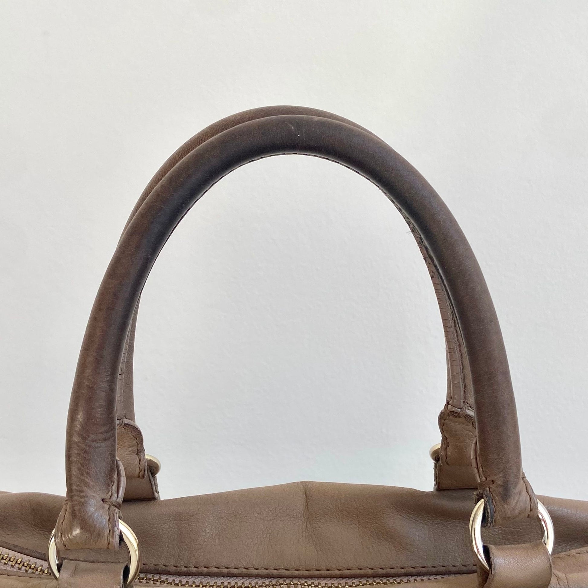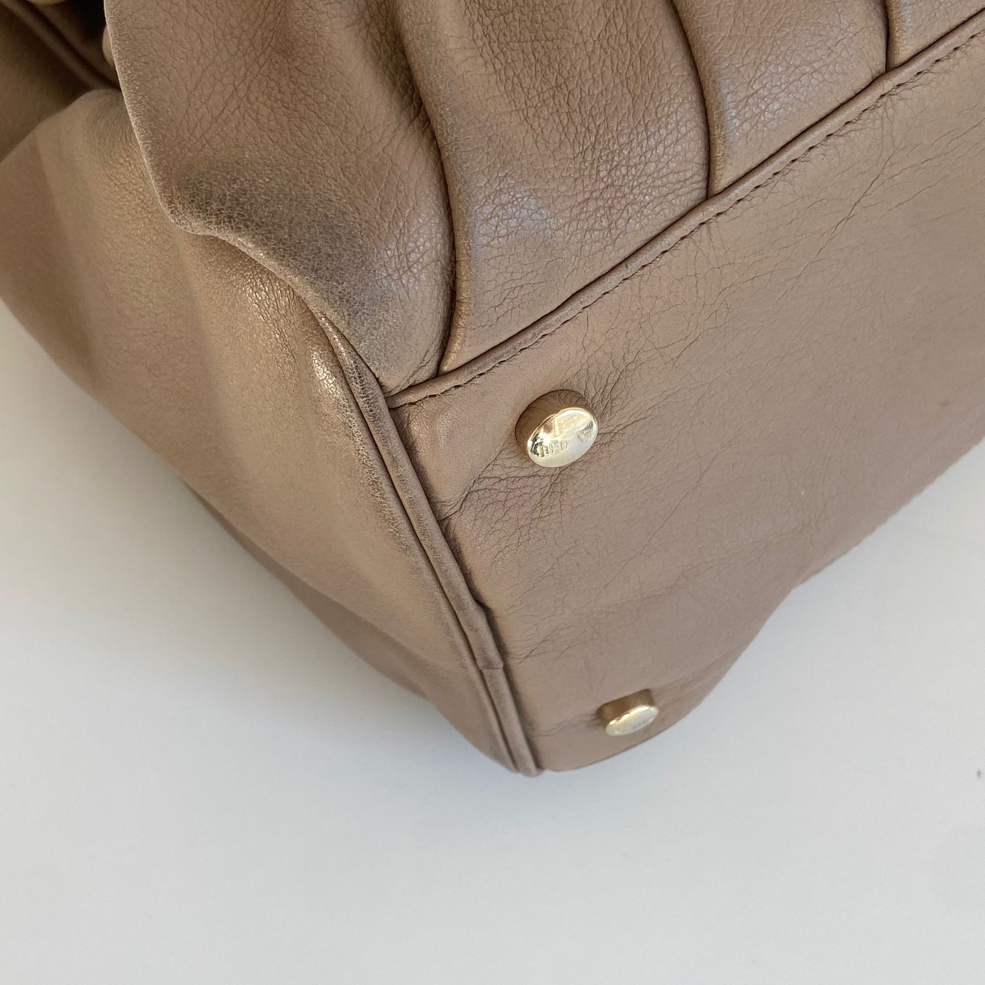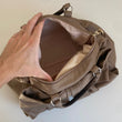 Borsa usata in buone condizioni, presenta alcuni segni di utilizzo come mostrato in foto, sopratutto sui manici. La fodera ha una macchia.
