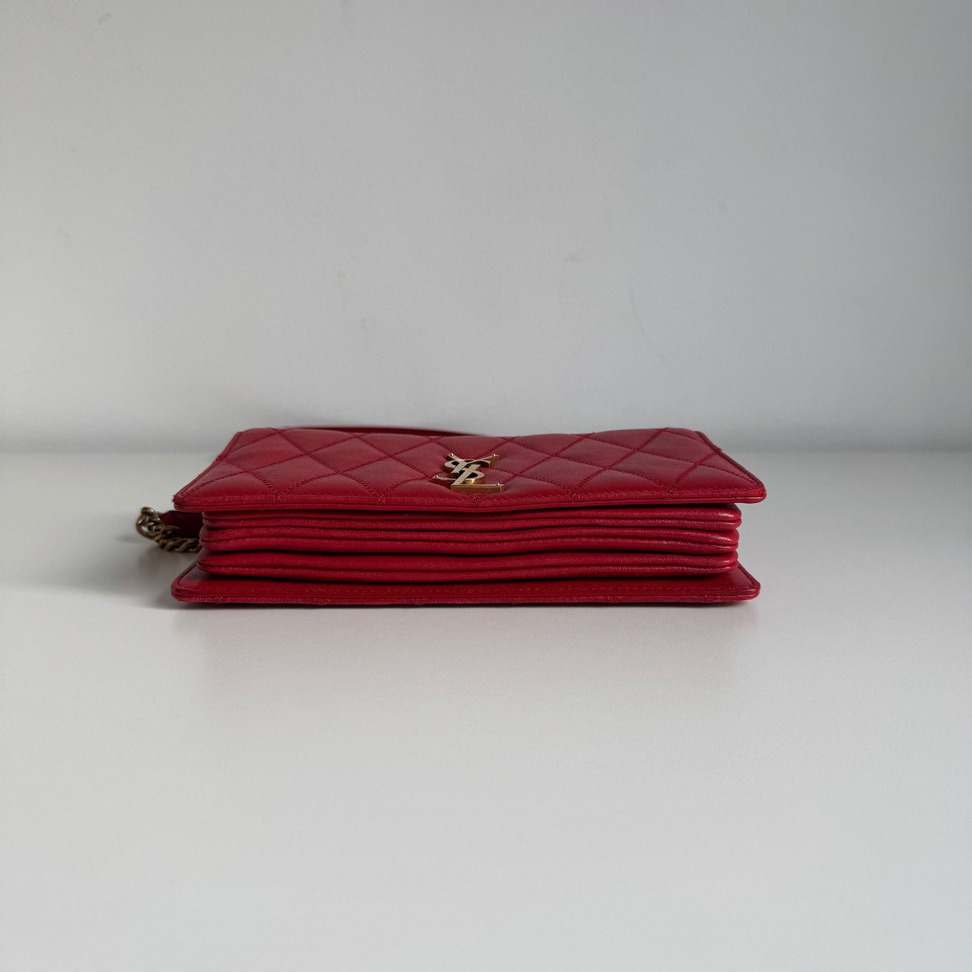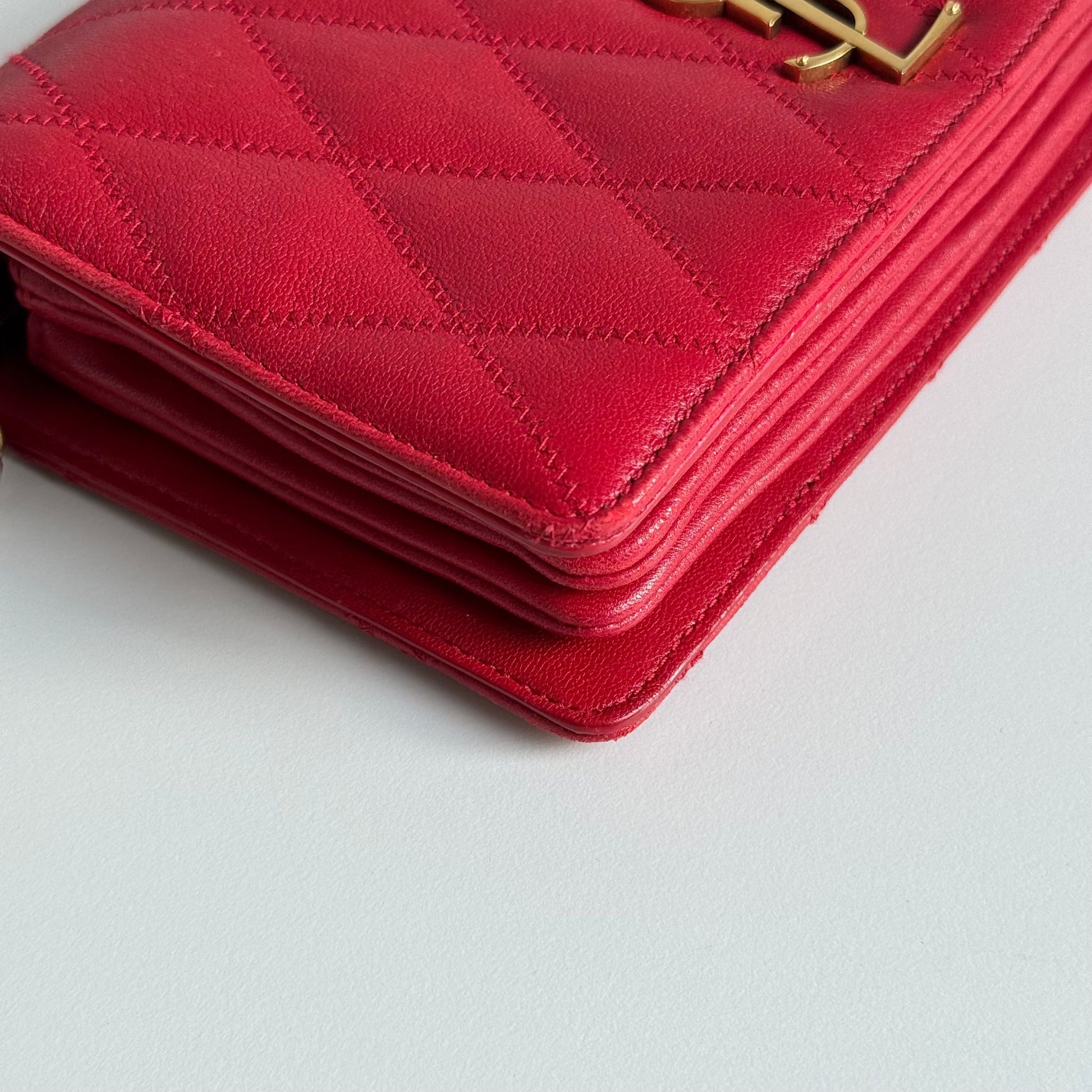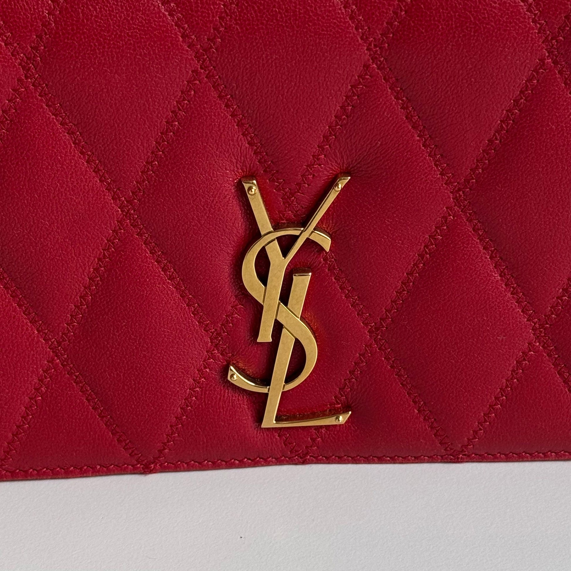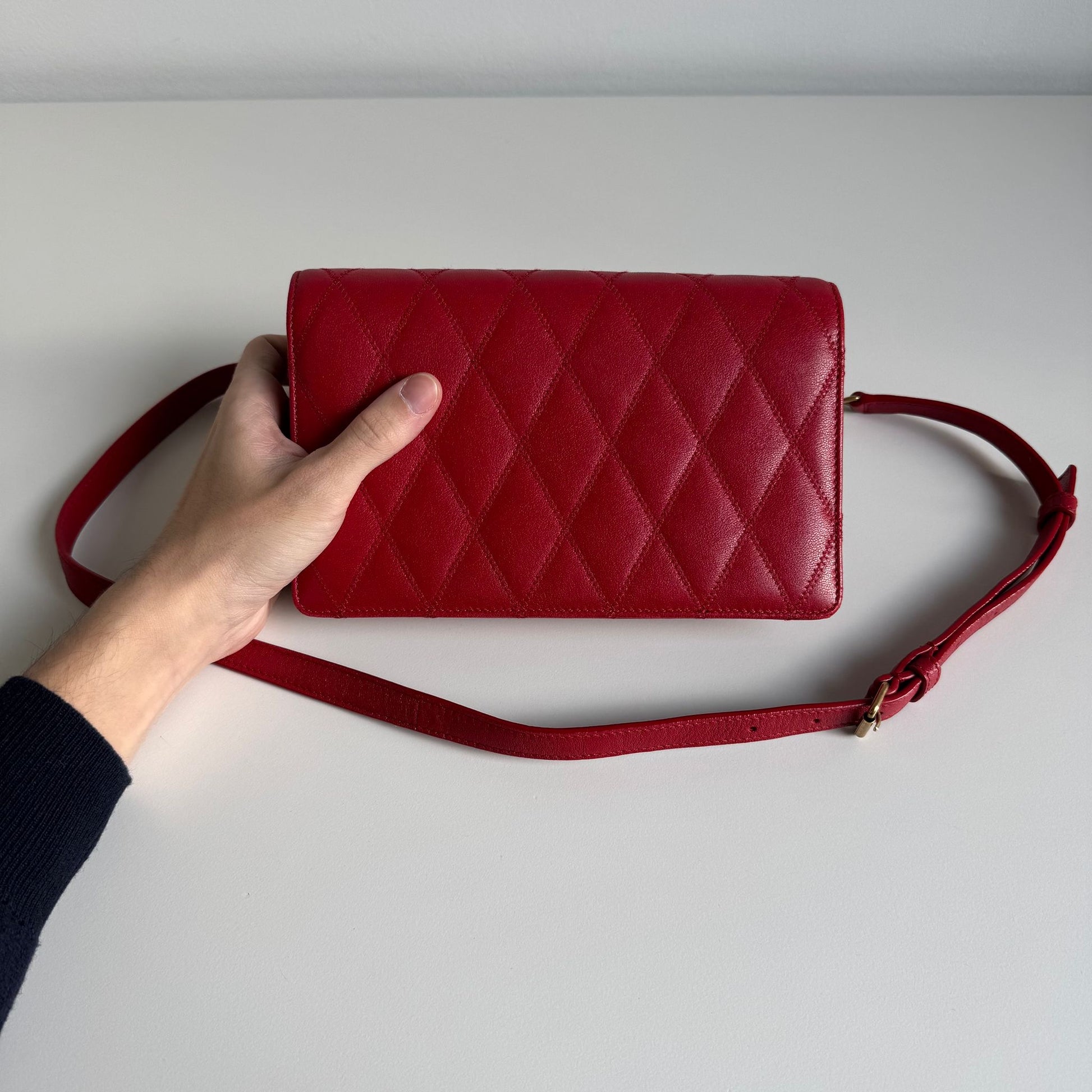 Bellissima borsa Saint Laurent crossbody modello Angie in morbida pelle rossa trapuntata e hardware oro.