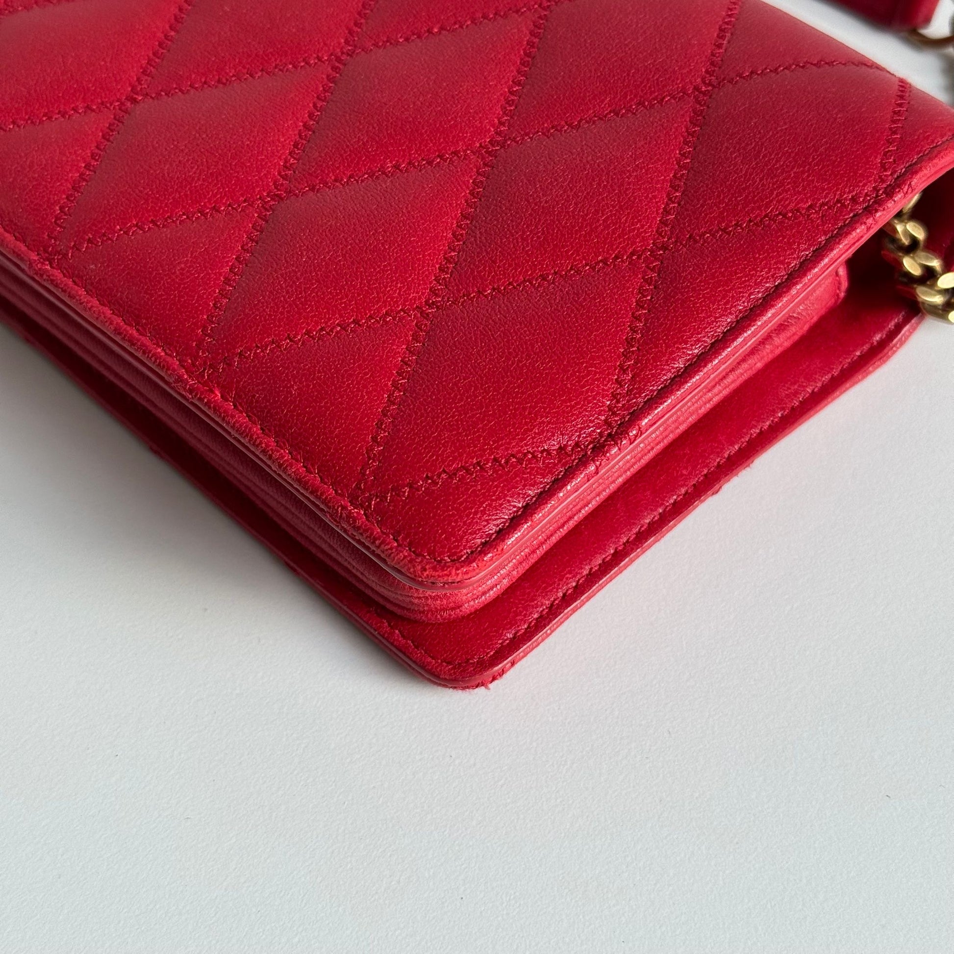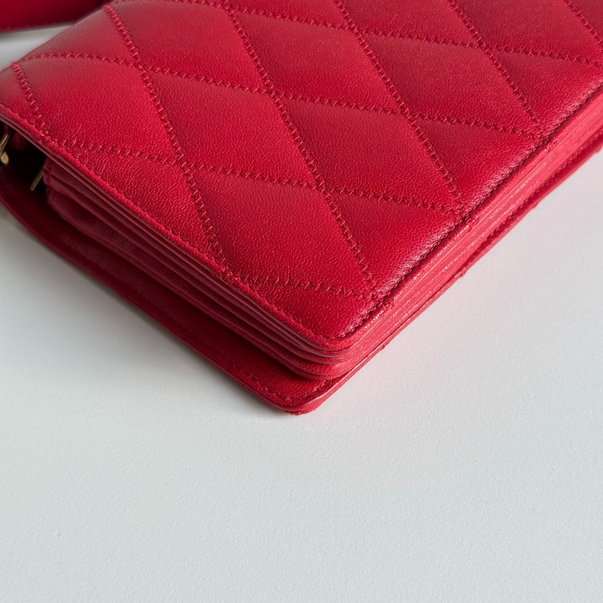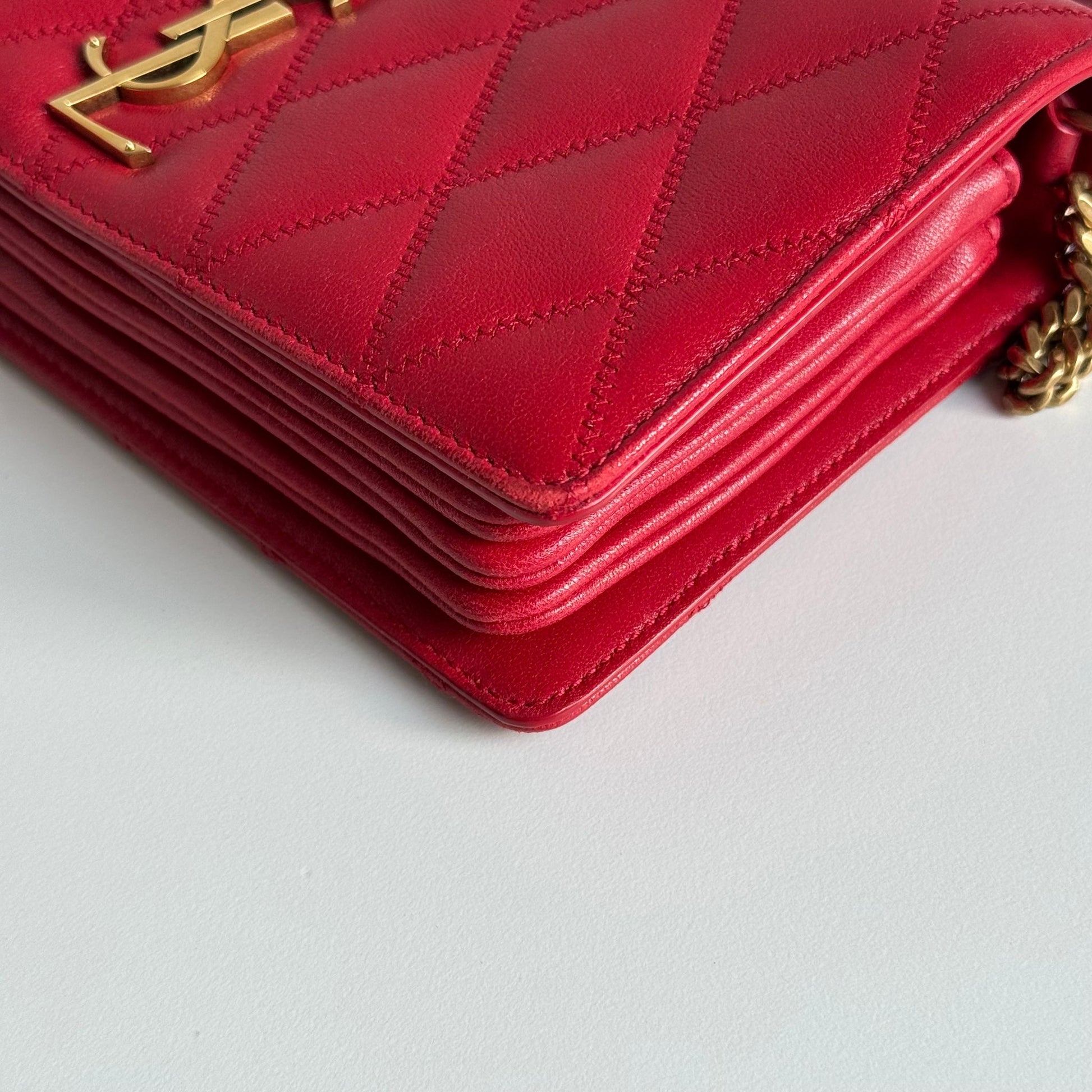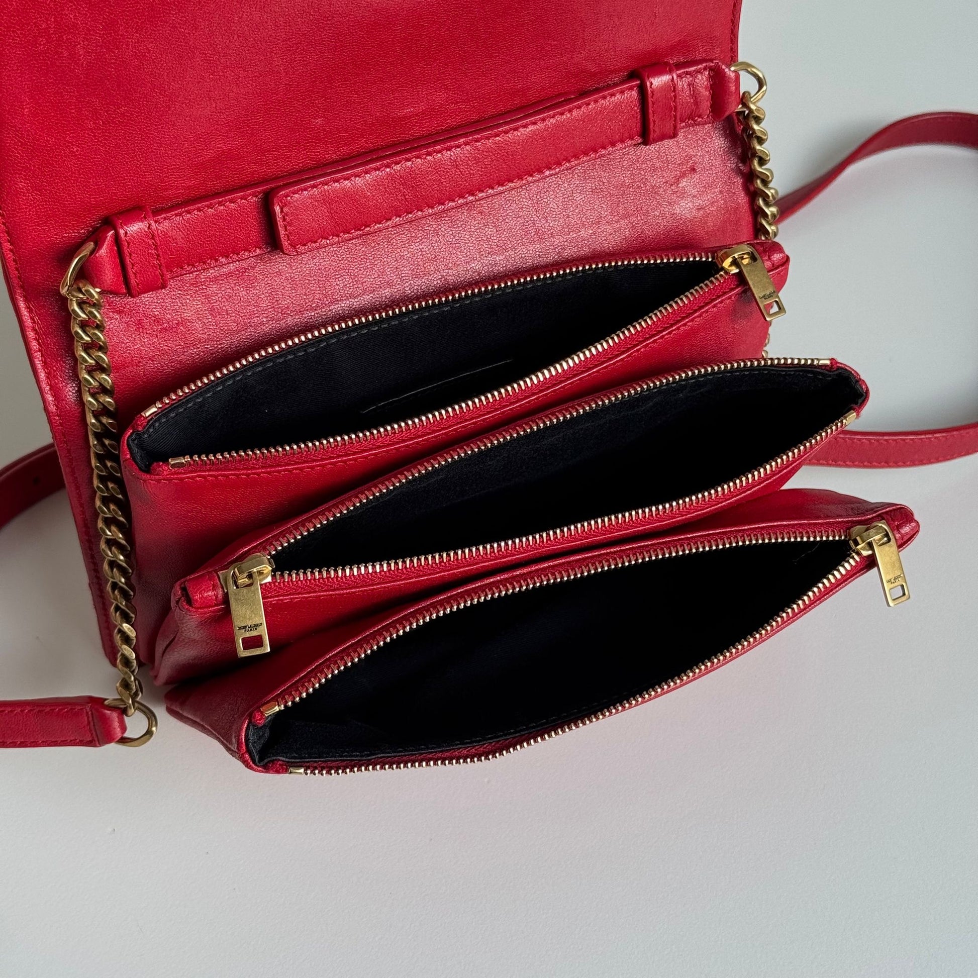 Bellissima borsa Saint Laurent crossbody modello Angie in morbida pelle rossa trapuntata e hardware oro.