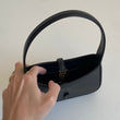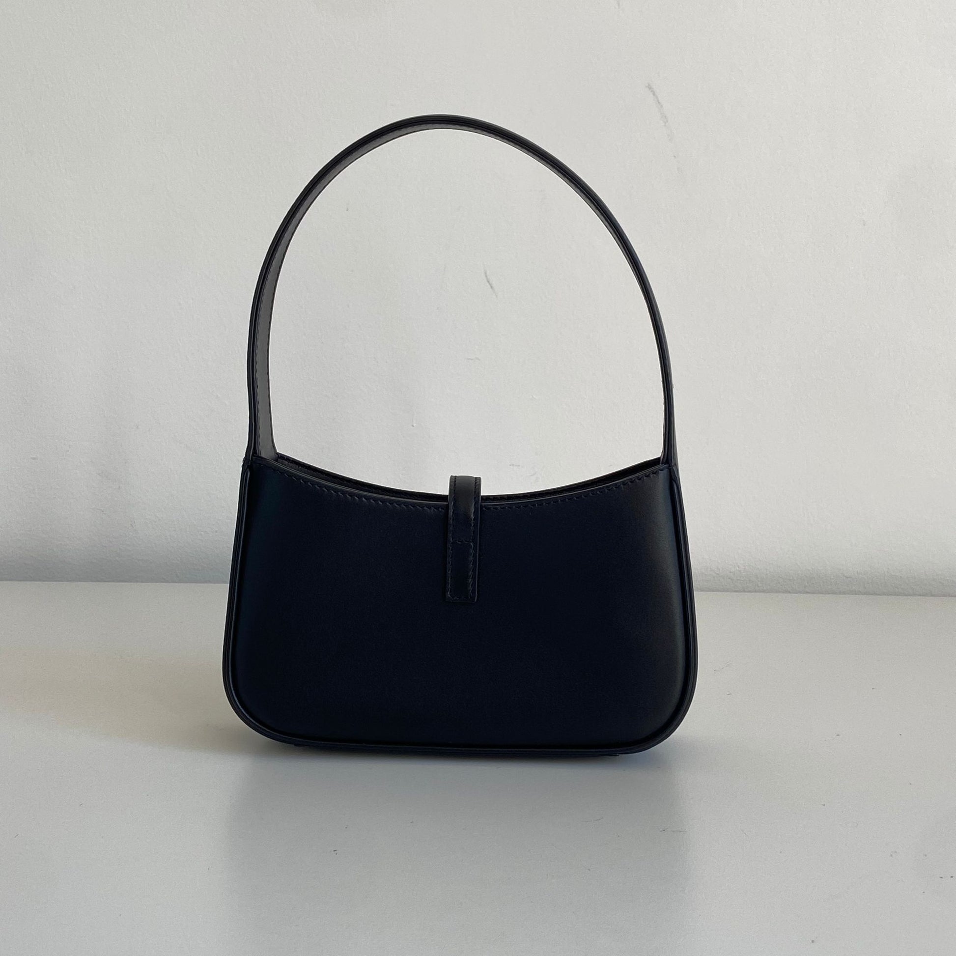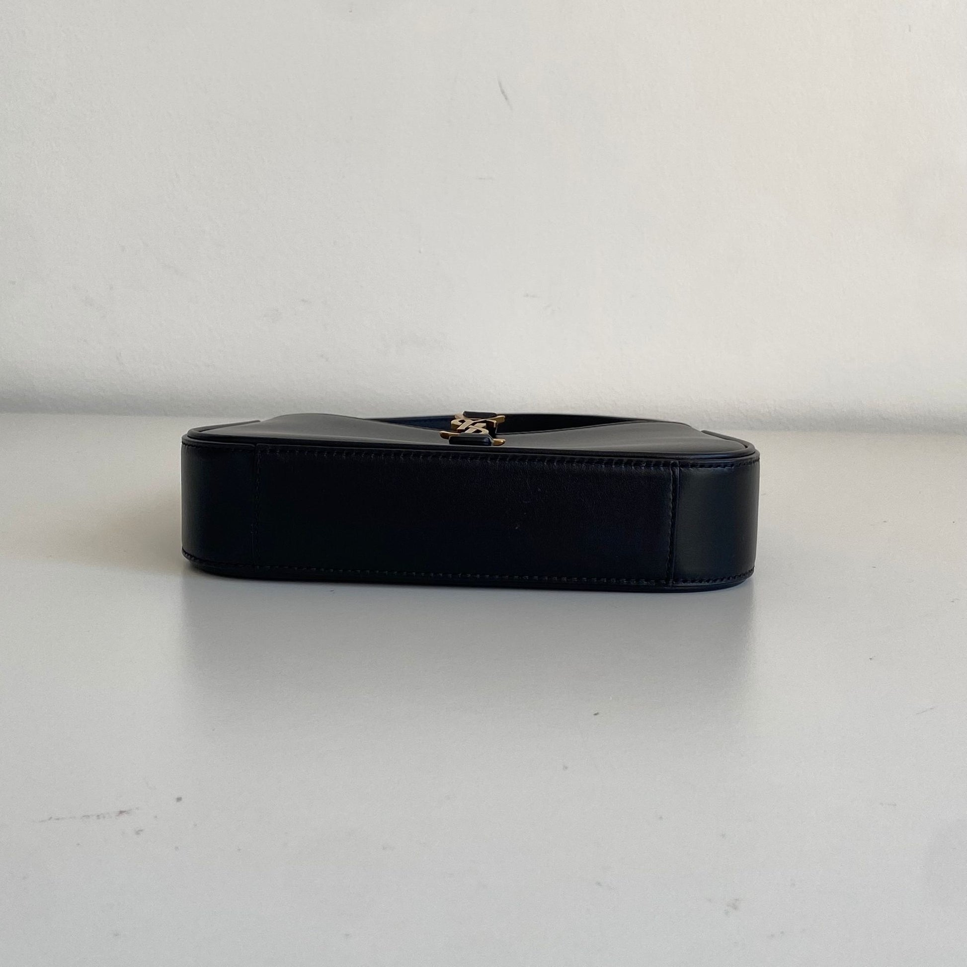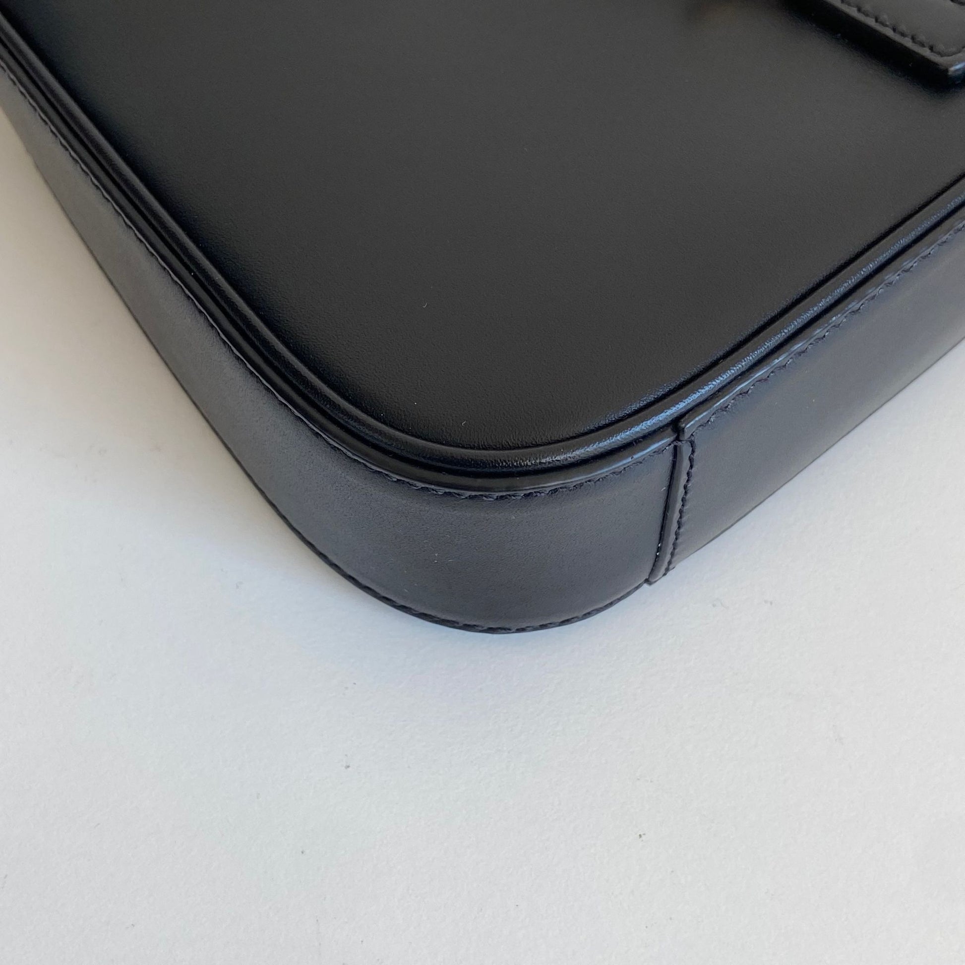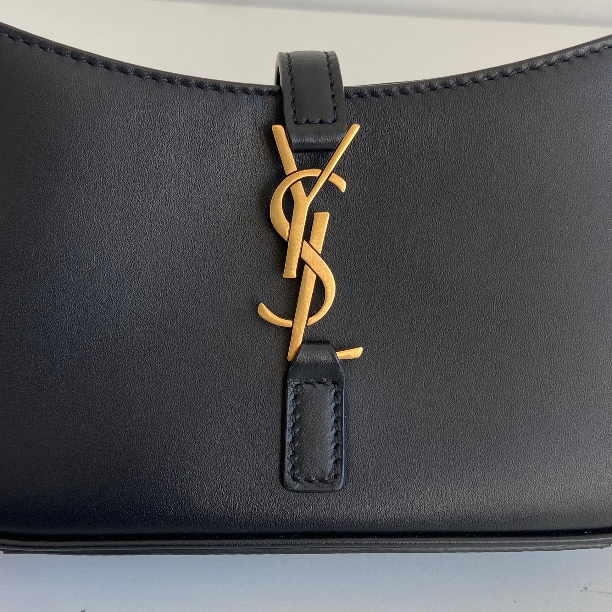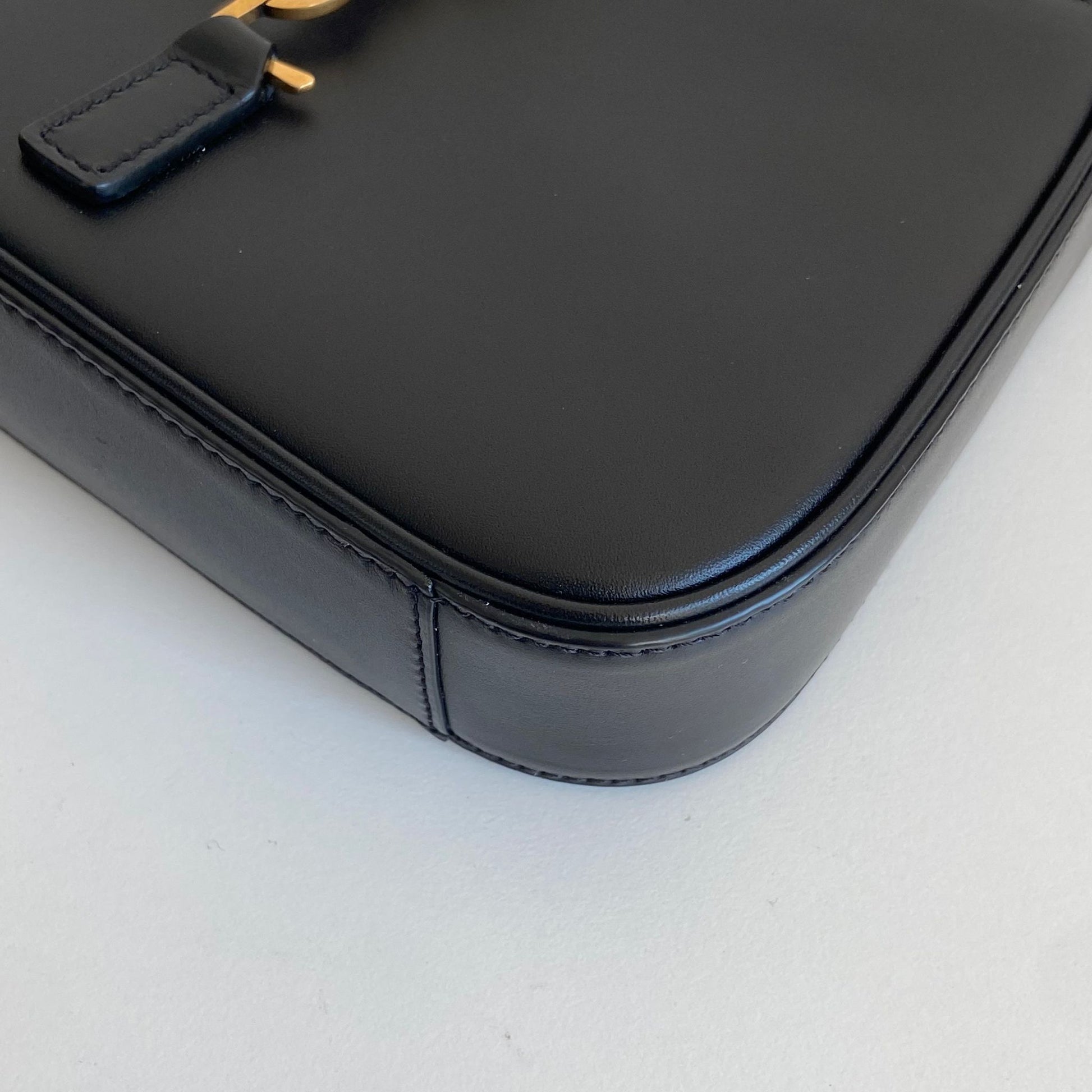 Bellissima borsa Saint Laurent modello Le 5 à 7 Mini in pelle liscia nera e hardware oro. Si indossa a spalla.