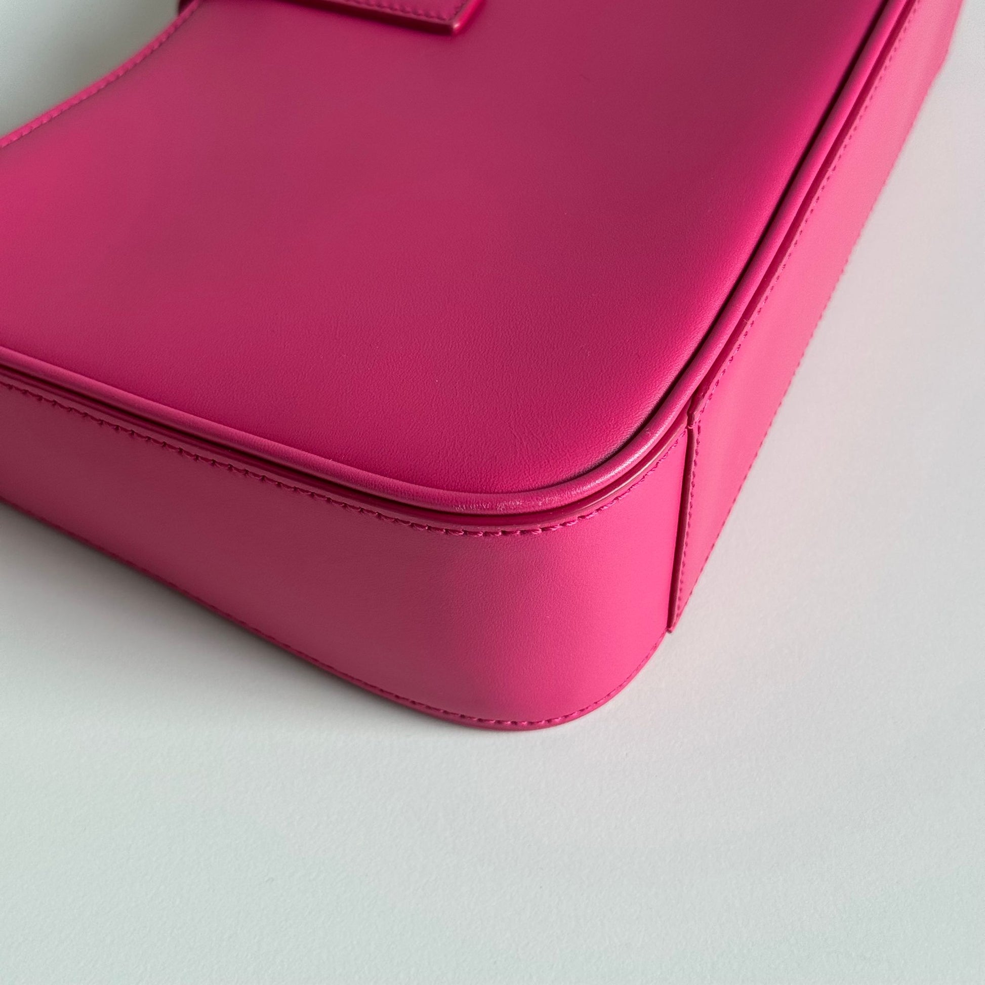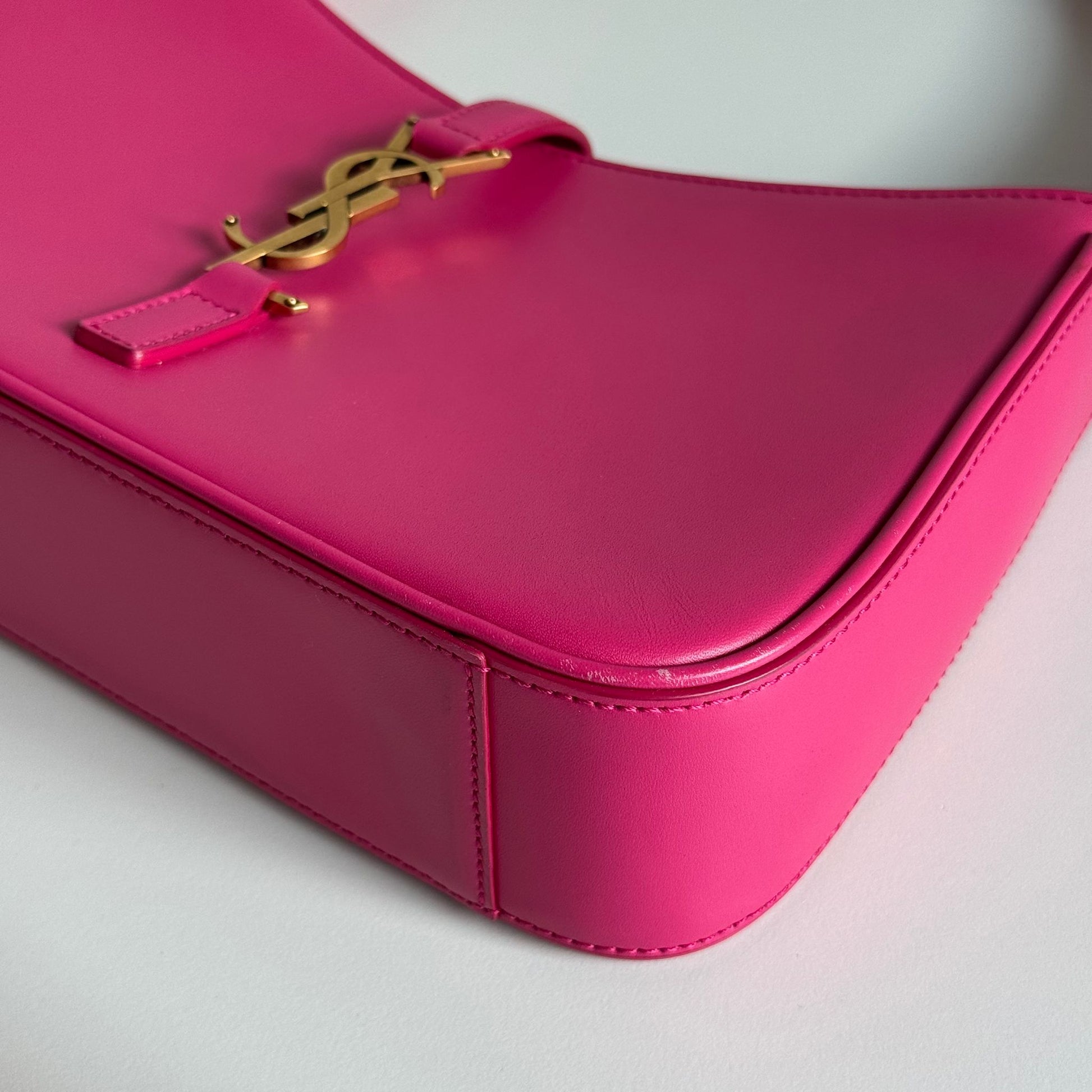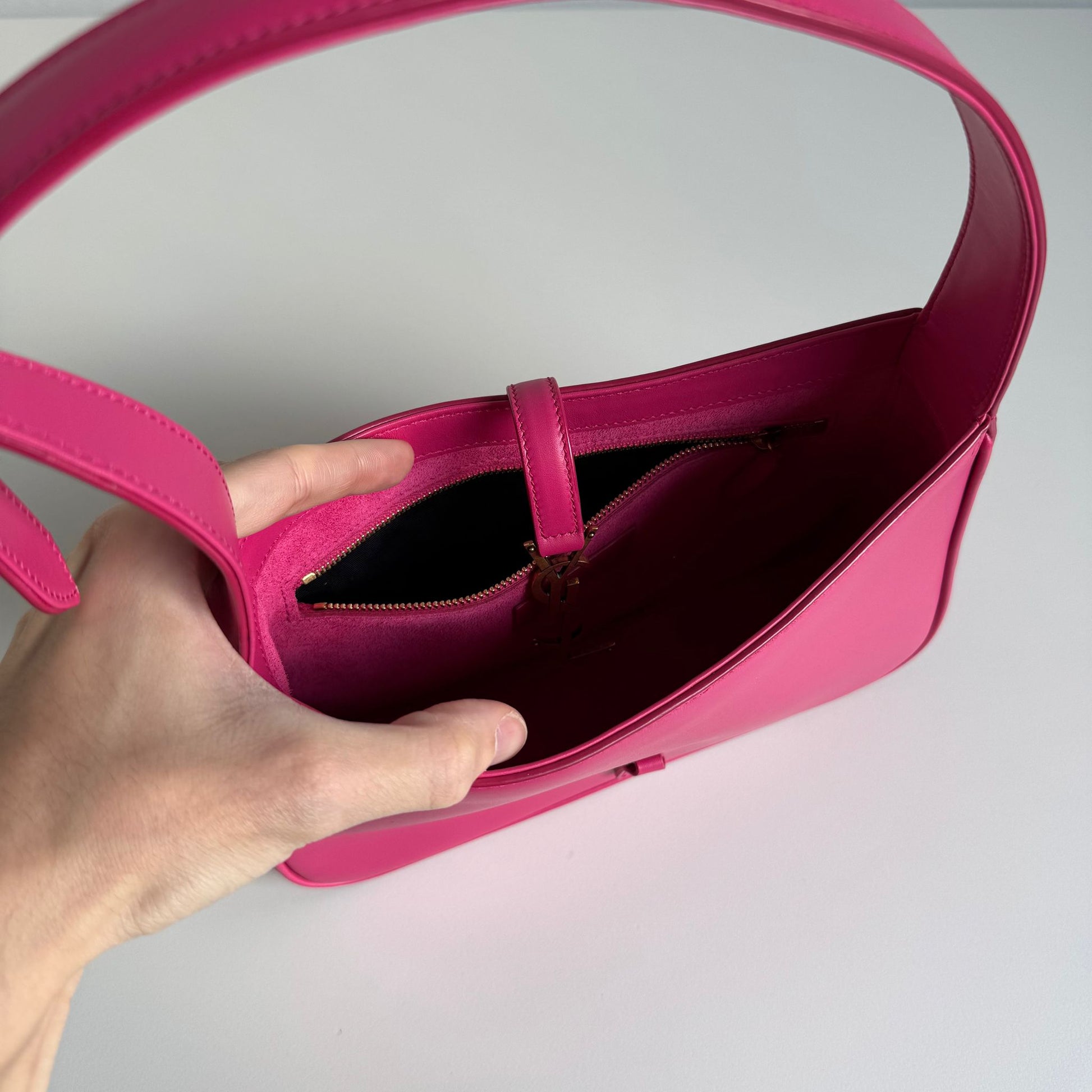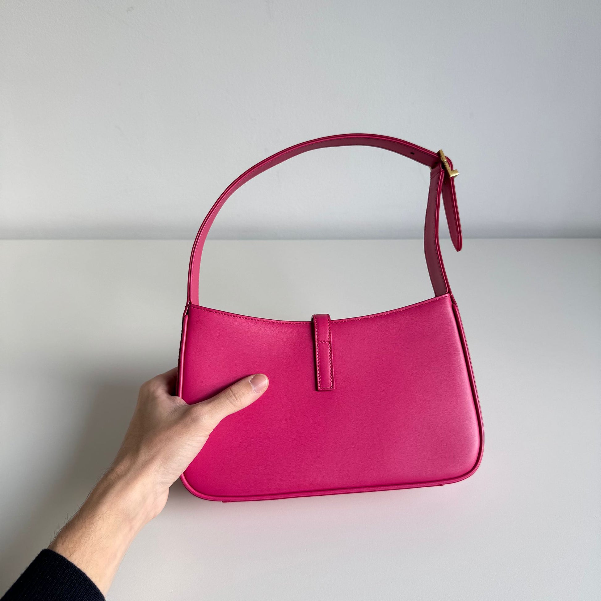 Meravigliosa borsa Saint Laurent modello Le 5 a 7 in pelle liscia fucsia (non fluo) e hardware oro.
