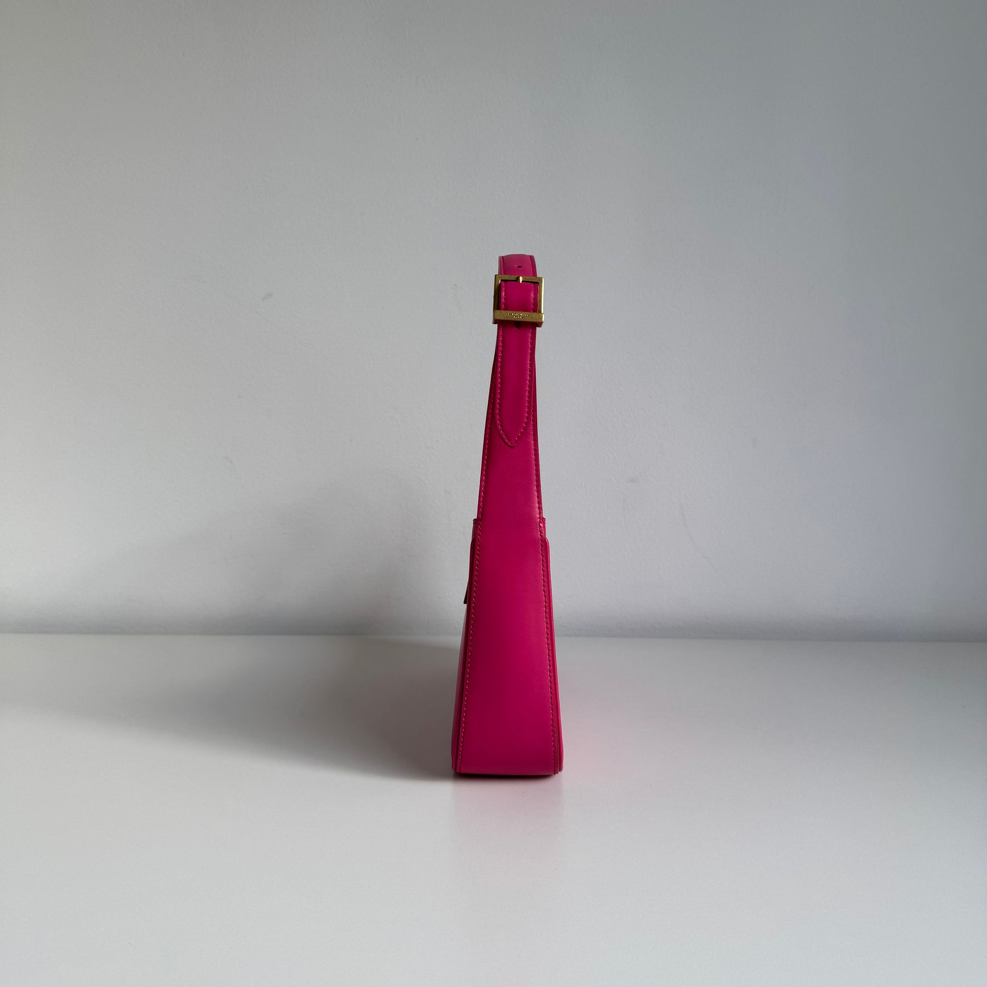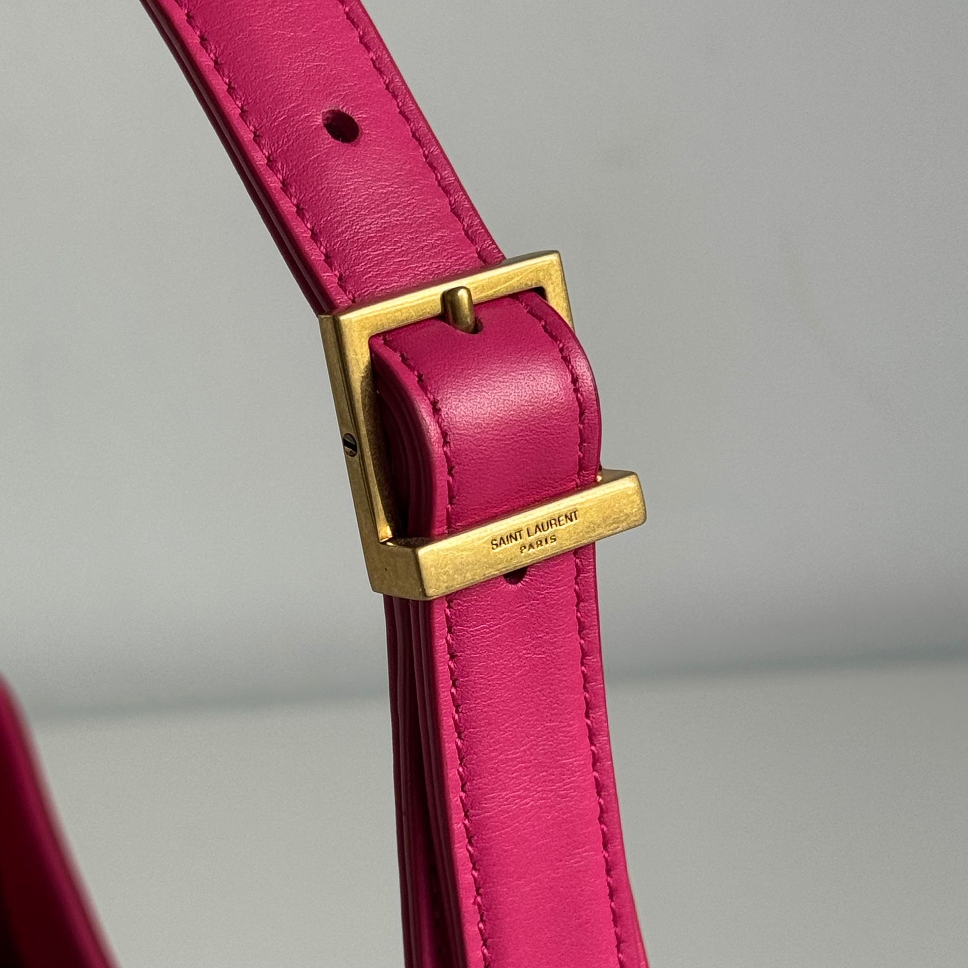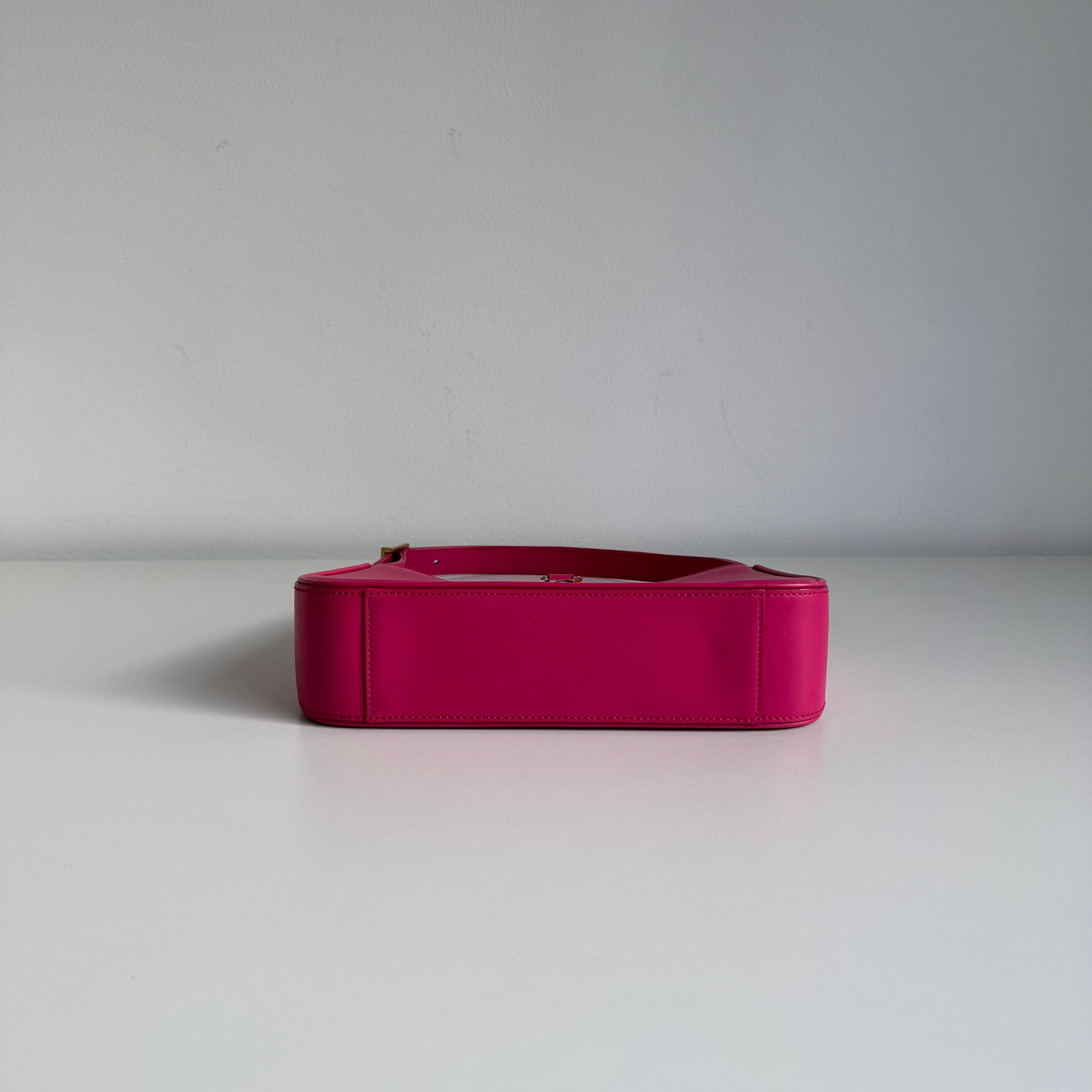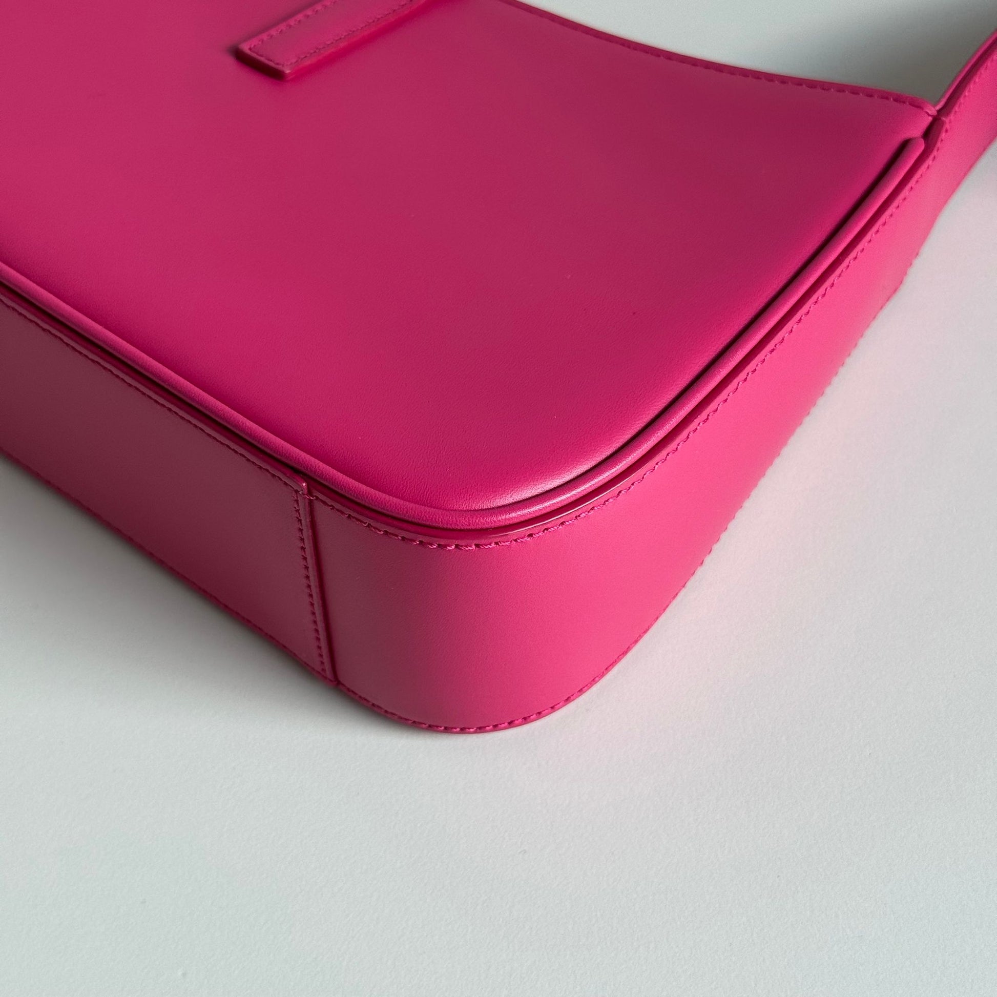 Meravigliosa borsa Saint Laurent modello Le 5 a 7 in pelle liscia fucsia (non fluo) e hardware oro.