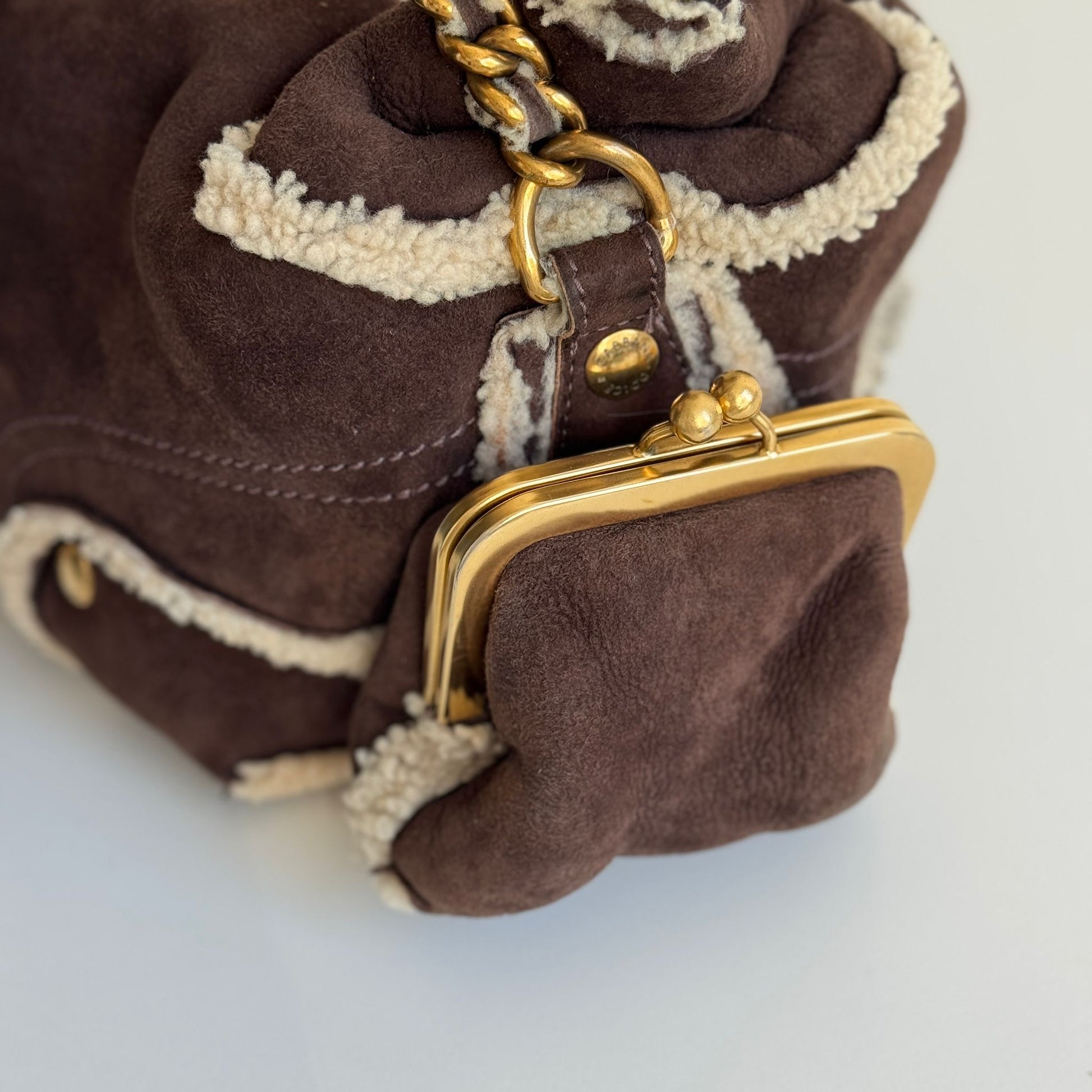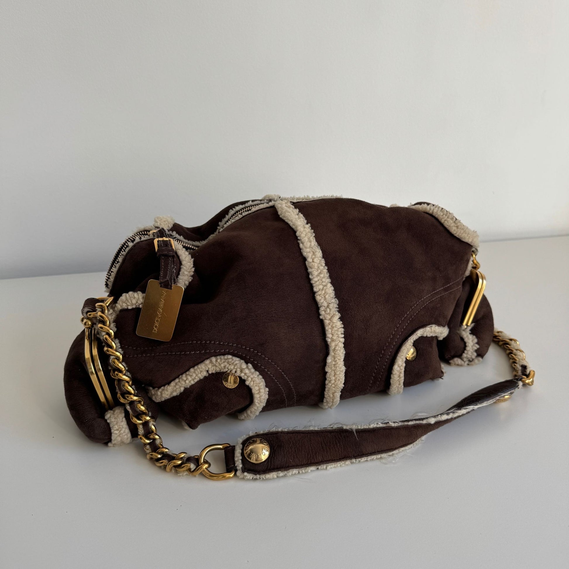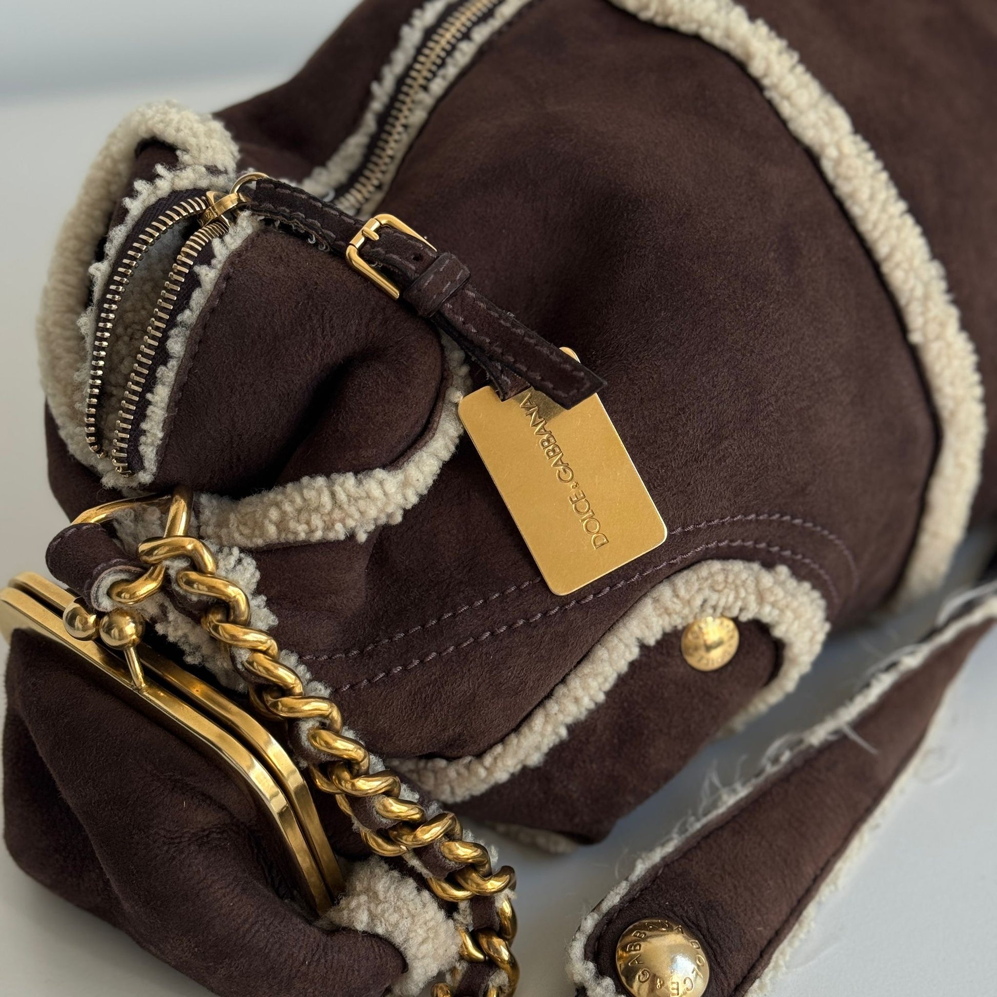 Bellissima shopper vintage Dolce&Gabbana in montone marrone e beige con hardware oro. Si indossa a spalla.