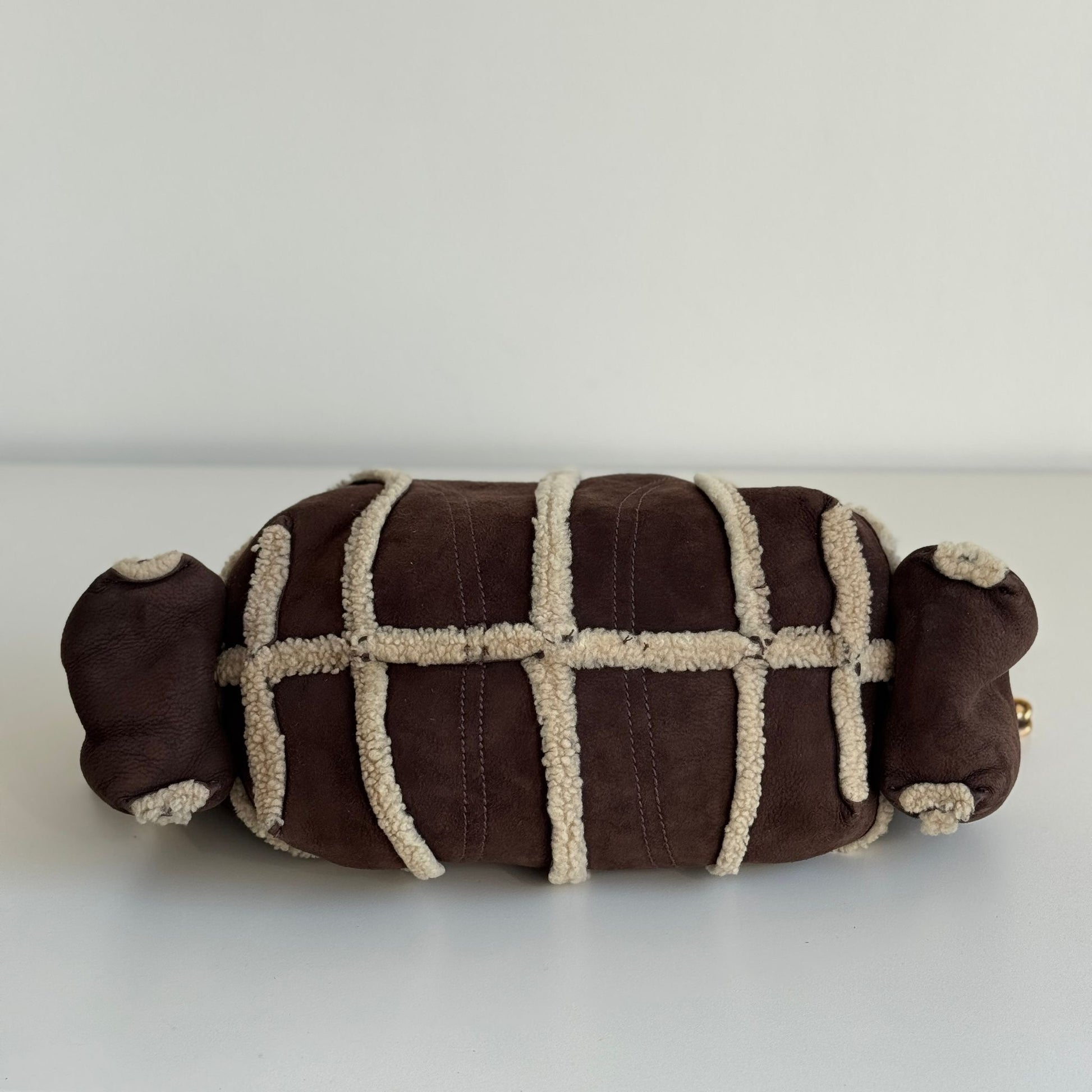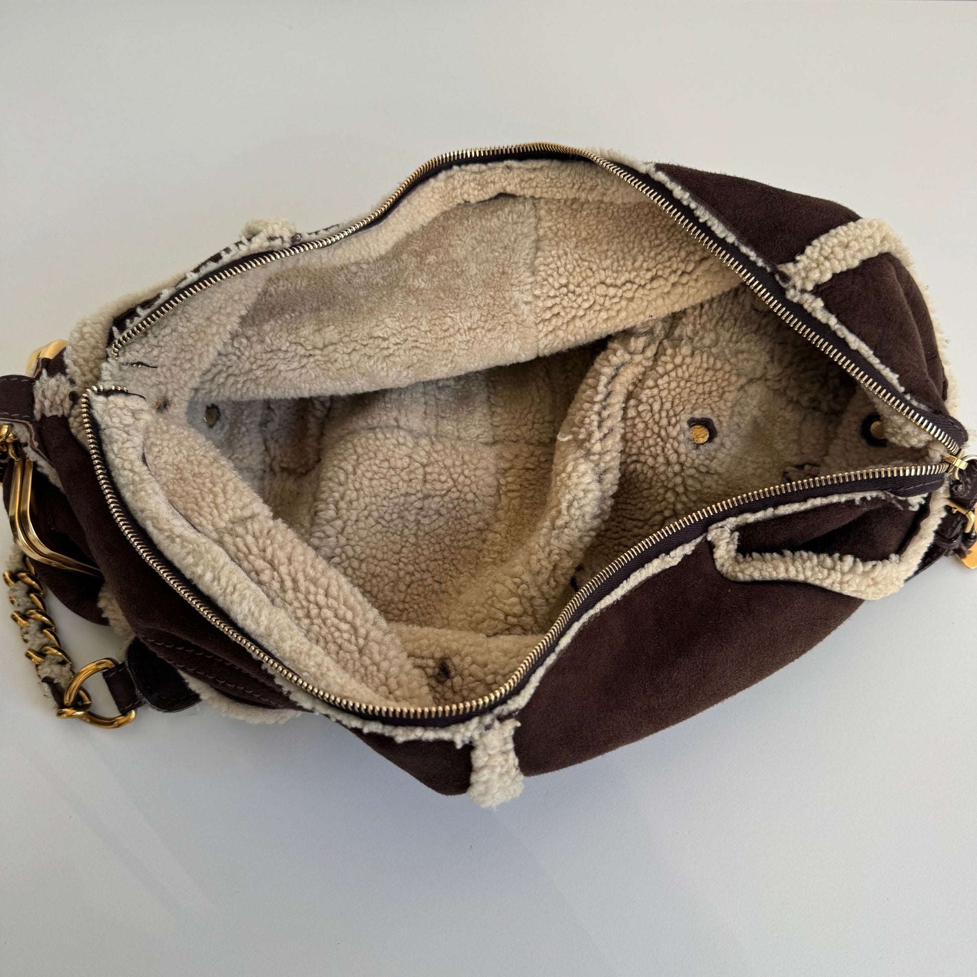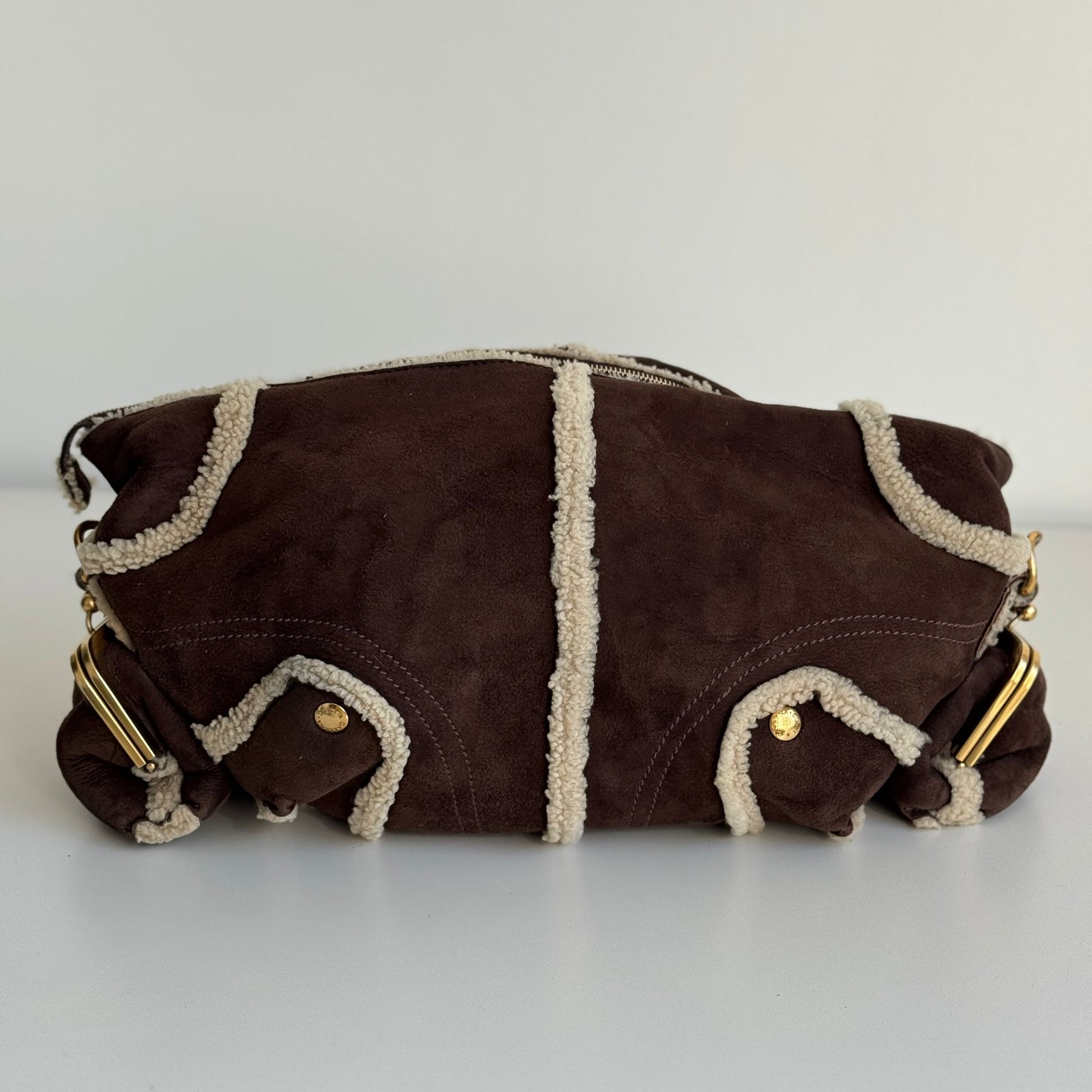 Bellissima shopper vintage Dolce&Gabbana in montone marrone e beige con hardware oro. Si indossa a spalla.