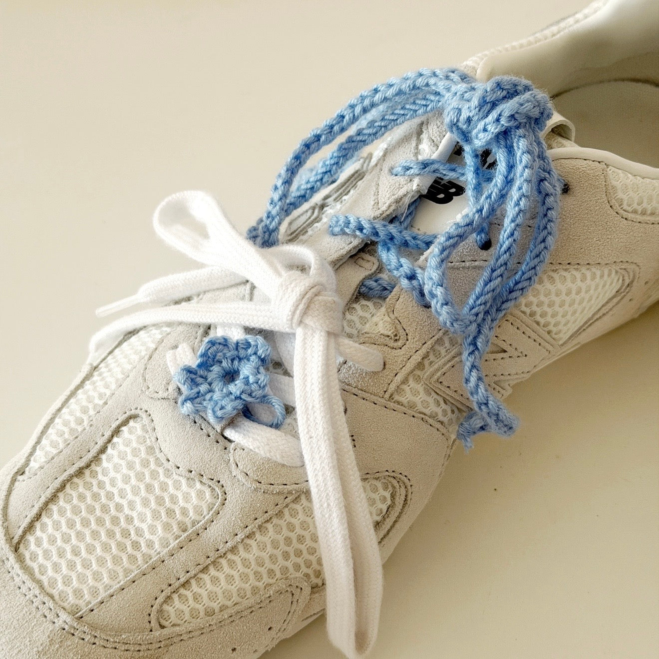 Lacci da scarpe all’uncinetto fatti a mano in misto cotone.