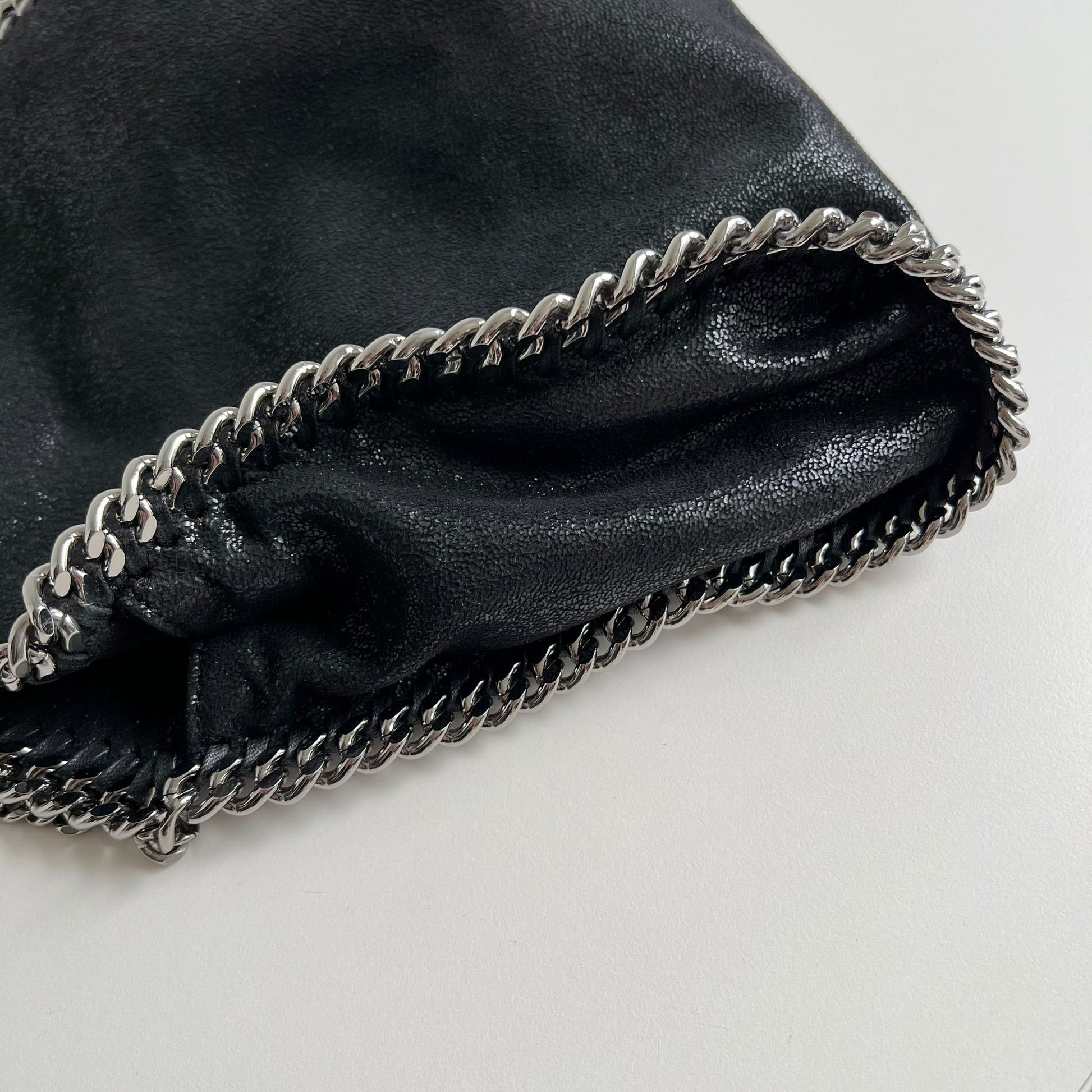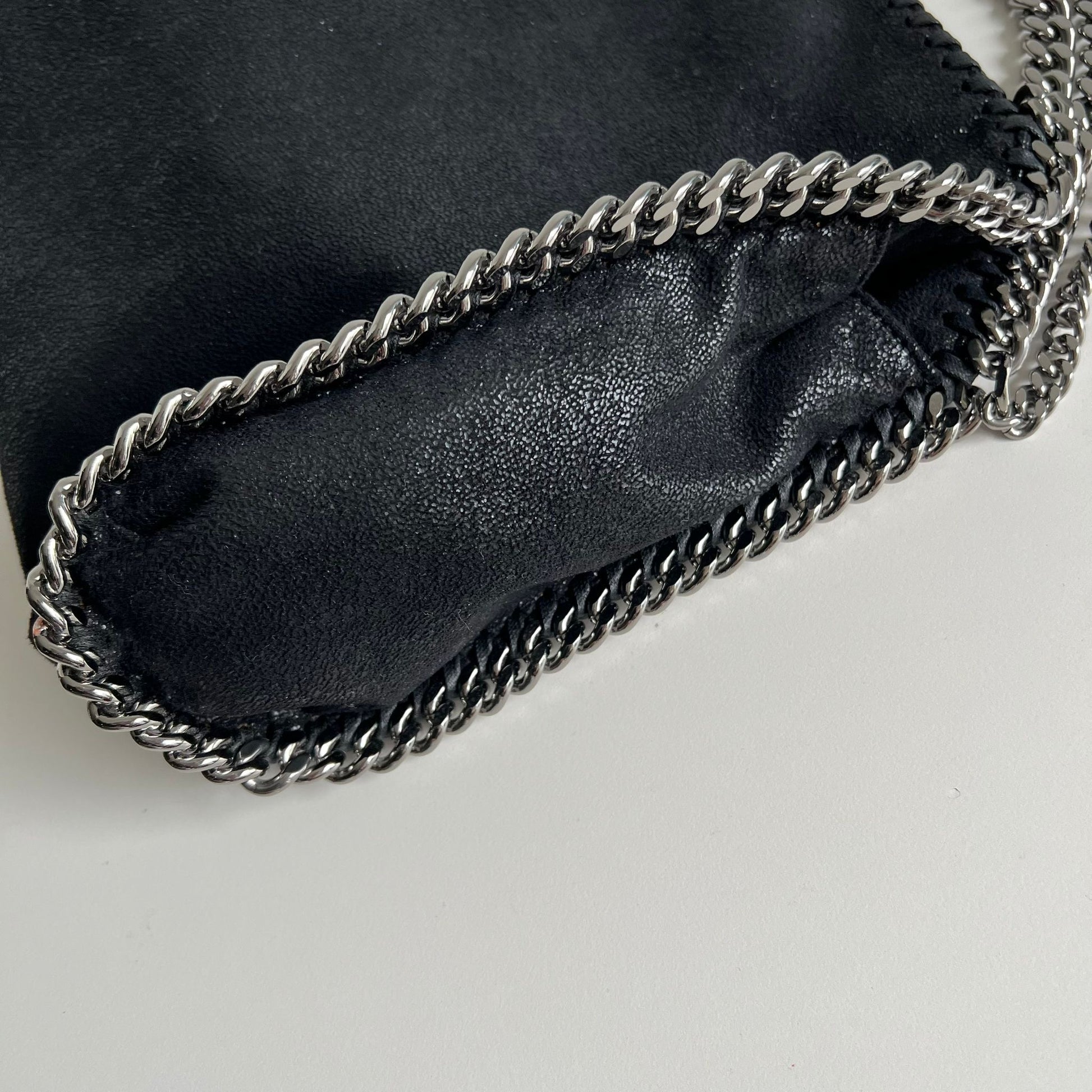 Bellissima borsa Stella McCartney Mini Falabella in Shaggy nero e hardware argento. Si indossa a mano o a tracolla. La tracolla non è regolabile.