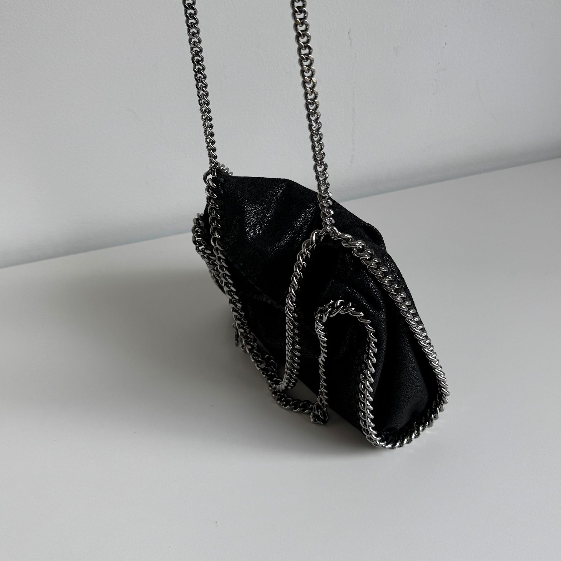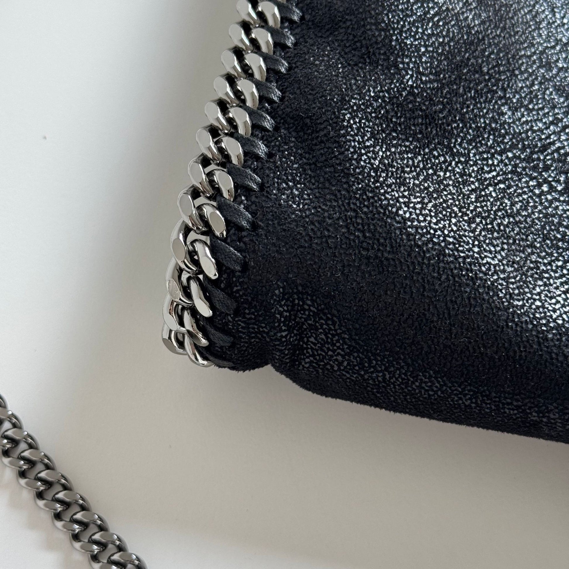 Bellissima borsa Stella McCartney Mini Falabella in Shaggy nero e hardware argento. Si indossa a mano o a tracolla. La tracolla non è regolabile.