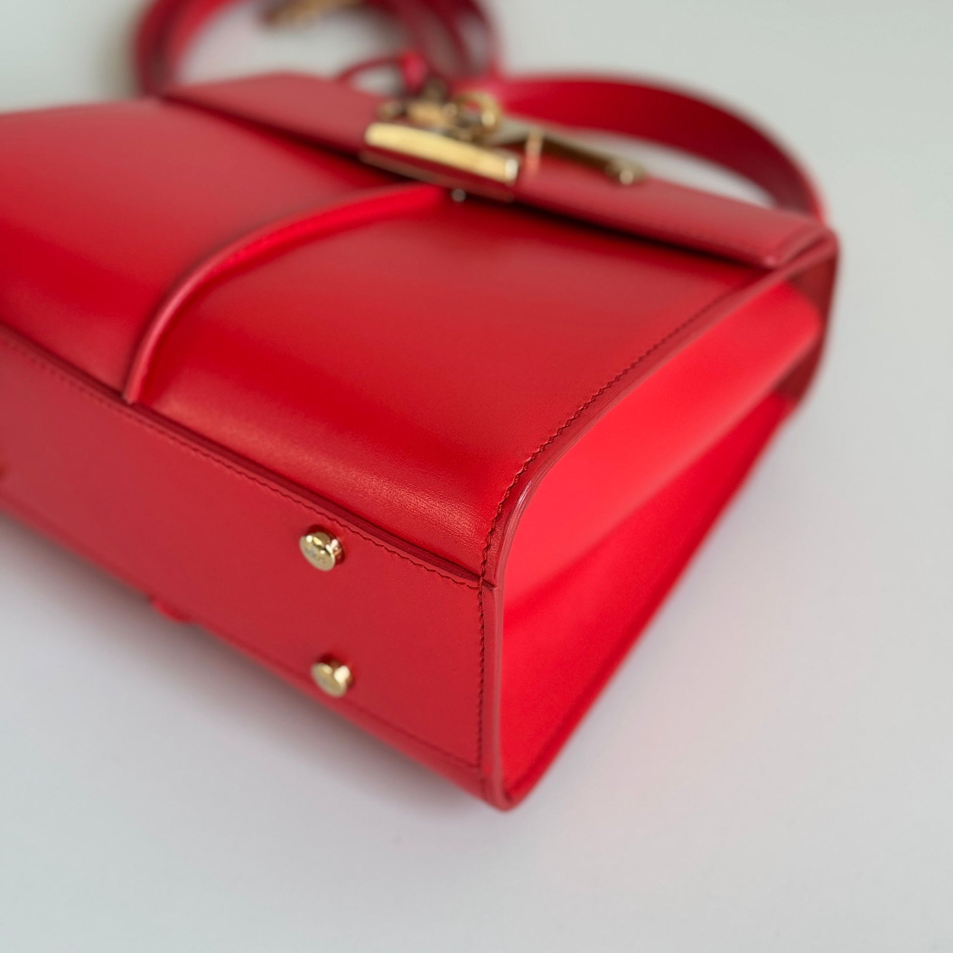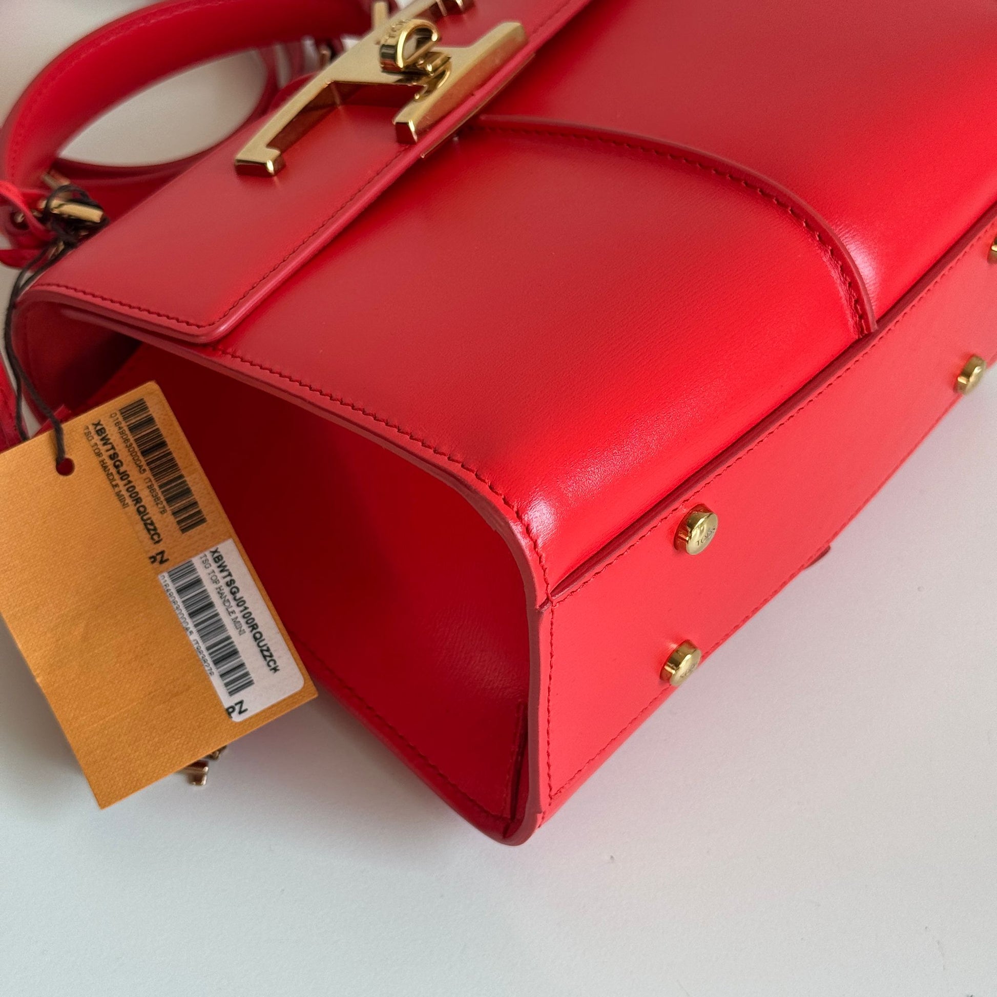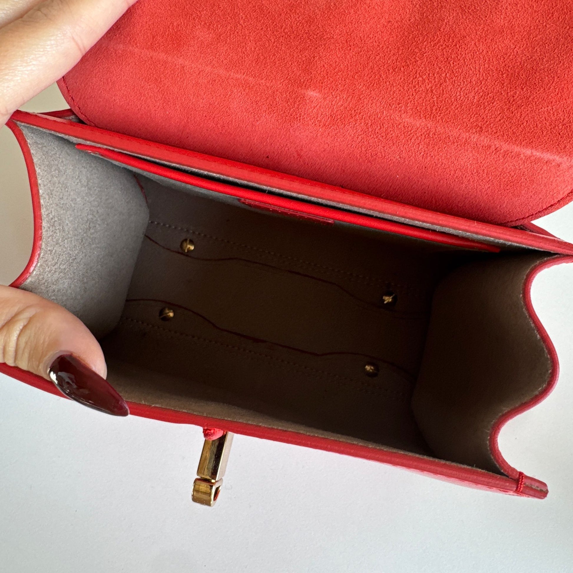 Bellissima borsa Tod’s modello T Timeless in pelle rosso corallo e hardware oro. Si indossa a mano e a tracolla la tracolla è rimovibile e regolabile