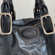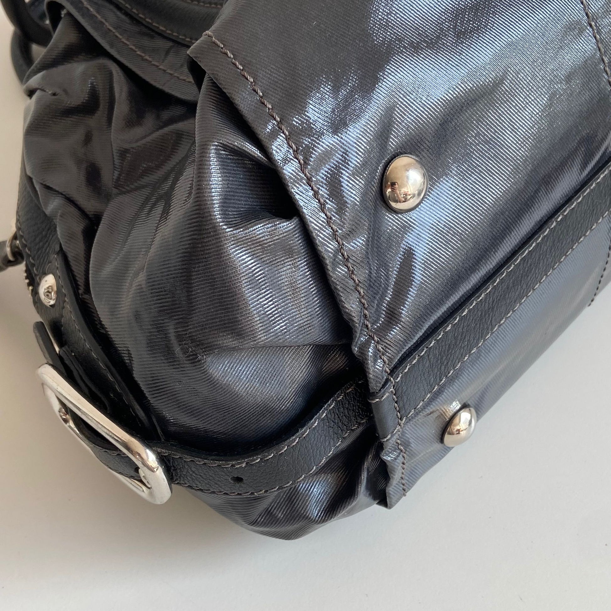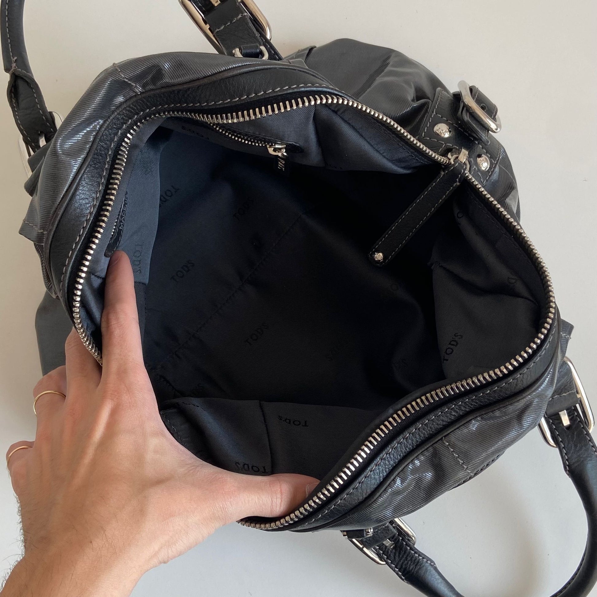 Bellissima borsa Tod’s modello Shopper in tela spalmata grigia e dettagli in pelle nera con hardware argento. Si indossa a spalla.