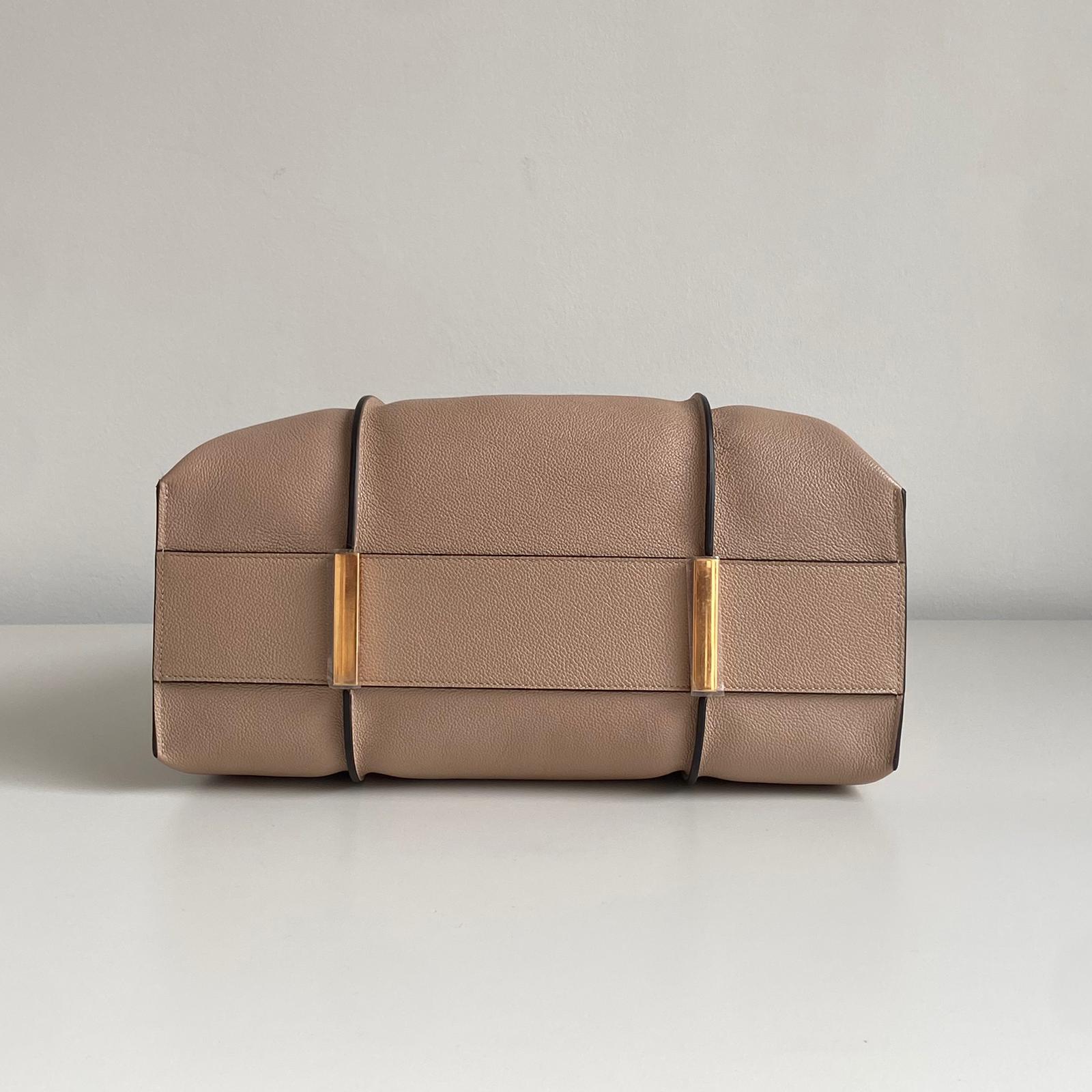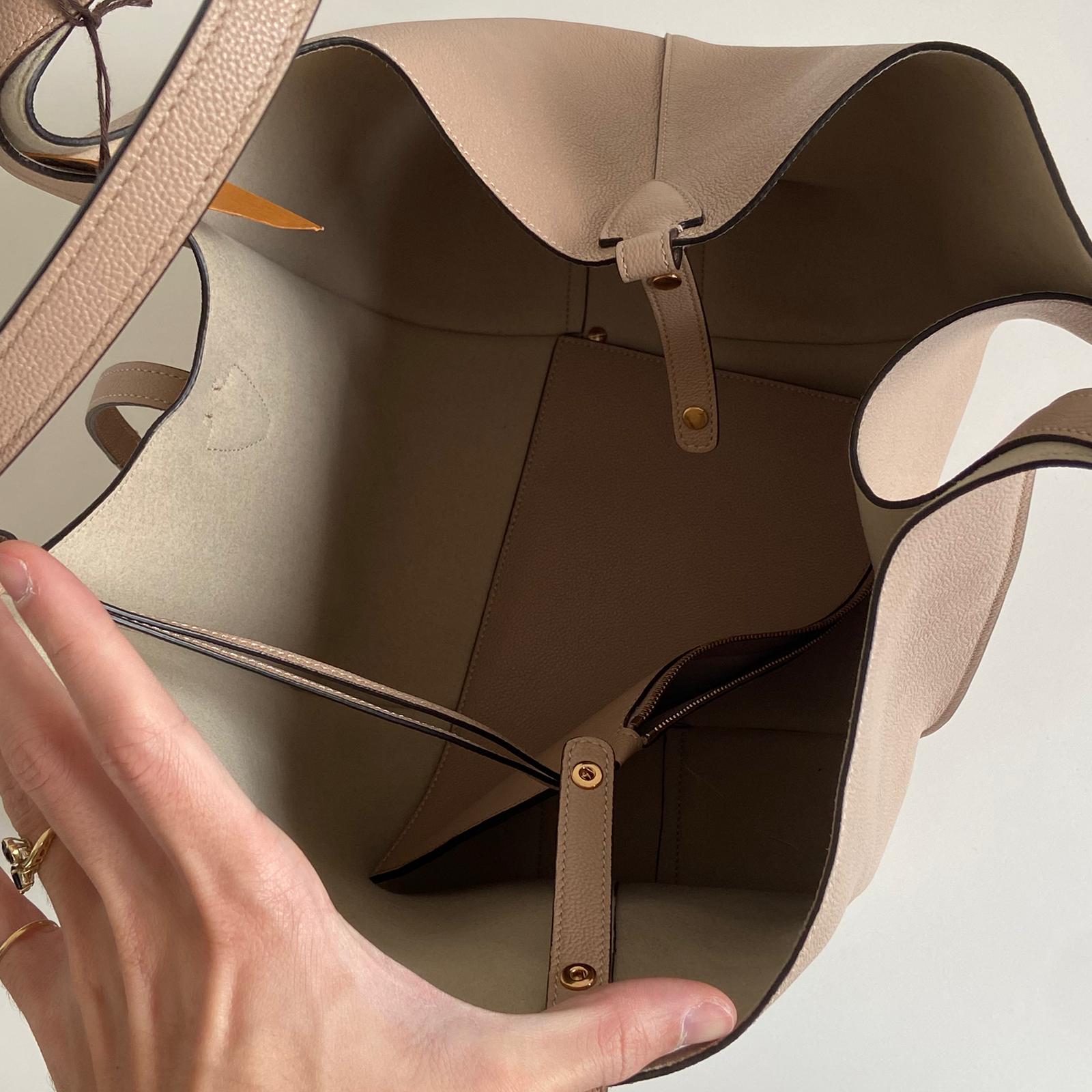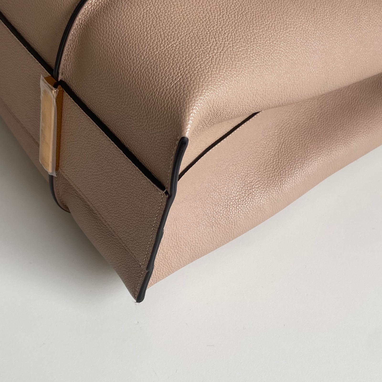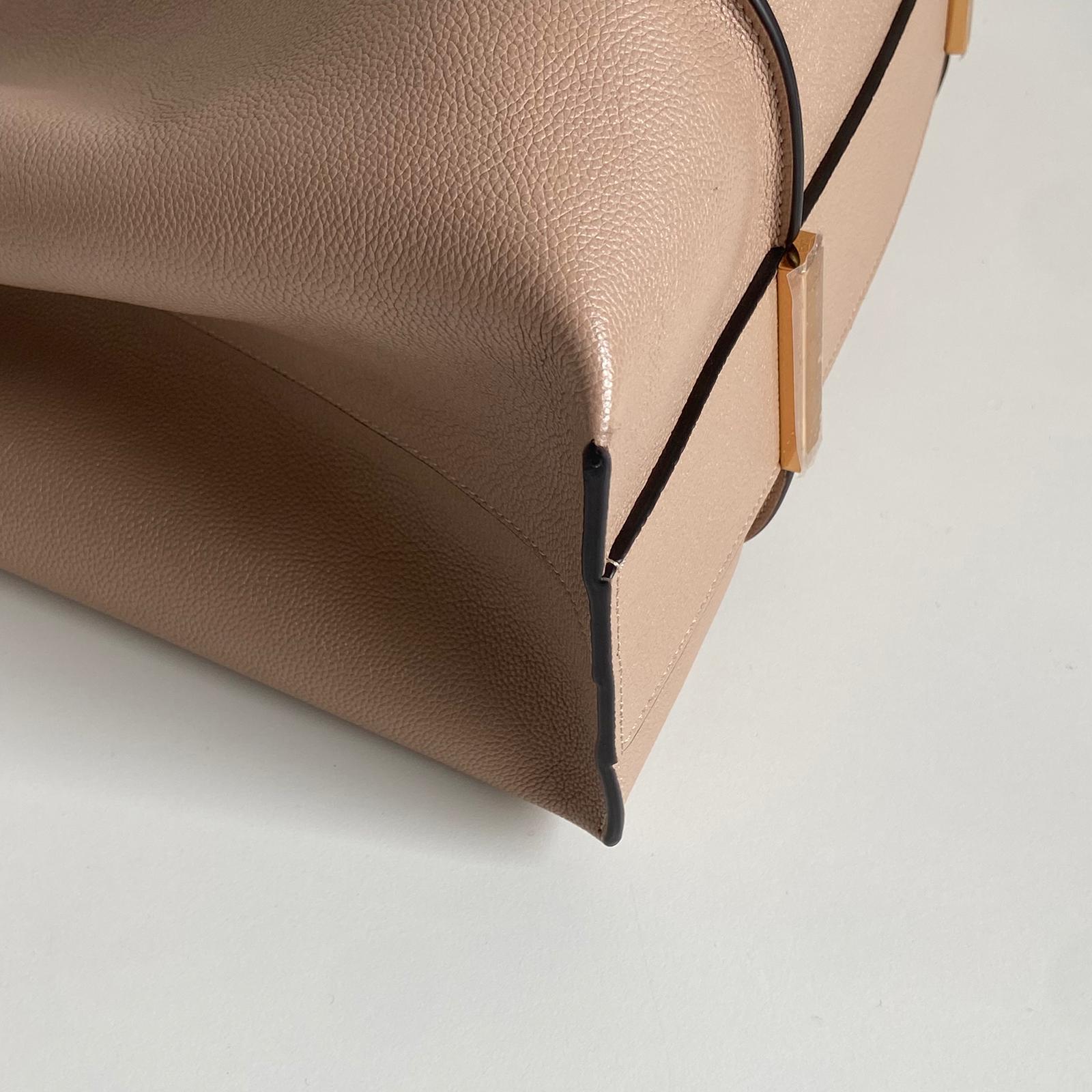 Bellissima borsa Tod’s modello T Timeless Shopping Bag in pelle beige-cipria e hardware oro. Per il colore corretto si tenga presente la prima foto. Si indossa a spalla.