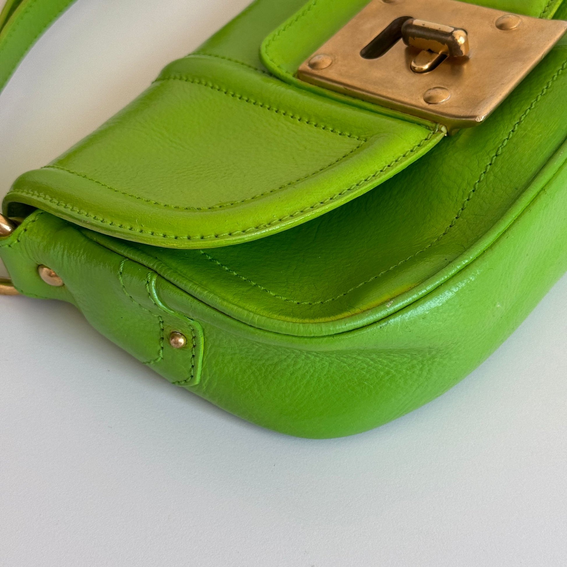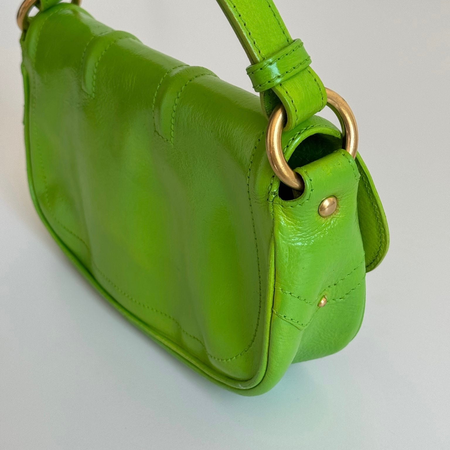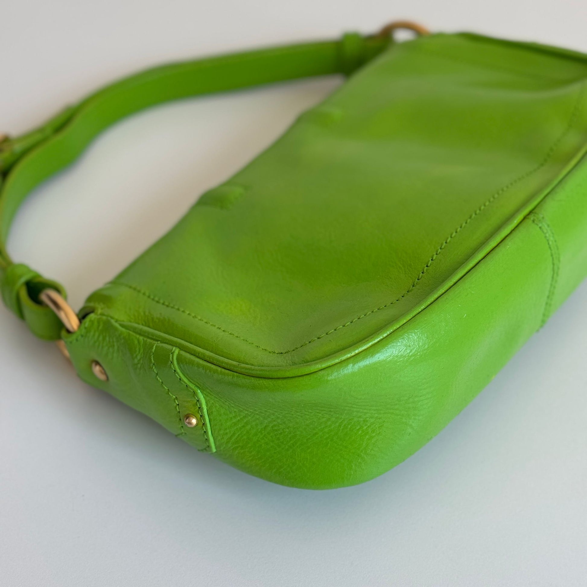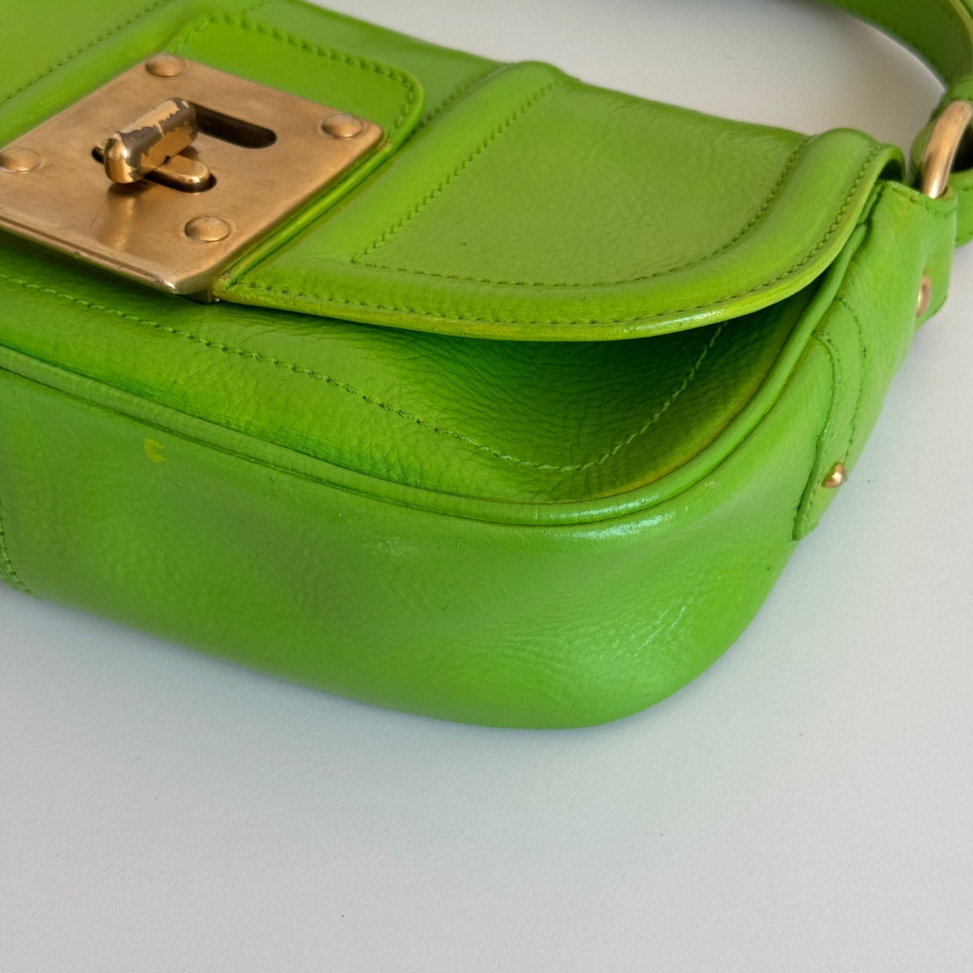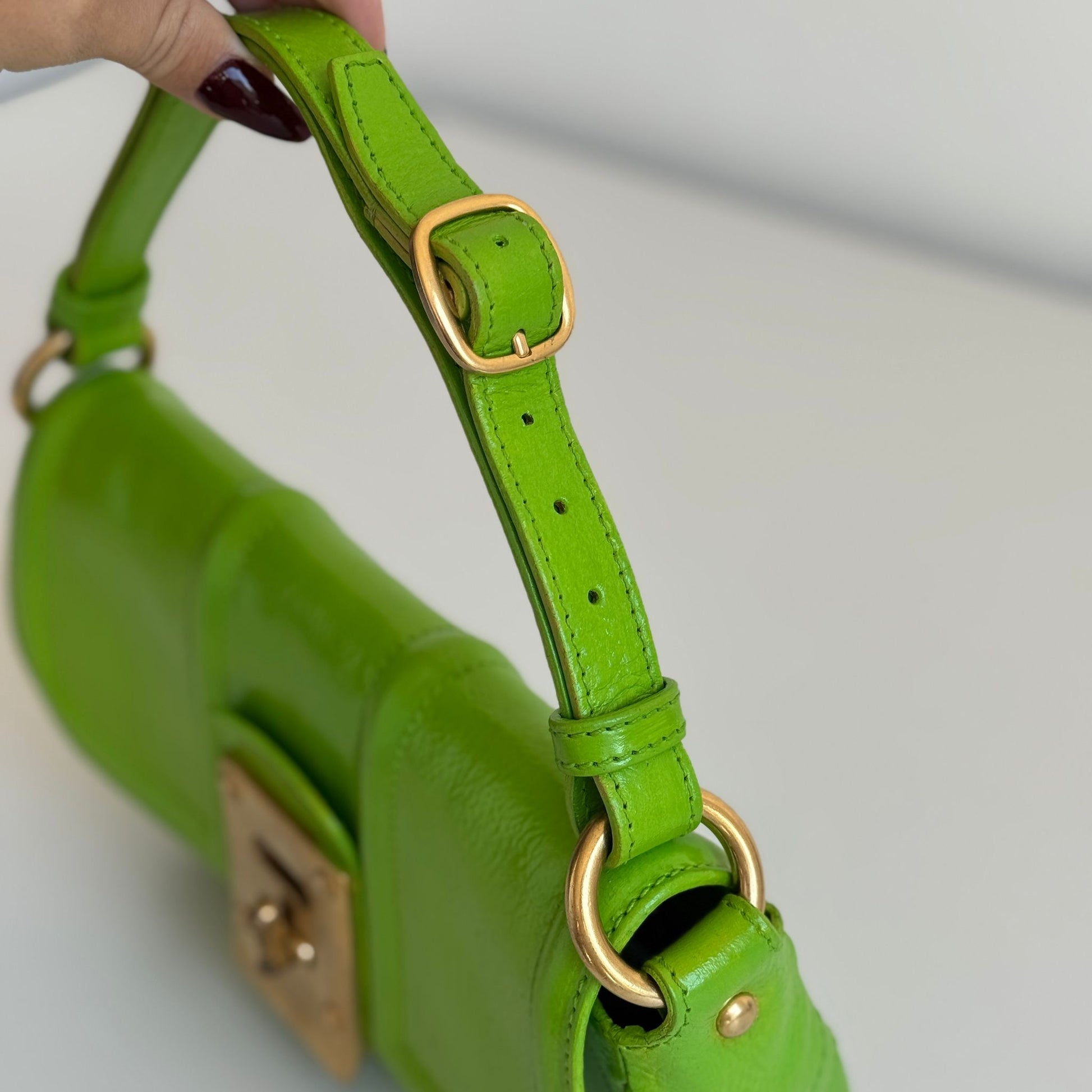 Bellissima borsa Valentino vintage in pelle verde acido e hardware oro. Si indossa a a spalla ed è regolabile.
